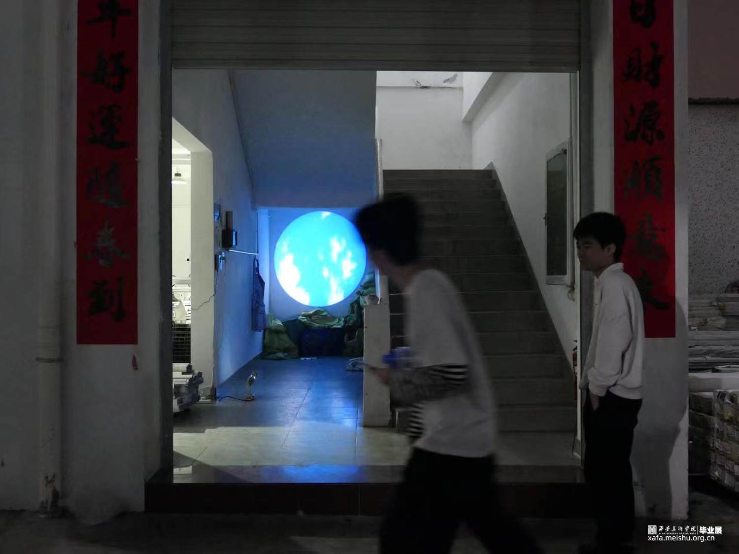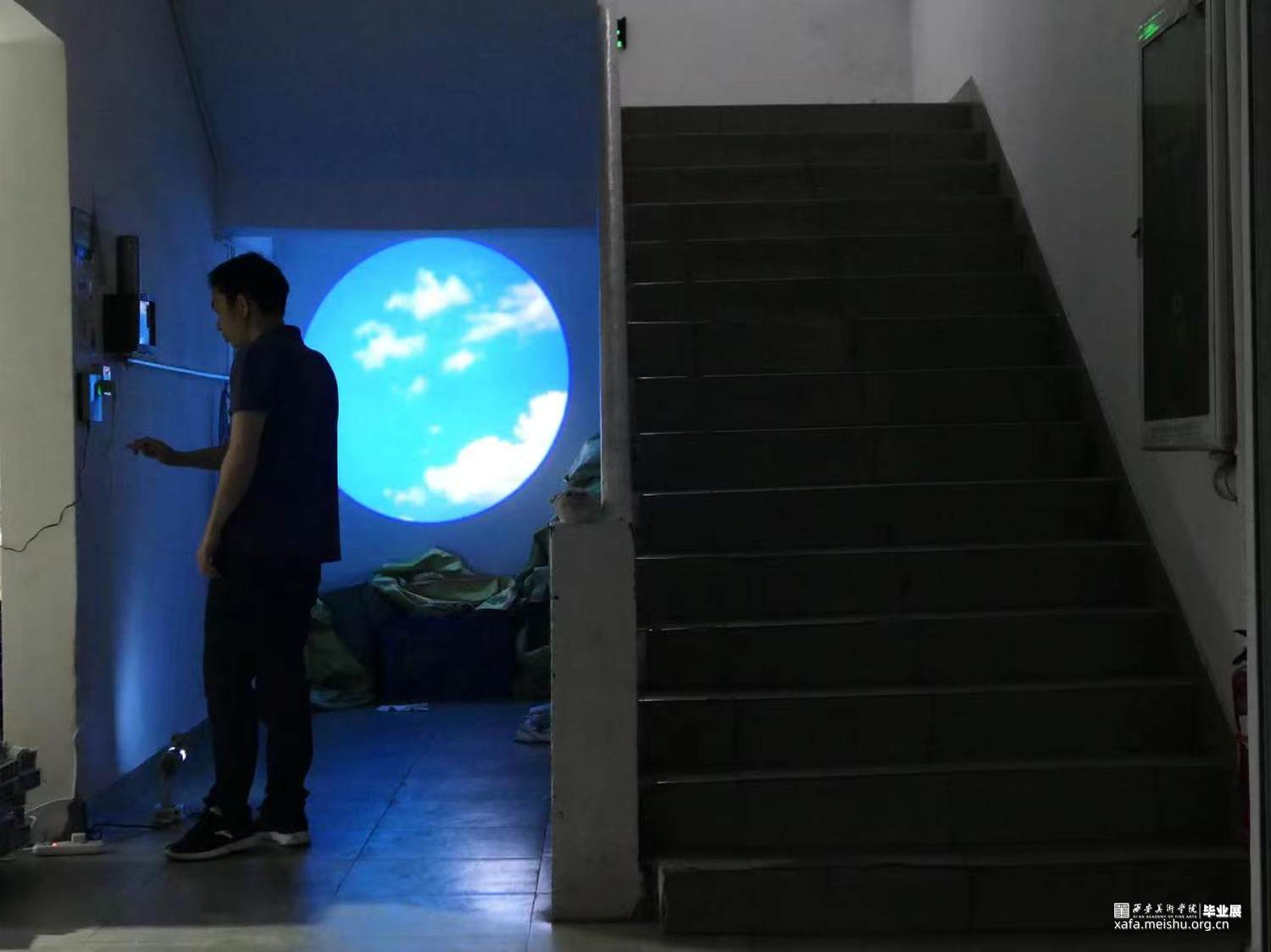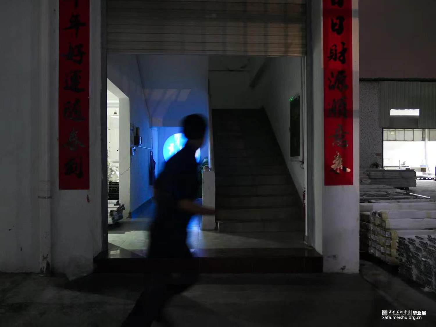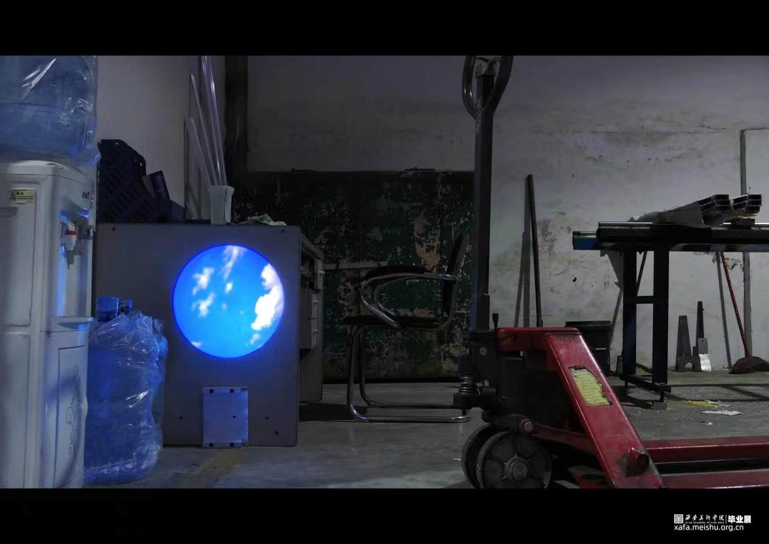 《偷走一片云》:在驻厂期间,我在想如何在不动厂里的实际物品和空间,就能改造这个厂的,于是我想到了用灯光,这段时期遇到过深圳的封城,整个城市停工停产,还赶上深圳难得的极度阴冷的天气,每天都下着雨,我就想到了用投影去投影一片云,将其投影在工厂的各个笔者可以去的空间里面,与工厂的空间以及工友们之间产生一种奇妙的,冲突的,但又和谐的联系。