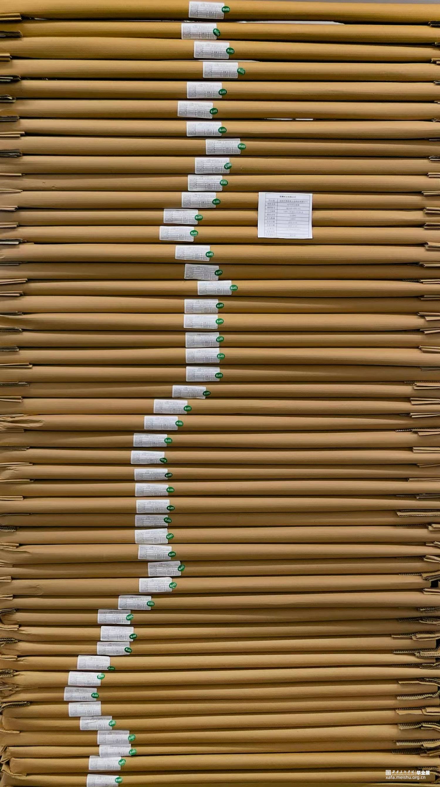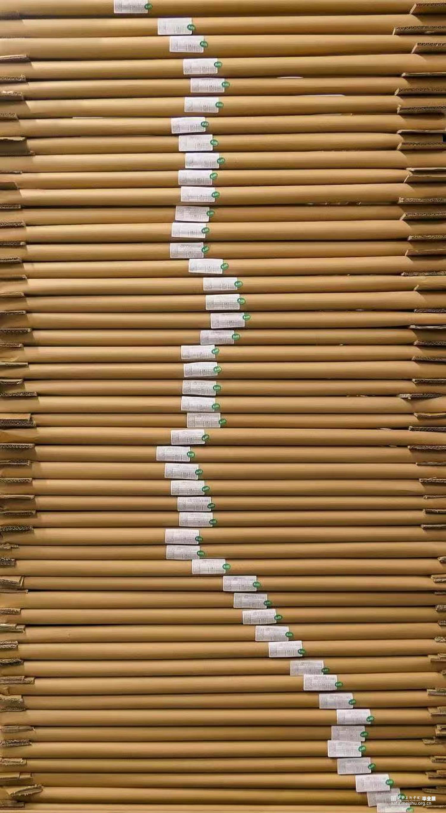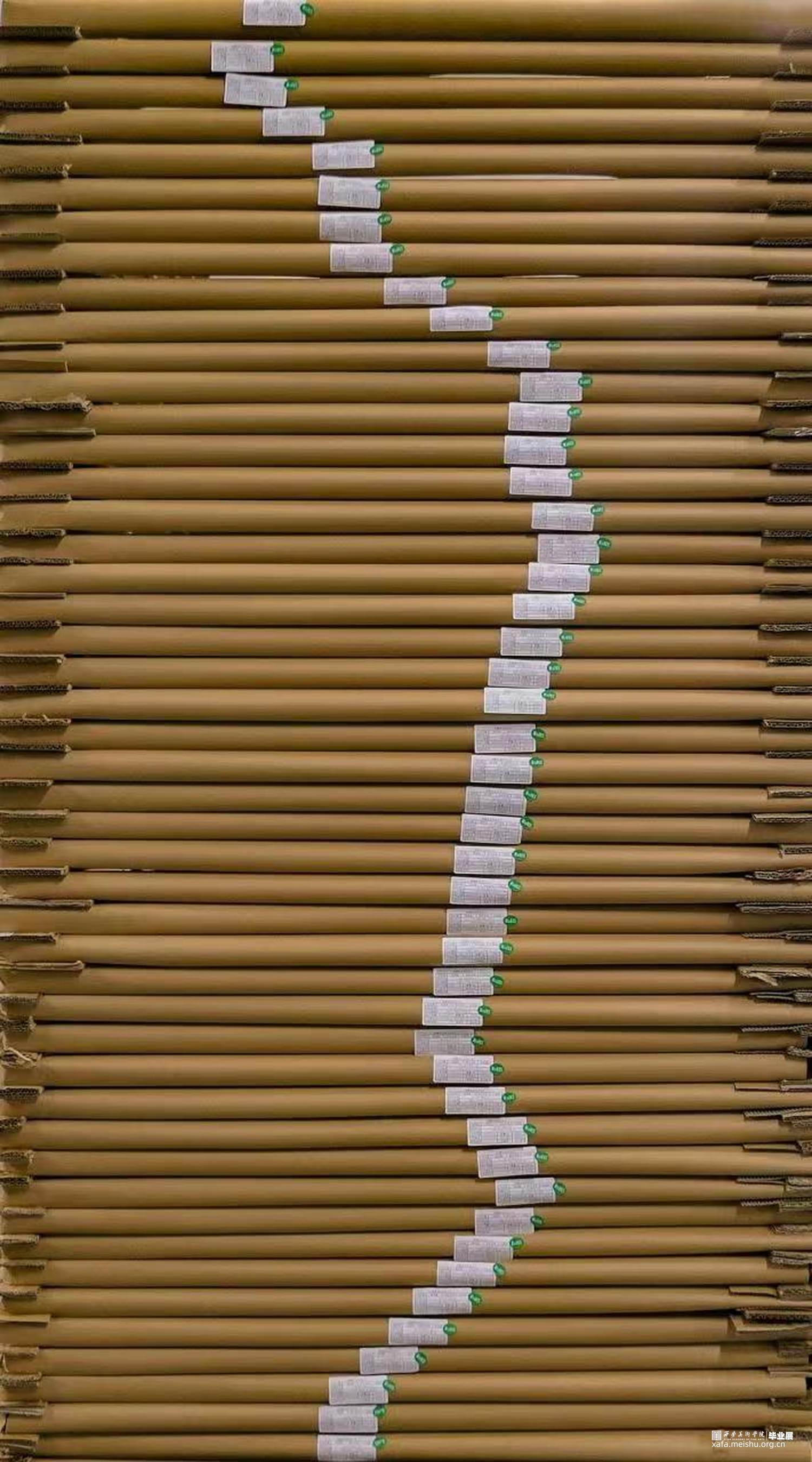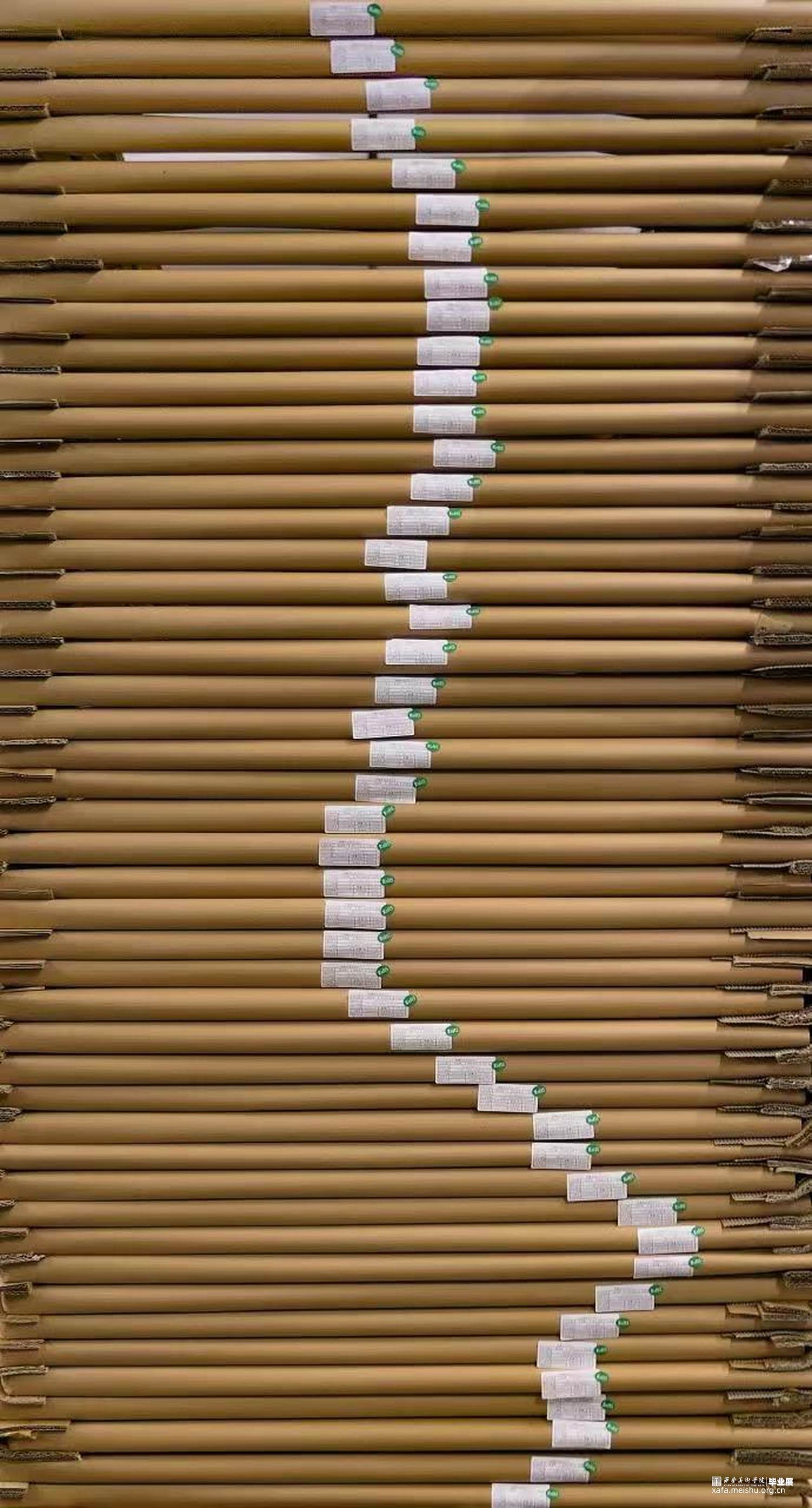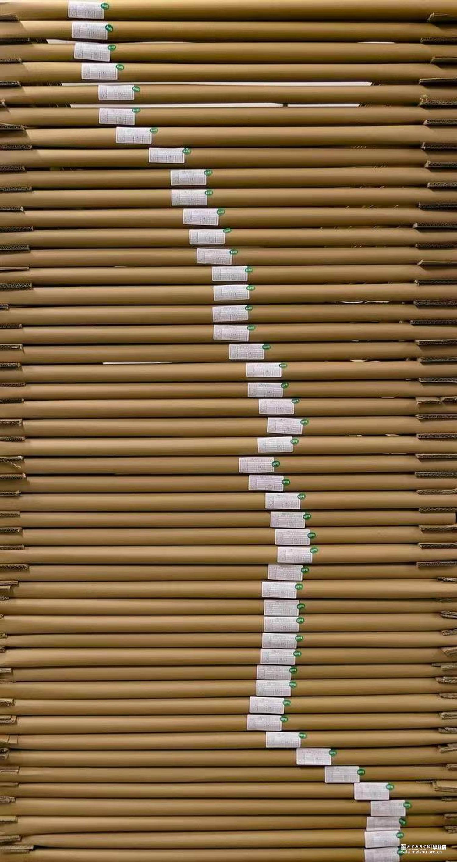 《回家的路》:在工厂的车间里,我发现了一个很有趣的东西,就是那一座座即将出货的货物。一座货物由45个铝制框堆积而成,出货员会在框的中间贴上标签,从远处看,这45个框就组成了一条笔直的立体的线,而纸皮就是它的背景布。我将这些线与工友们回家的高速公路路线联想在一起,将这些标签重组,邀请我的工友们,将自己回家的路线图贴在上面,最终形成了一座一座的高速路线图,并且即将送往另外一家客户的手里面。