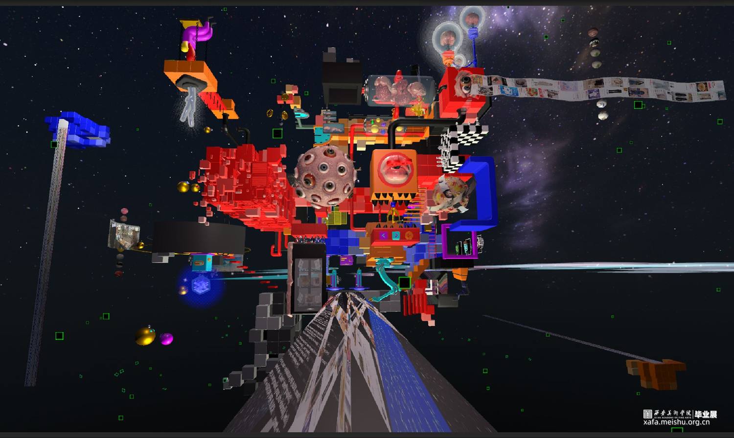 在这种充满差异化的社 会环境中,个体的归属感和安全感不尽相同,却又趋于同质化。我意将这种精神共生的时代景观通过映射于虚拟之境的形式来呈现,反应人们精神环境存在的现状,并通过这种方式来探讨 中国当下的新媒介语言与艺术思想之间的平衡以及对于元宇宙论题下的社会现象和它衍生出的未来艺术媒介发展的思考。 今天所留下来的古典艺术,都曾是其时代的实验艺术,人们审美习惯的统一会导致思维的僵化,当代艺术致力于超脱套路,破除成见和另辟蹊径,带来感性和思维的活跃。大量的新兴媒介 在艺术表达上被广泛应用,但在艺术应用中所涉及到的技术是非专业的,艺术家们所能应用的仅仅是表层的基本技术,真正的前沿内容是无法轻易使用和转换的。如同NFT,它为所有的精 神数字化产物提供了保证,使虚拟物得到了一定的赋值,但当下NFT艺术品的交易,更多的是在进行金融融资,而非真正的去关注艺术和人本身,与元宇宙的去中心化精神内核背道而驰。 但艺术与科技的结合,在不同时代下应用,表达媒介是相对应的,其艺术表达所运用的形式和方法皆是为精神与创造力所服务的,艺术作品是艺术家观念的投射。