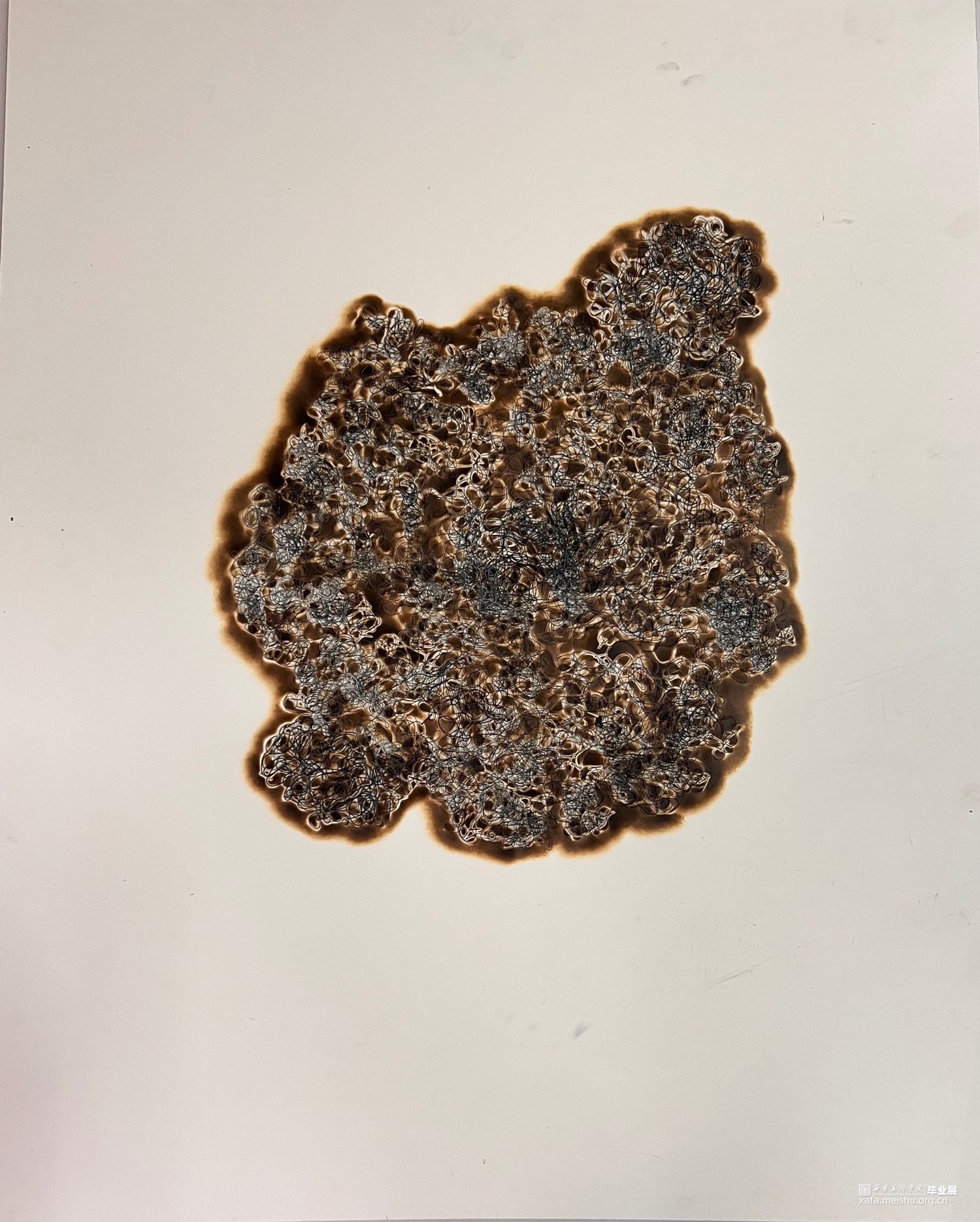 在创作初期我们三个人都想做有关痕的内容,于是一拍即合决定做各自所理解的痕,最后联合展示出来,我的这个部分是我理解的痕,这里的痕更多的是指伤痕,我产生创作这个作品的想法是因为我发现随着年纪的增长,我们心灵承受的东西越来越多,就像大家说的心累,身体遭受的是可以被看见的伤,伤好了之后有时也会留下一道清晰的疤痕,但是在心灵中的精神上的伤痕是无法被看到,甚至有时是无法开口诉说的,于是我就想通过不同的材料,不同的创作手法来表现这些无法被看到的伤痕,在材料选择上,我是比较贪心的,因为伤痕不是一种样子,它是多种多样的,同