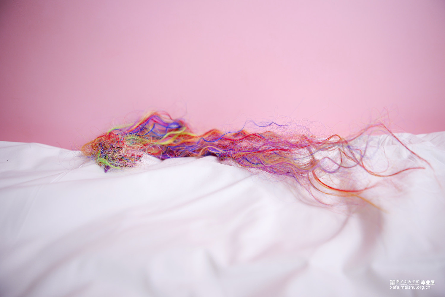 作品将女性的毛发以及穿着现象时尚化,一改这类事物的常态,由彩色的毛线代替原本黑色的毛发,将珍珠缝至衣服外,探索了女性身体在审美观念上的更多可能性,这整个过程就像在沙漠种树,在本应有树的沙漠上种下无限可能,在贫瘠的沙漠上种下新元素。