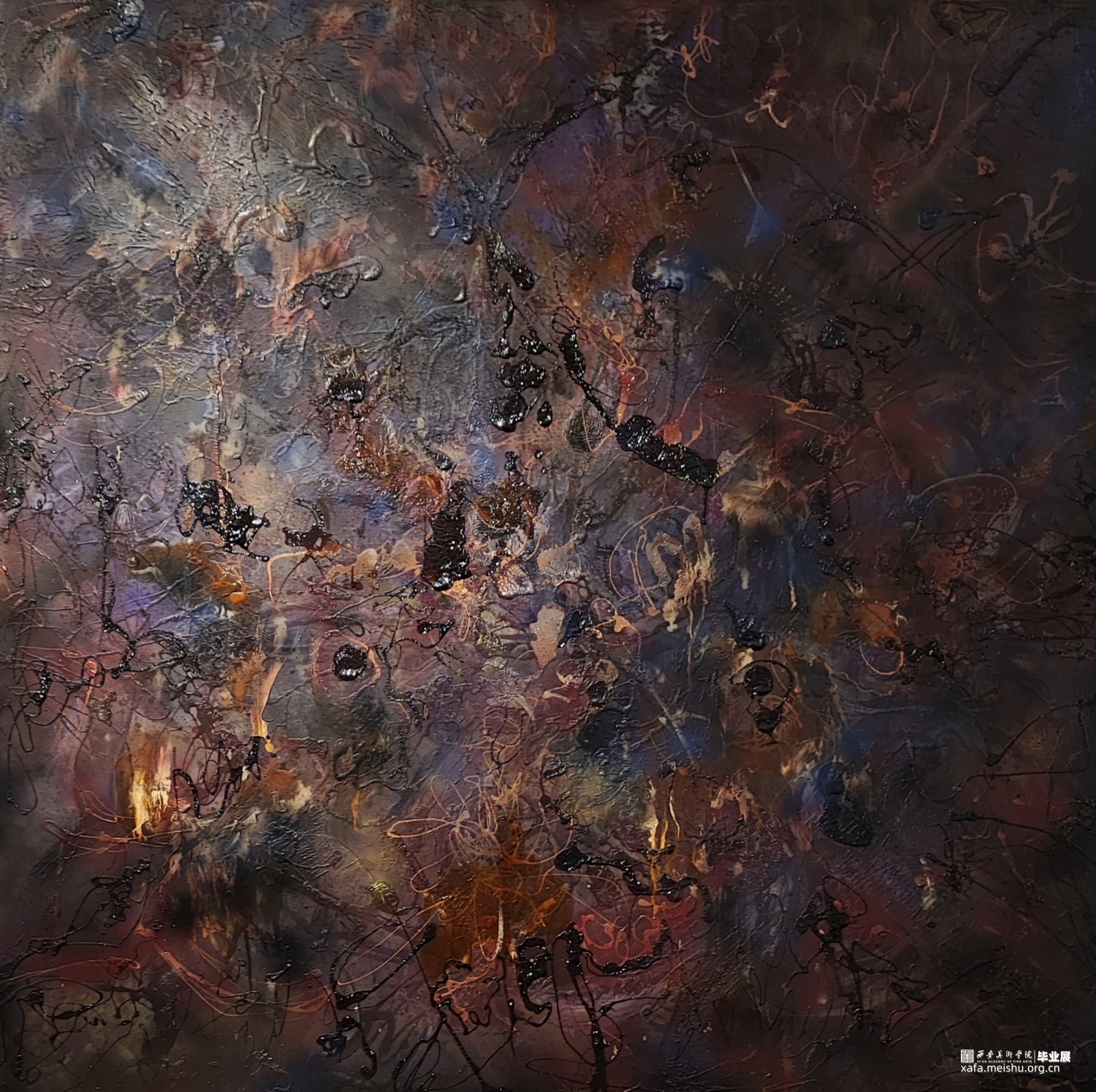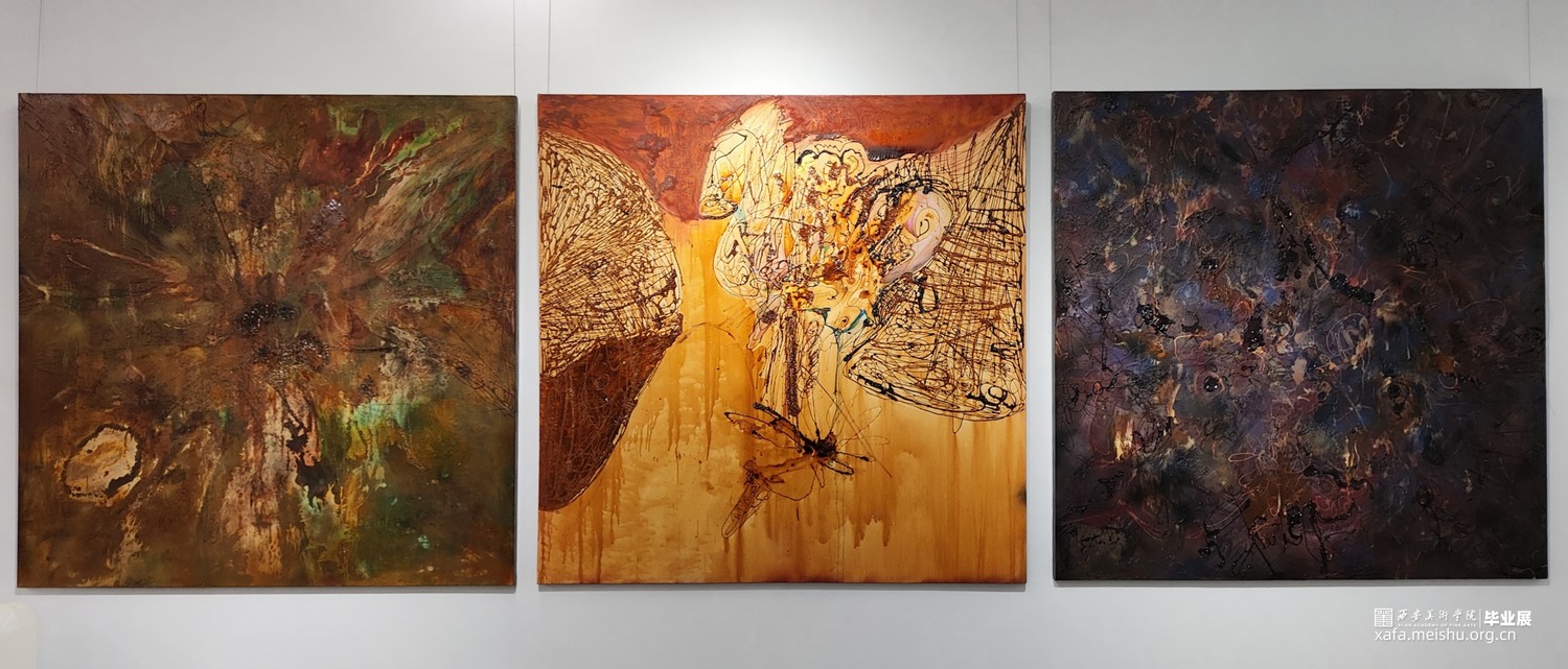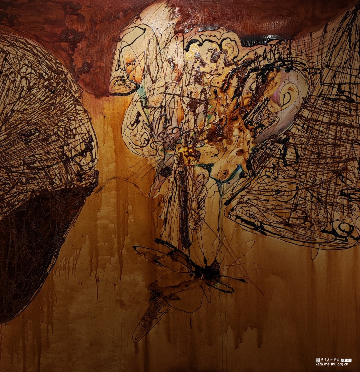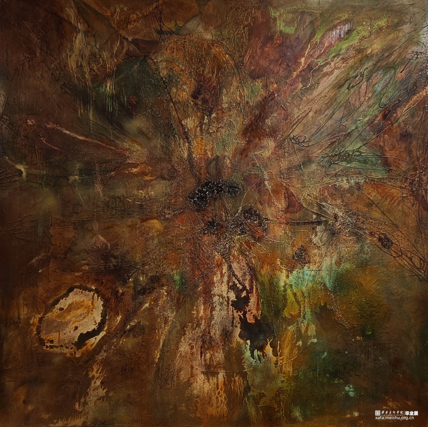 试图通过多种材料以非常规的绘画方式进行“茻”的气质展现。色彩以不同介质和手法呈现出的效果也存在着差异,画面的中心细节以及构成安排随着画面的展开将精神也逐层深入。其中有我想要表达的意象,即我的精神的倒影,又有亦可以昭示下一个开始的端倪。