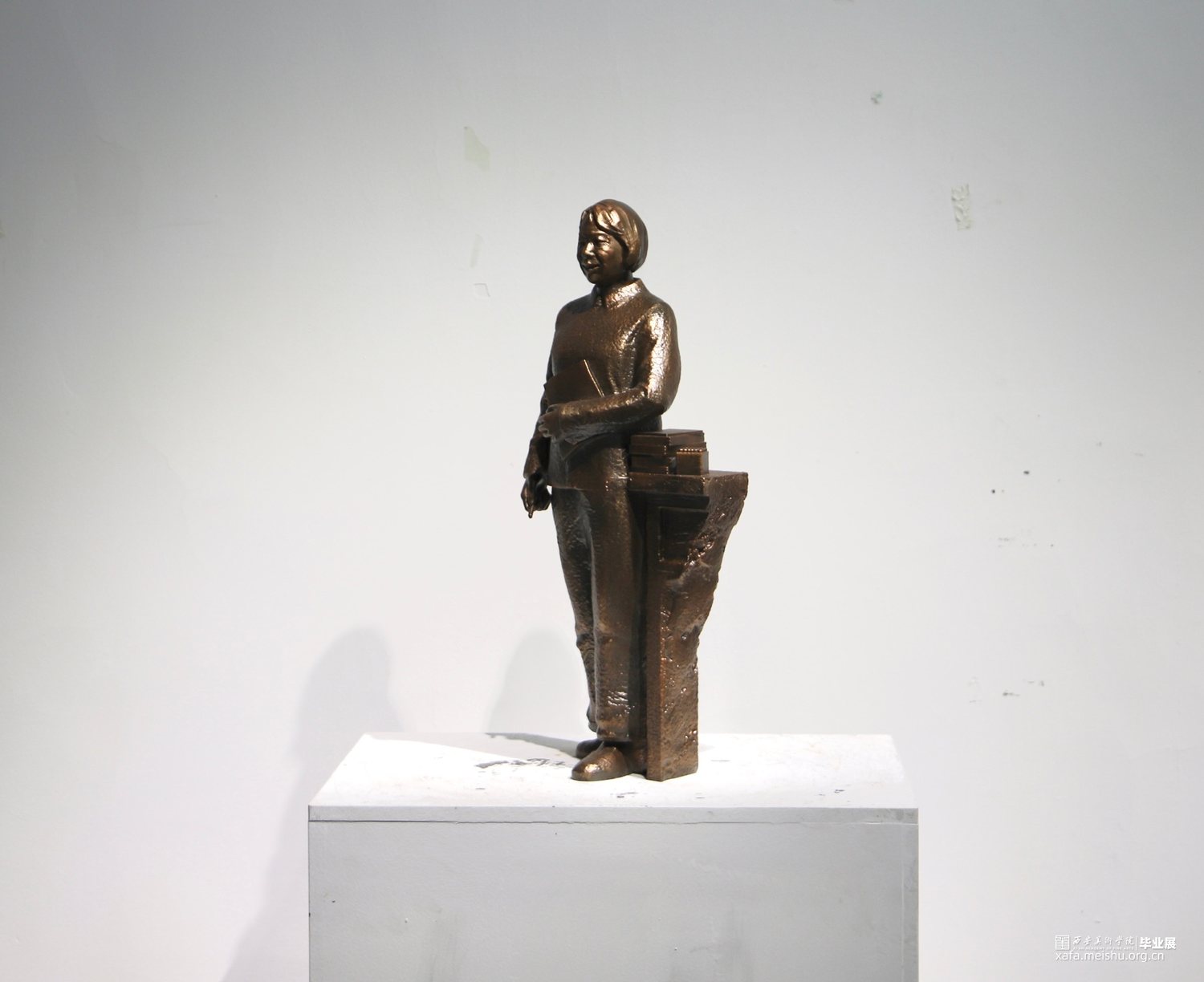 生活中的为教育事业奉献自己的人民女教师的形象为主体,手拿粉笔与课本,用简单明了的象征物体表现出人民教师的精神面貌。