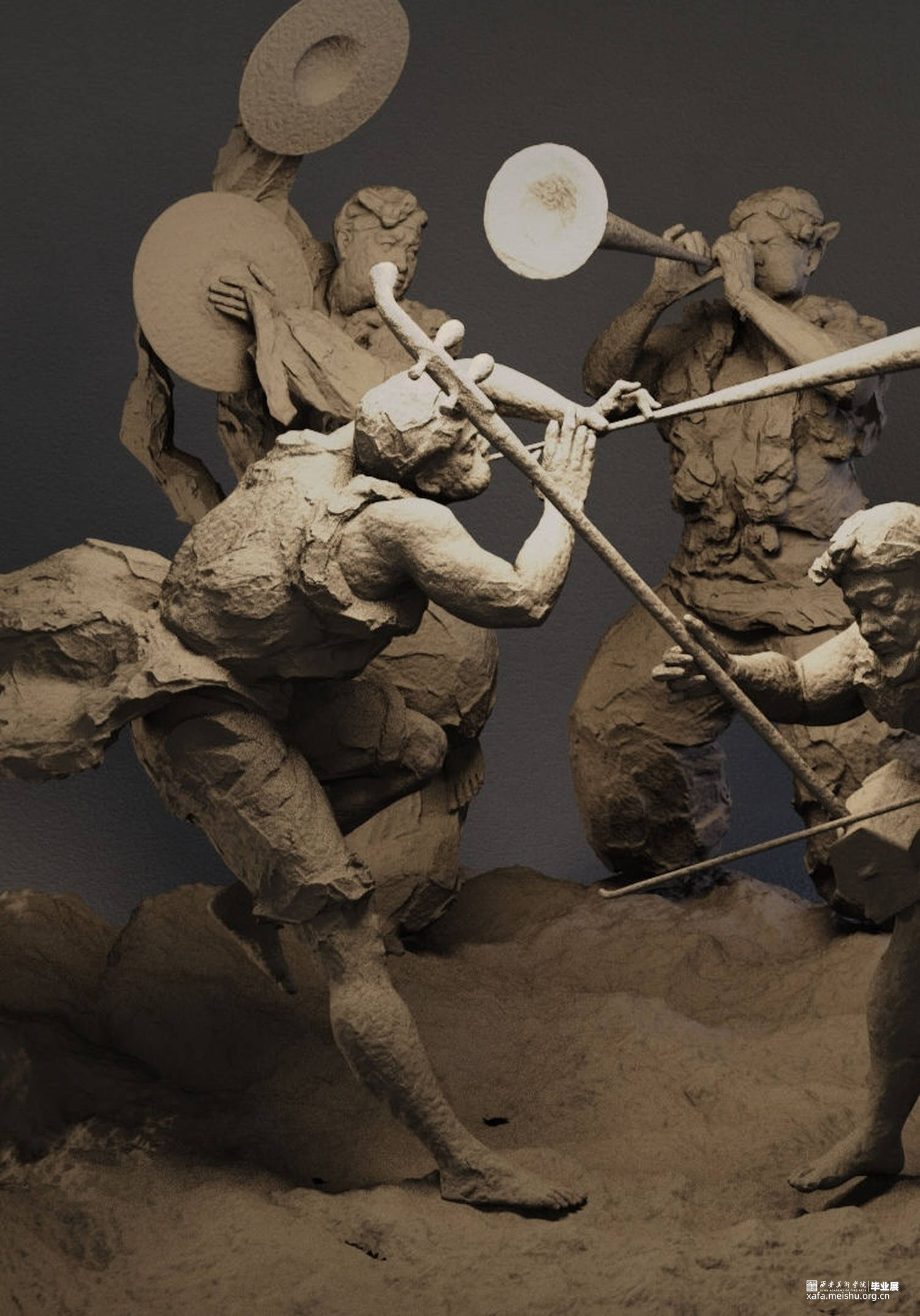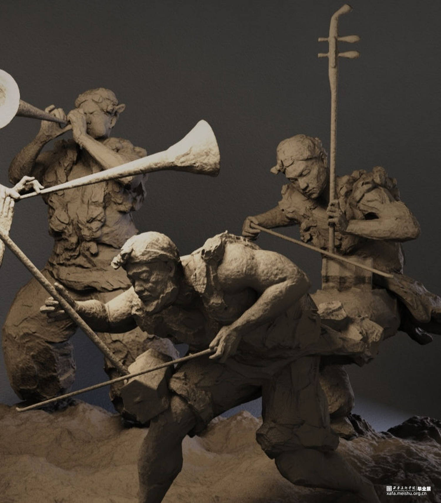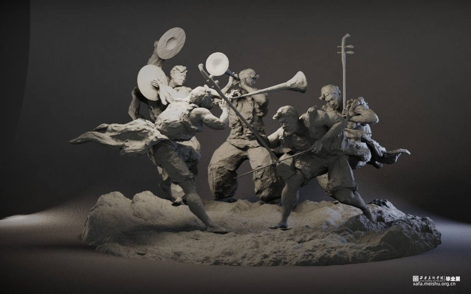 作品表现陕北民俗文化。通过表演者演奏传统民乐时的投入的神态和飘动的衣服,体现出陕北民乐中磅礴高亢和热情的基调。人物动态夸张,服饰也融入到喷涌的气氛当中。作品有一种律动感。