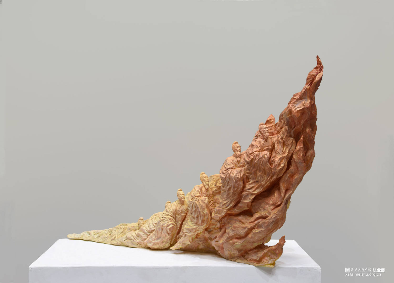 作品的总体设计构思,采用人物群像与火焰外观相结合,将传统与当代的写意创作技巧融合,把中华