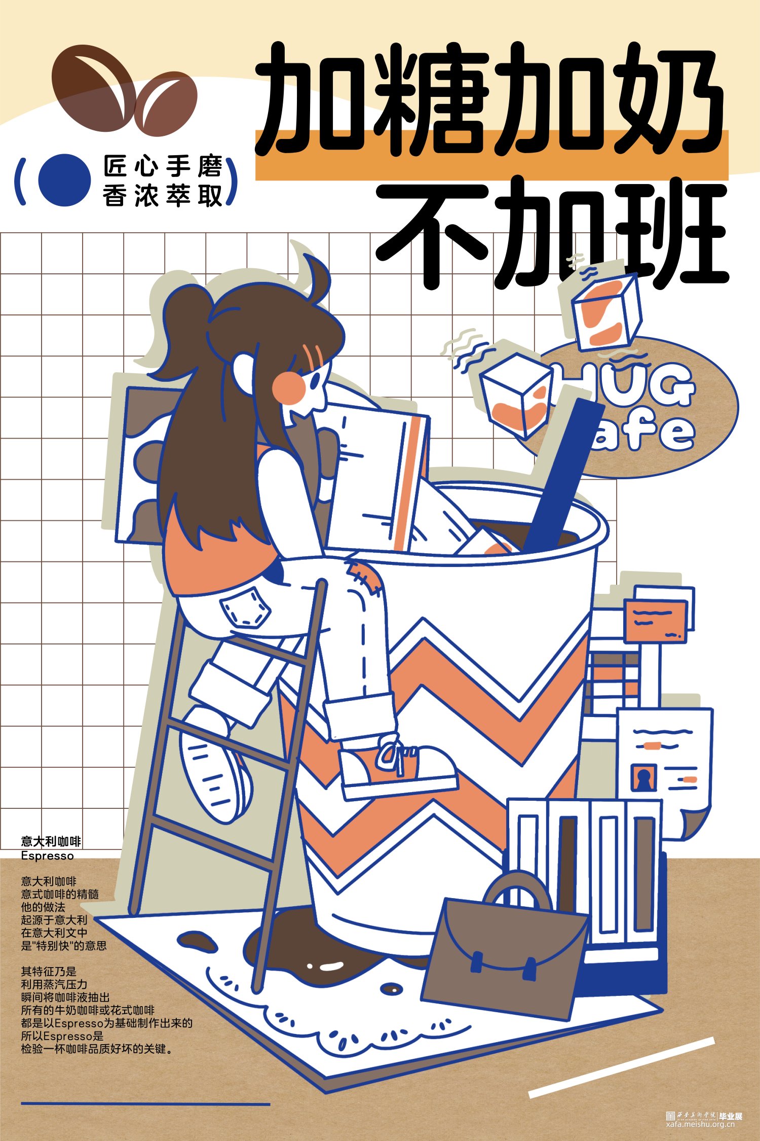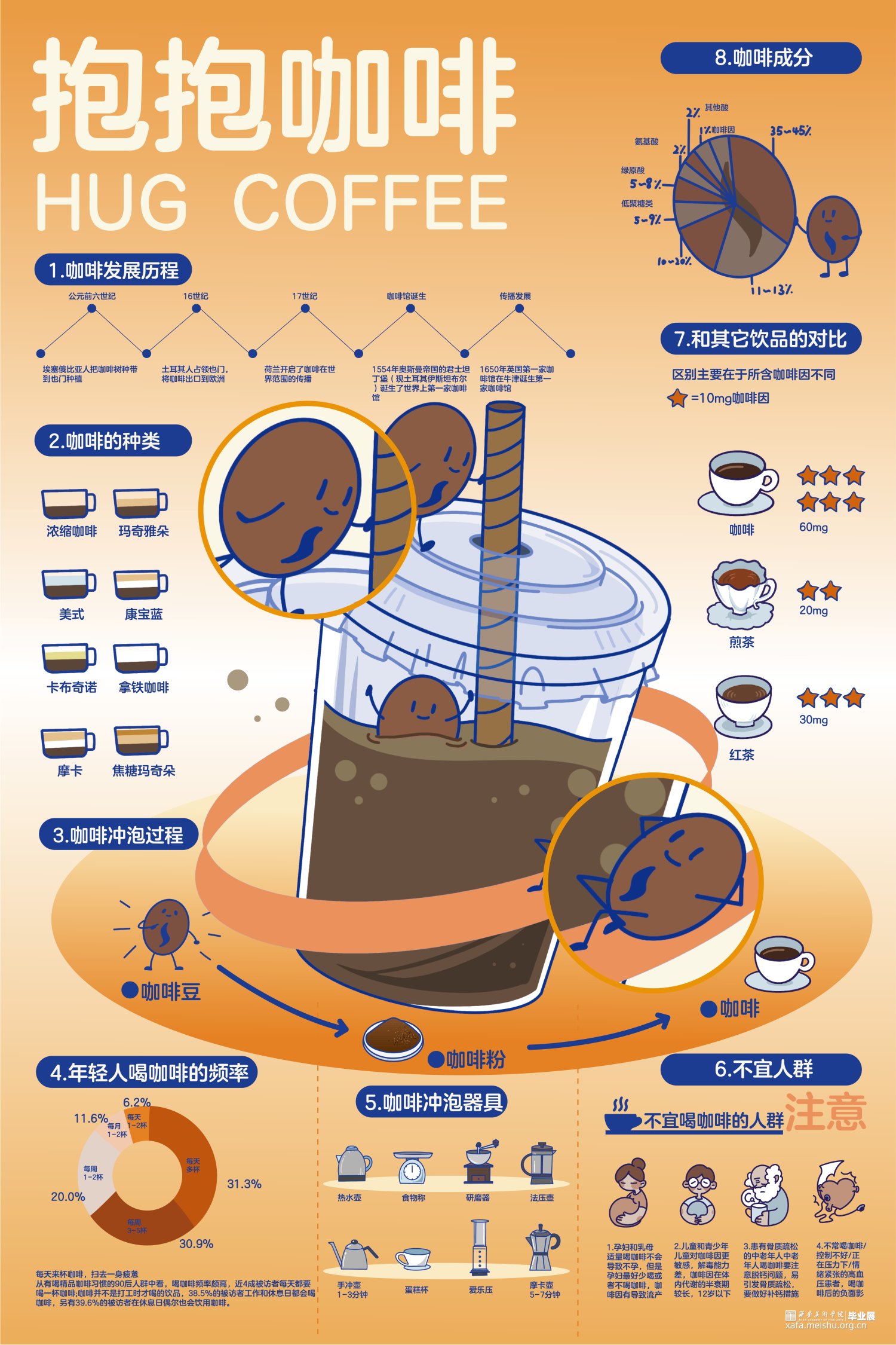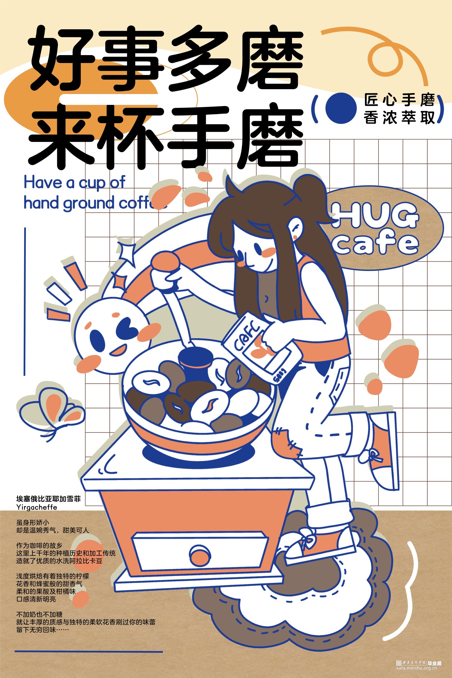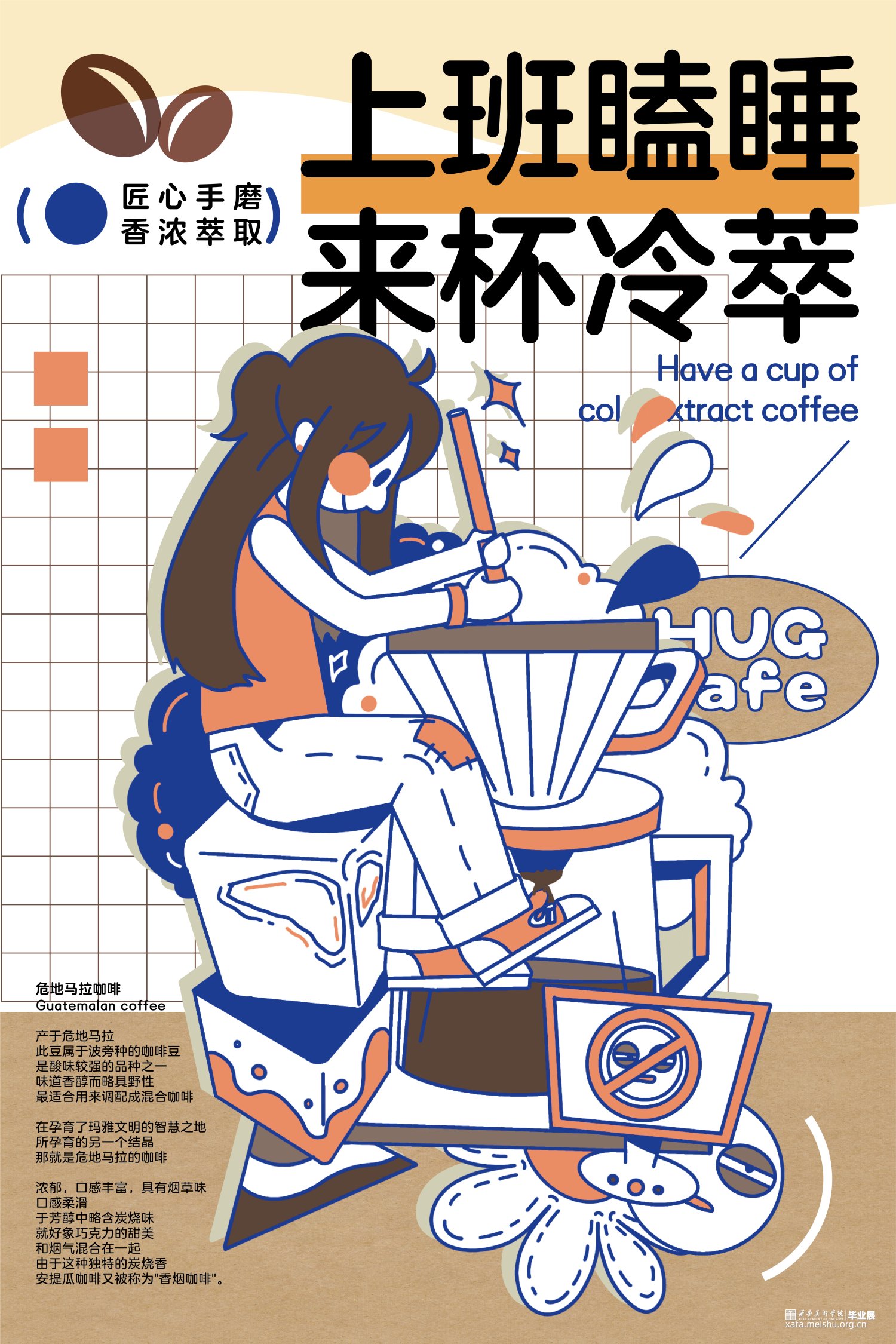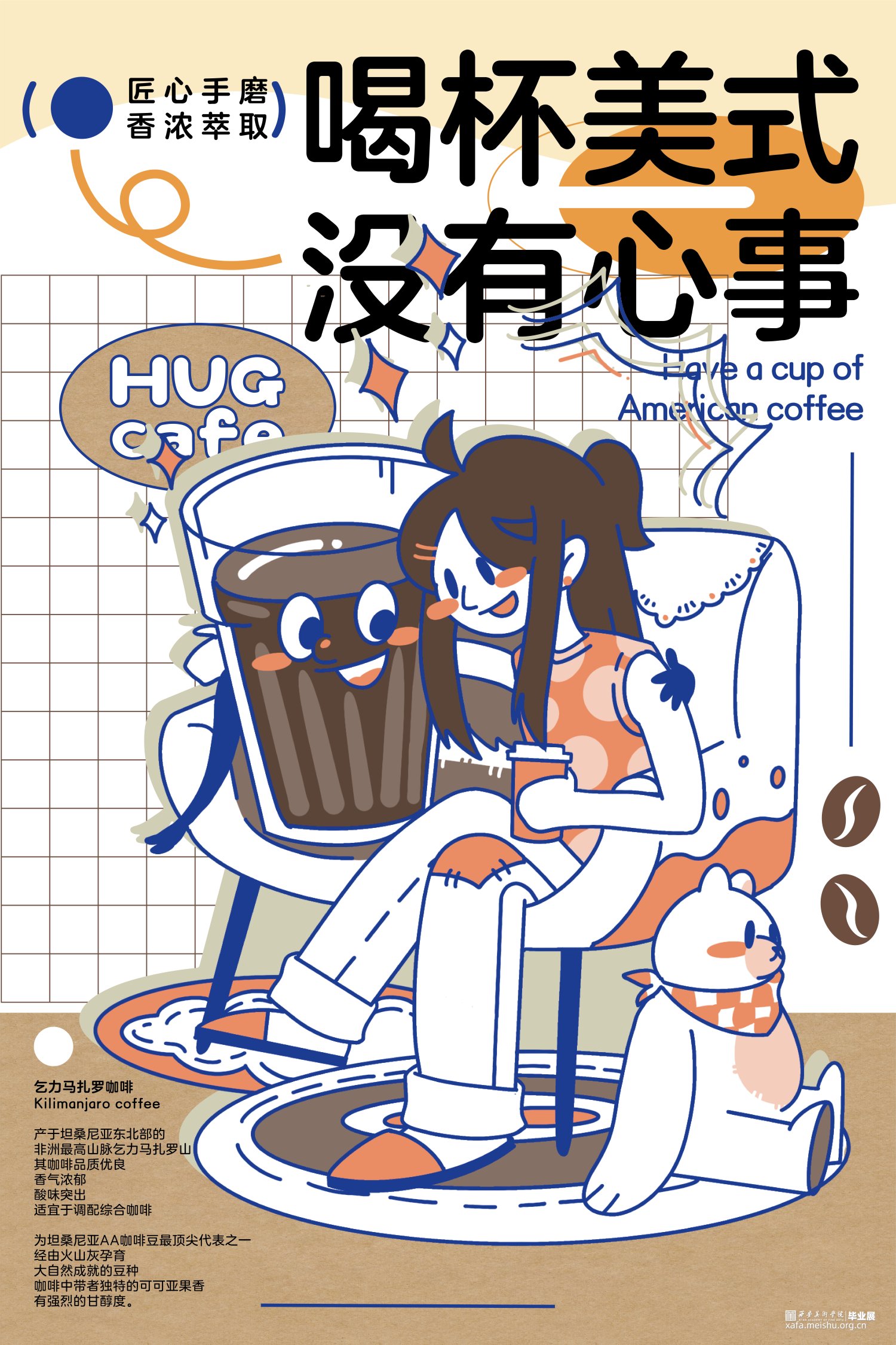 现代社会人们在繁忙的生活里,往往选择用一杯咖啡来支撑自己一天的好精神,或是让自己的心情稍微放松。心理学的研究表明,拥抱和触摸有利于心理健康。拥抱它能很简单又明确地表达着人与人之间最真的关爱。拥抱也会帮助人消除沮丧,消除疲劳,增强勇气,注入活力。希望通过咖啡与拥抱的结合,给忙碌生活里的人们以鼓励与慰藉。本次实践通过将富有情感的拥抱与人们繁忙生活里爱喝的咖啡作视觉结合,塑造具有情感的咖啡品牌以让用户通过该咖啡品牌体验其带来的积极愉悦的情感变化。