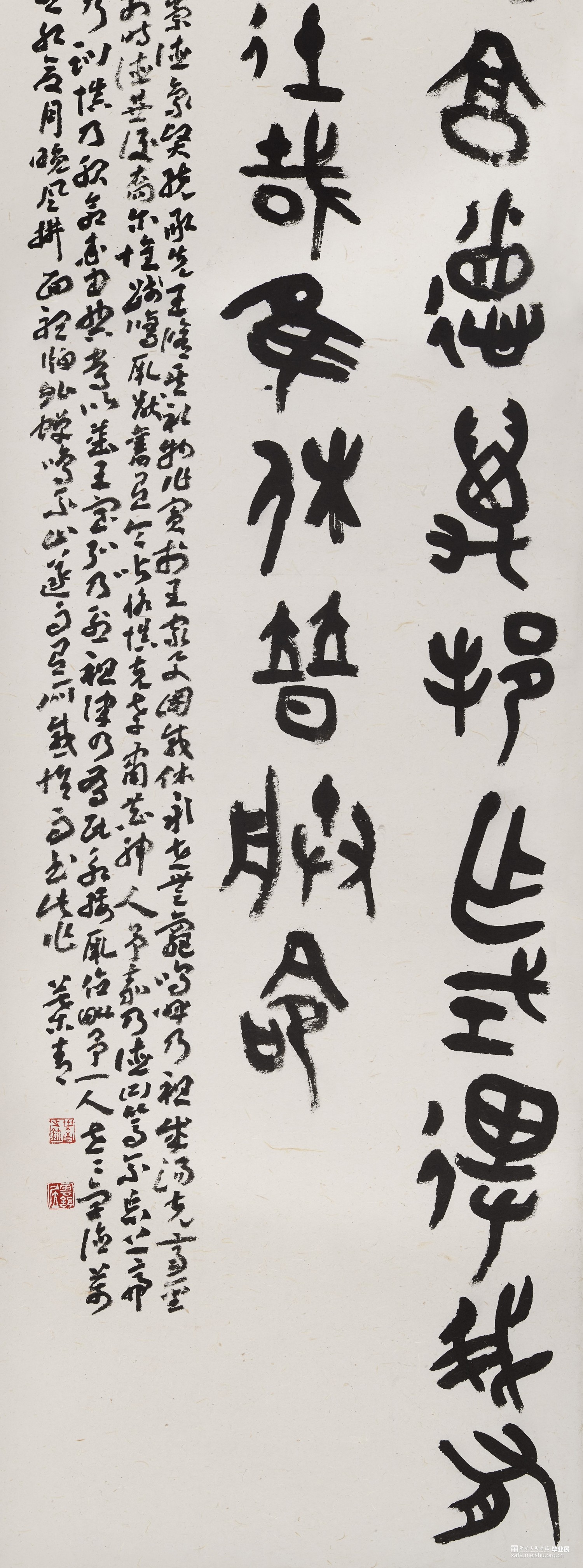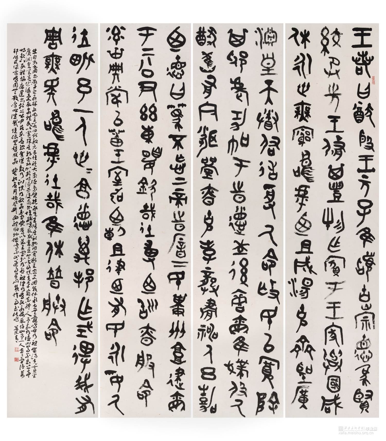 金文作品内容出自《尚书 周书·微子之命》。取商周金文,气势雄伟,醇厚古茂,欲寻其天真自然之感。