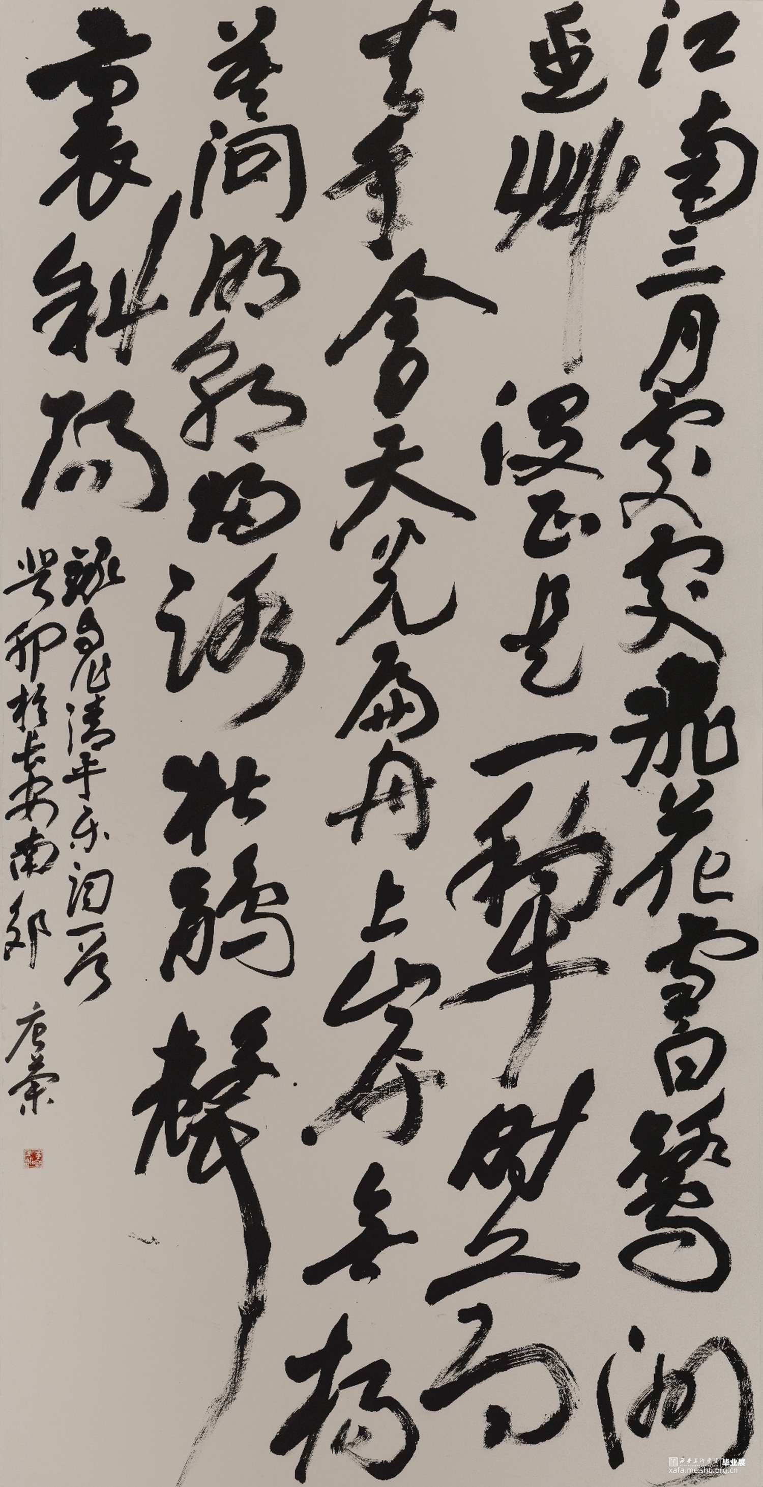 大作品:释文:白鹭洲边青草没。正是一犁时节。去年今日天光。扁舟上岸垂杨。莫问明朝归路,杜鹃声里斜阳。
