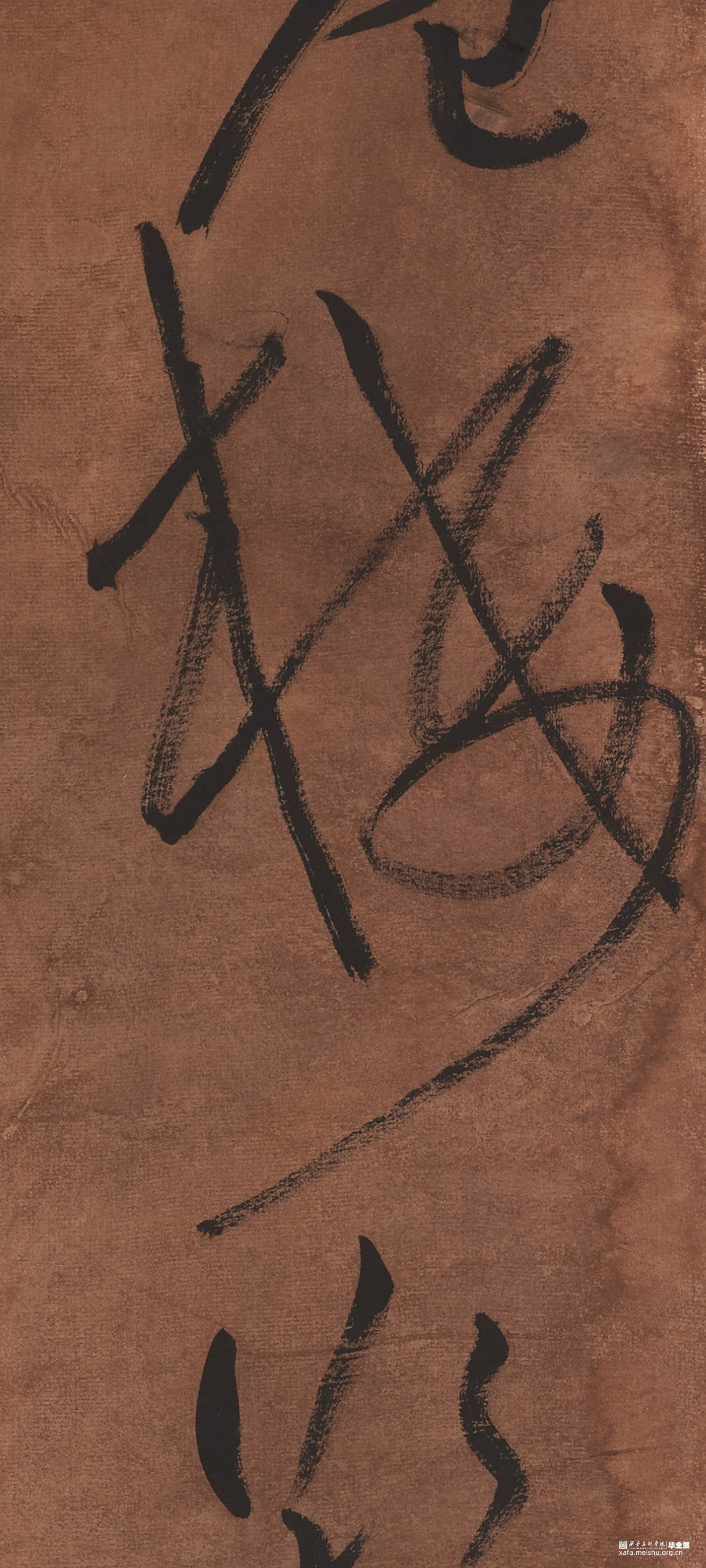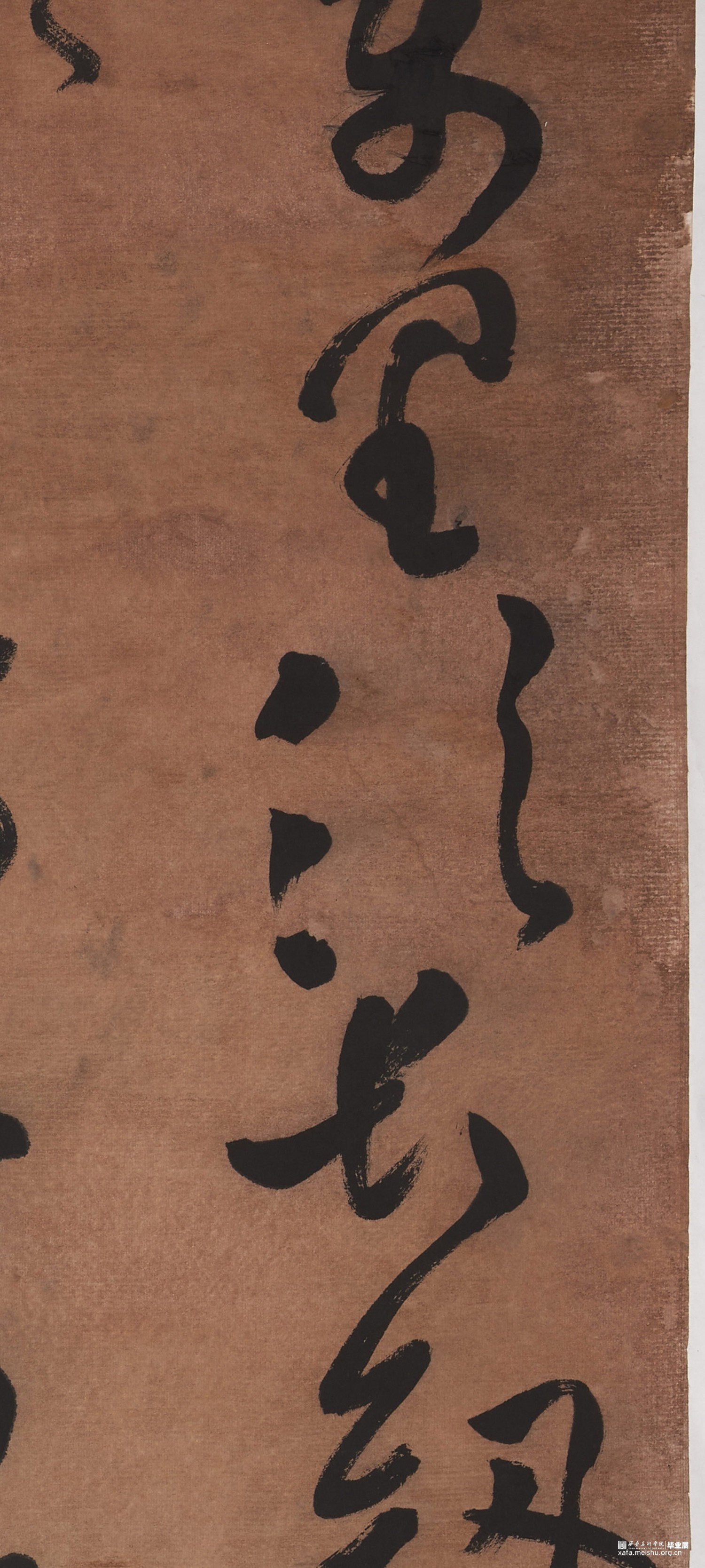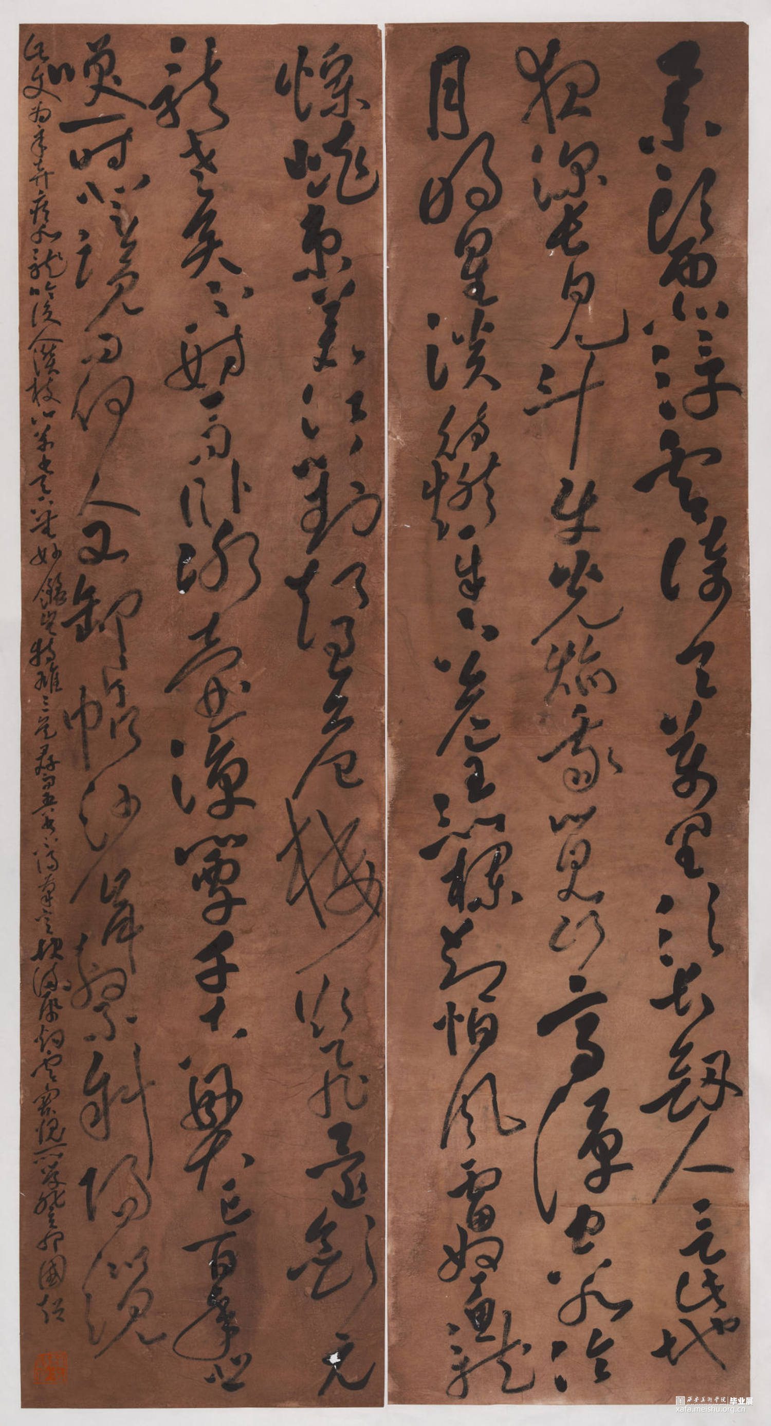 内容为辛弃疾《水龙吟·过南剑双溪楼》,大草多次临习祝允明《前后赤壁赋》,《岳阳楼记》,黄庭坚《李白亿旧游》,从中学习取法,担创作多次不尽人意,最后熬夜通宵,女友相伴引纸一挥而就,得此一副作品,最后染纸,发生意外,多出小孔,虽有小伤无扰大体,最终形此作。