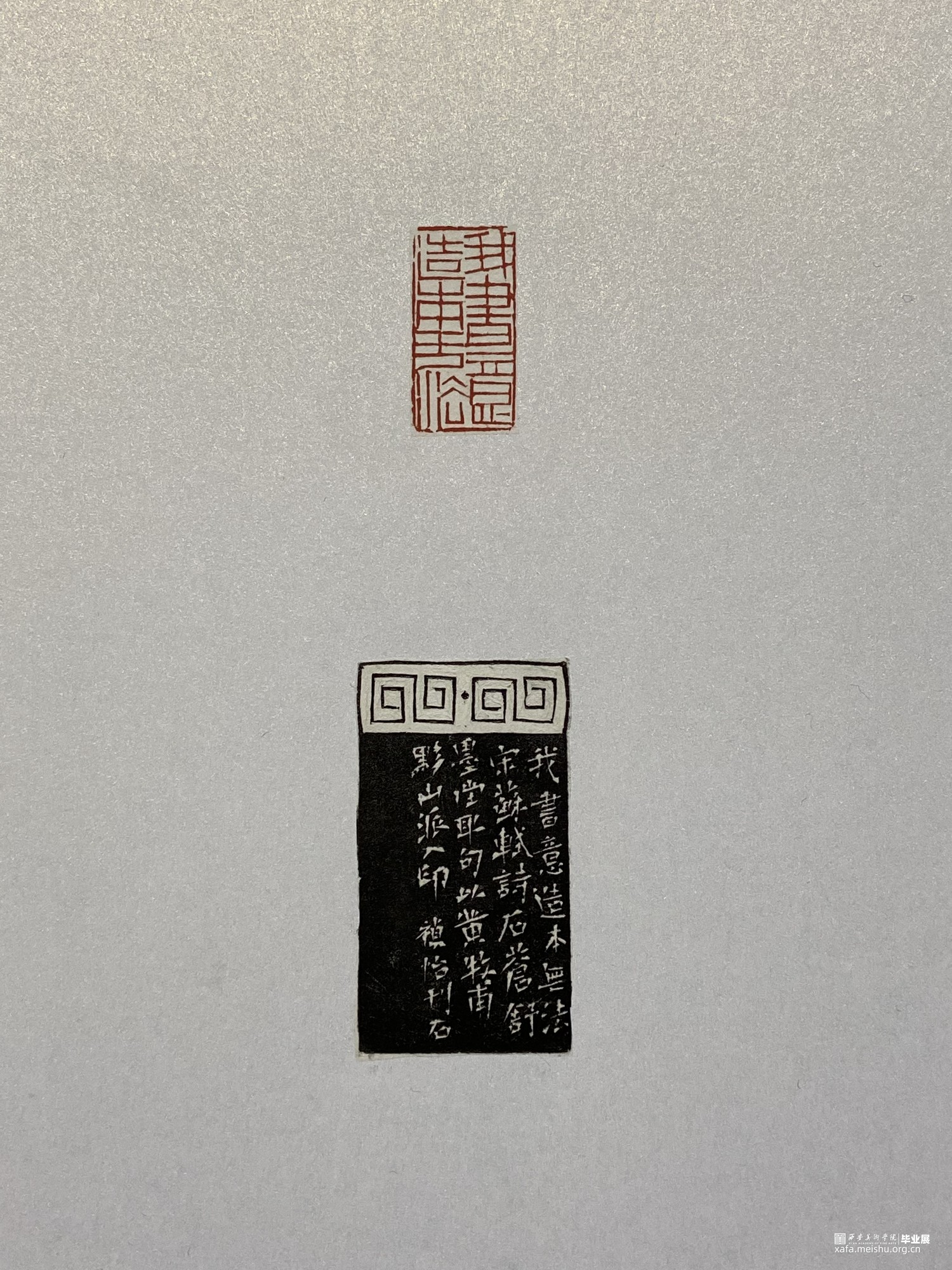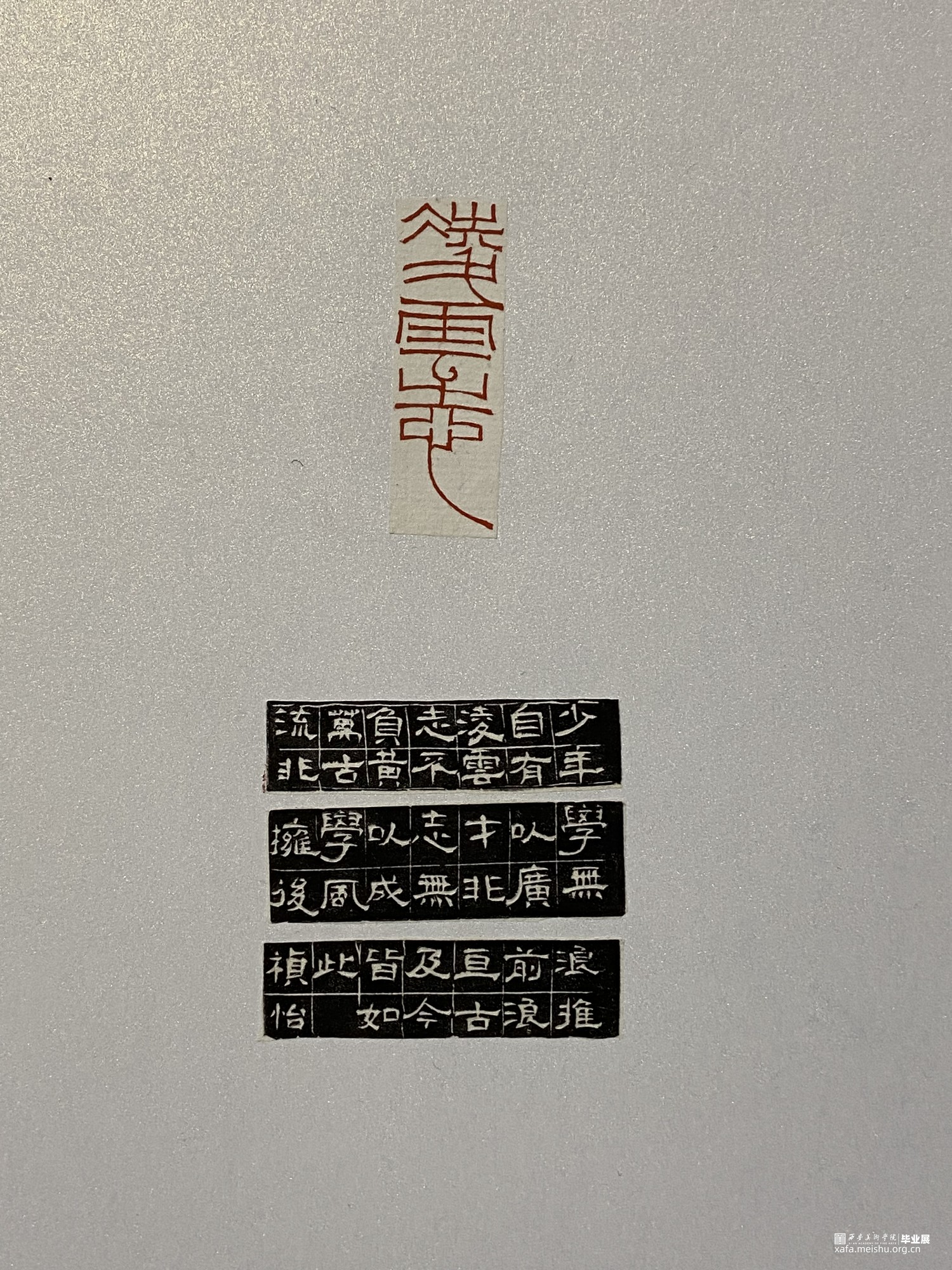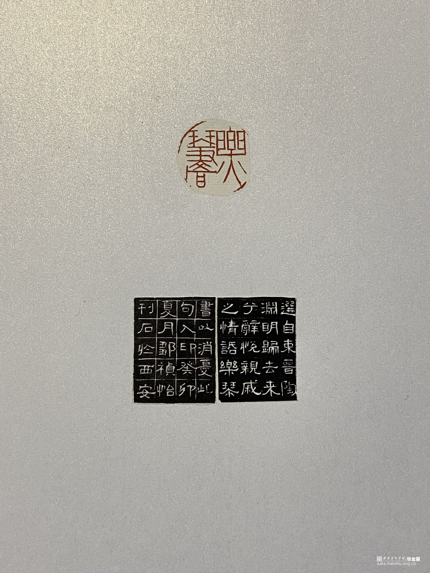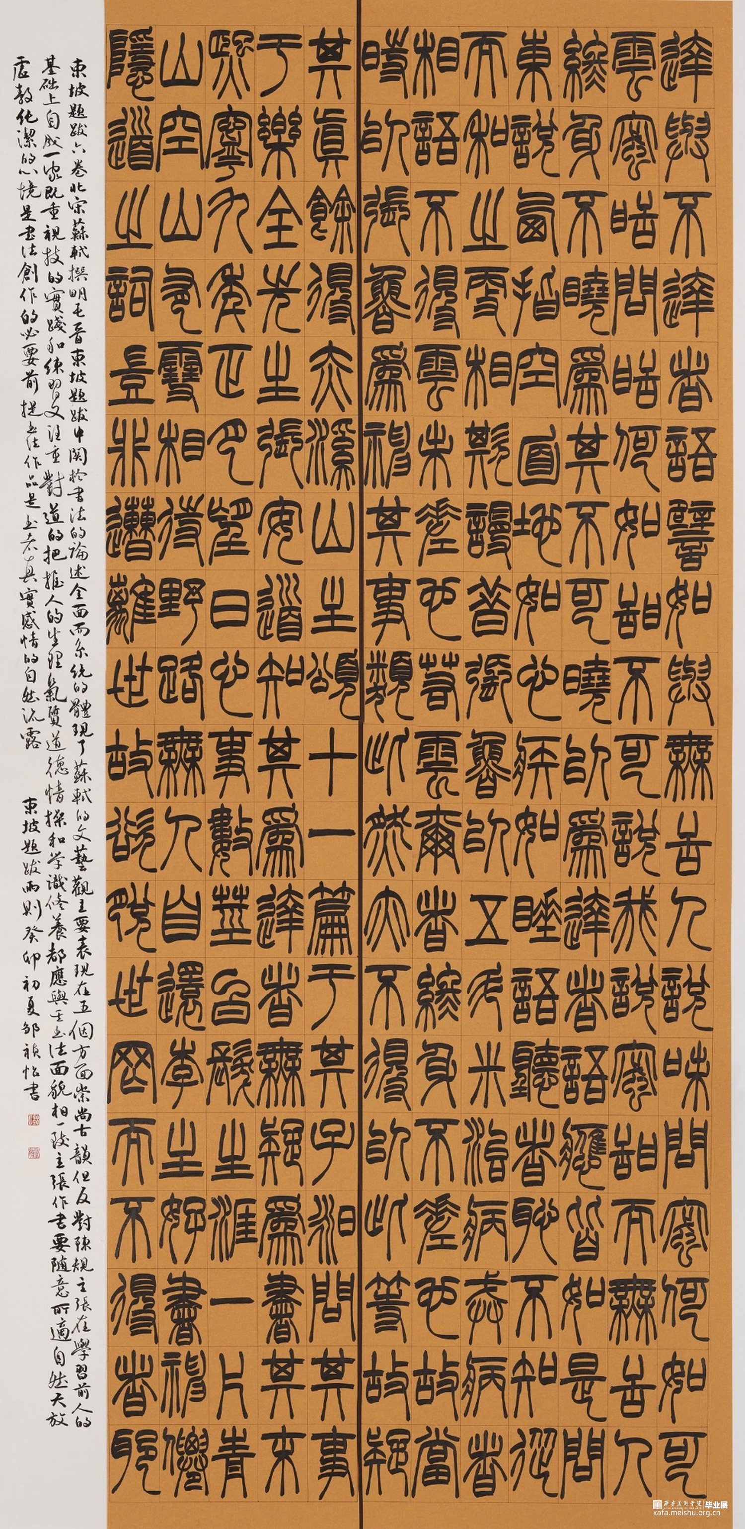 作品选自《东坡题跋》,取法赵之谦篆书《三略八屏》,加入吴让之笔法,两者结合,将曲折并用,方圆相备,欹侧避让体现的淋漓精致。