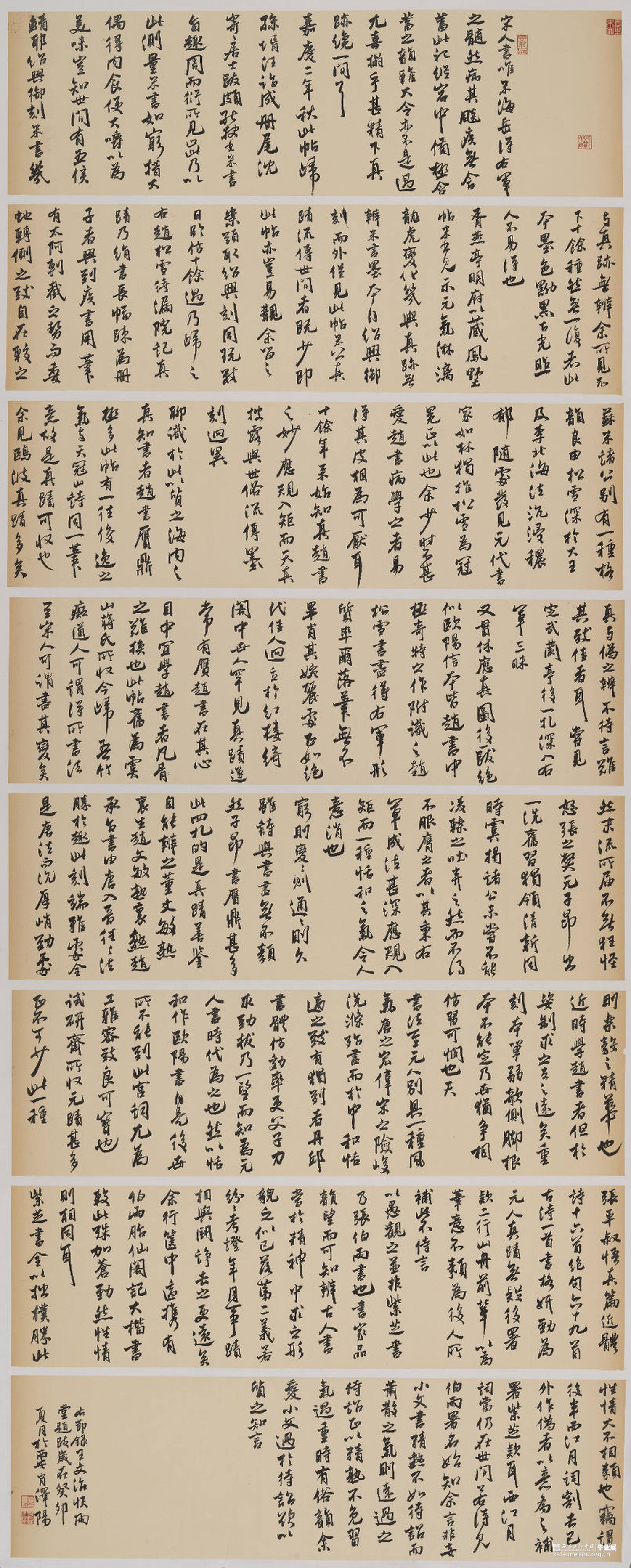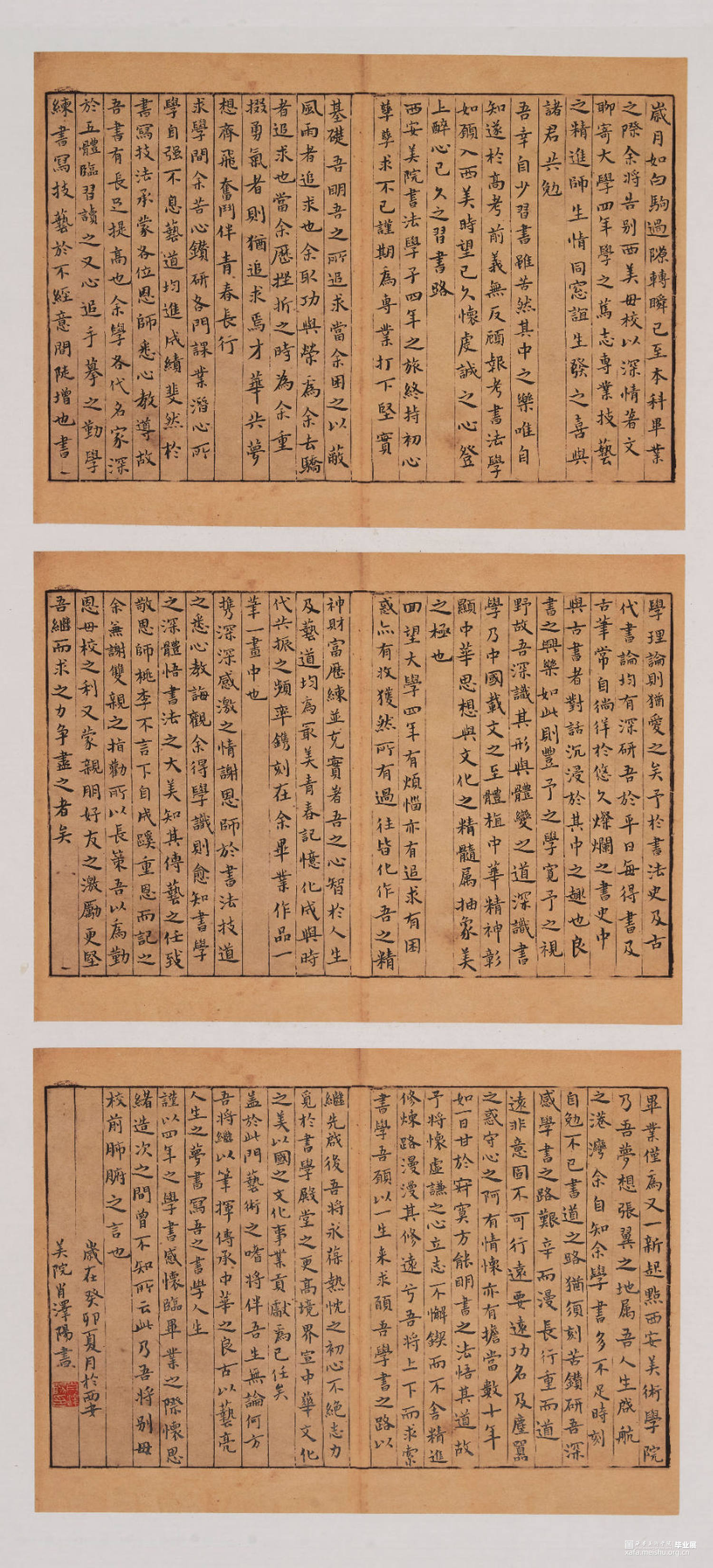 毕业作品一《快雨堂题跋节录》,尺寸为248×98cm,用小字行书书写,