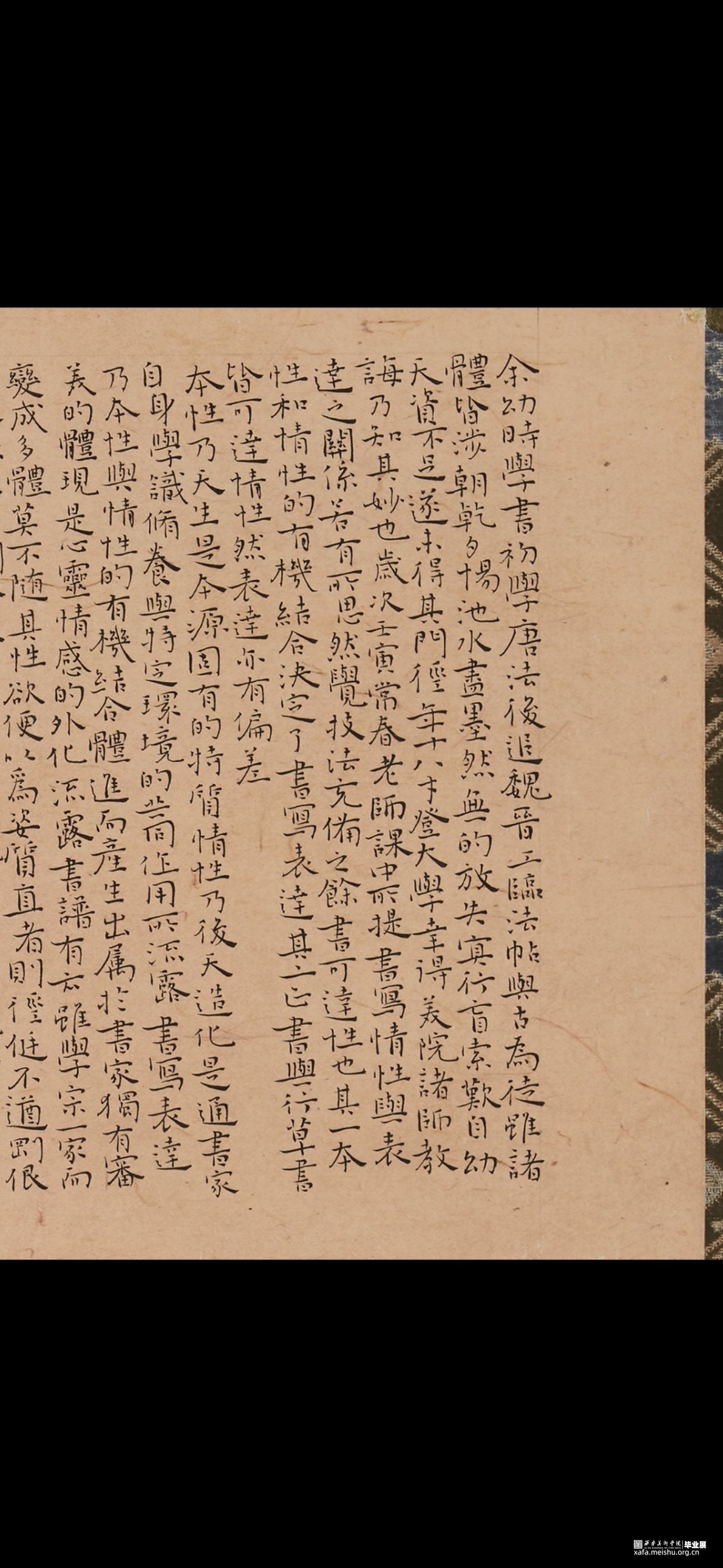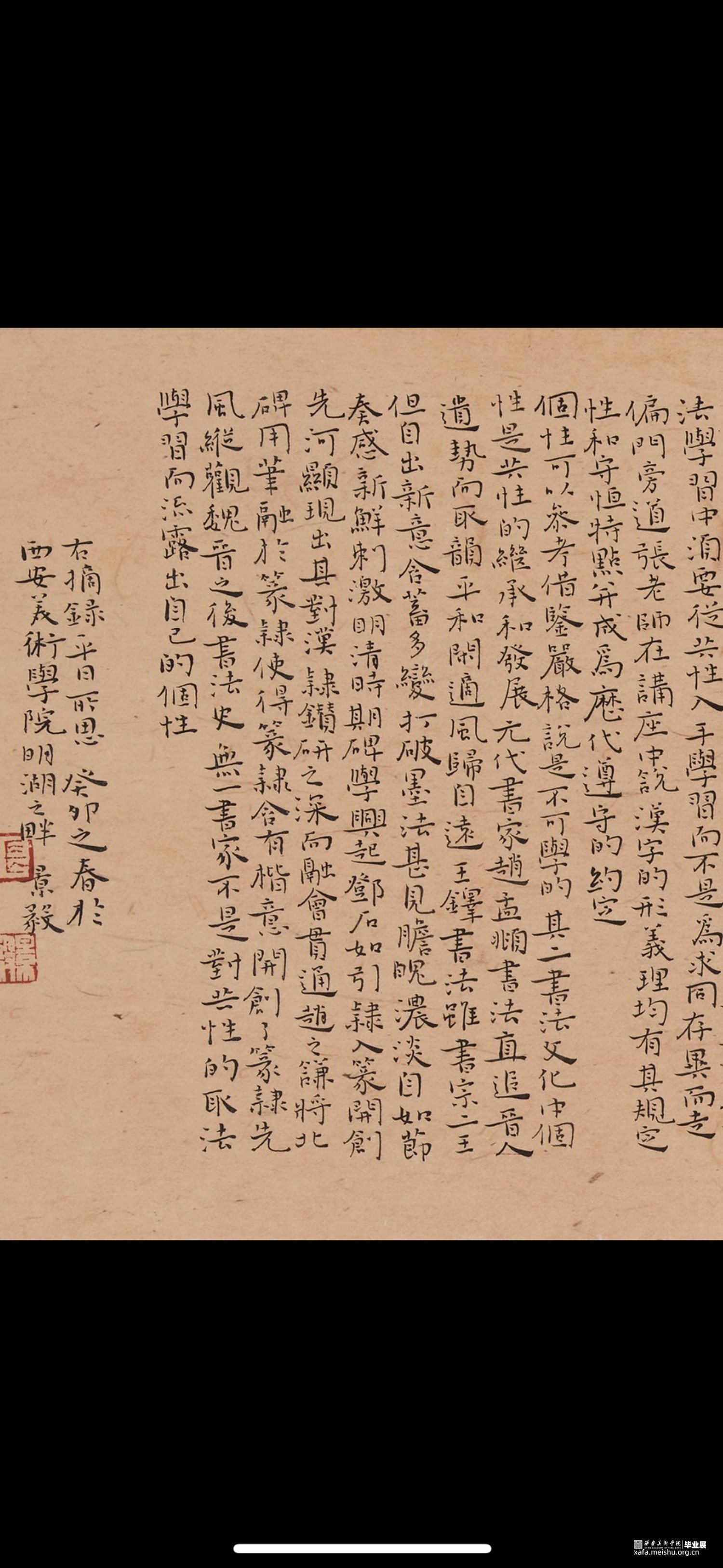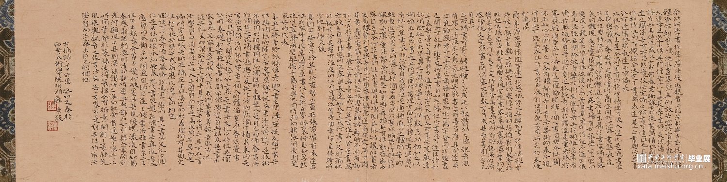 2、此件作品摘录平日学书所思,采用手卷形式,取法钟繇、二王一路小楷,单个字径约为0.5mm,追求用笔上的精致,章法上有列无行,字形大小随势赋形,追求自然散淡的表达效果。