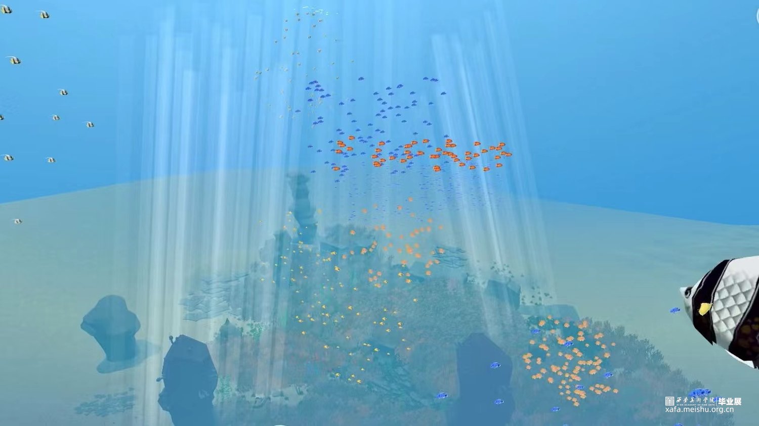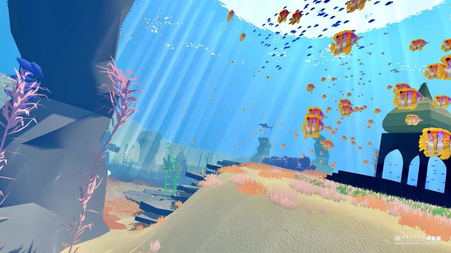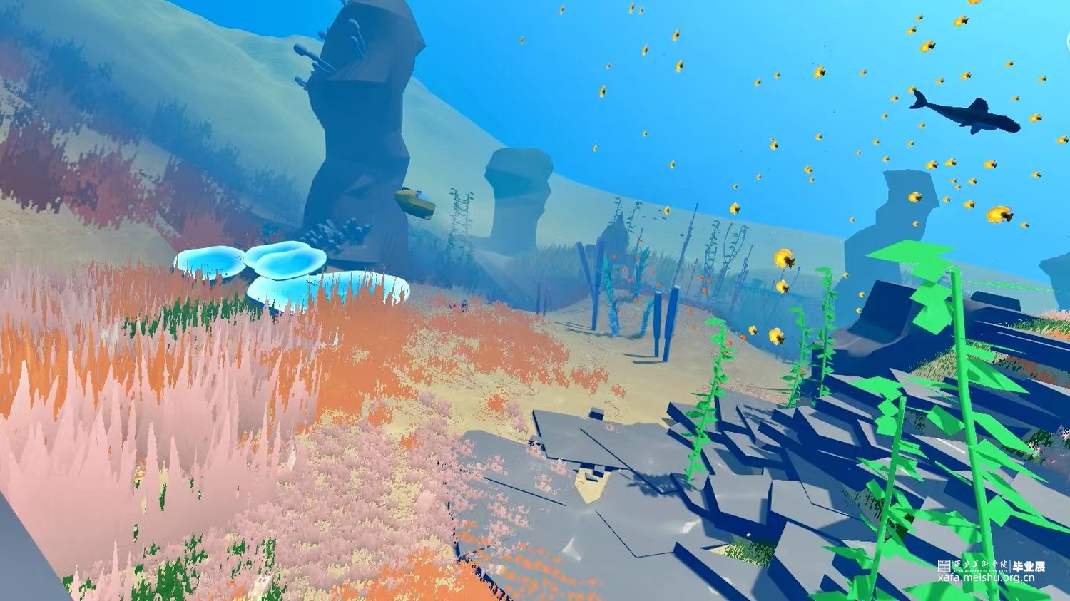 《预见》作品阐述:本作品是一款第一人称探索游戏,以日出的霞光和变化的云彩为灵感,运用自然的画风和观赏性为主的互动式体验,以达到环境美和意境美有机结合,将“以自然为本”的设计理论取代了“以人为本”,其根本是追求人与自然的和谐相处。作品旨在通过有限的观赏性场景来治疗人们现实中的疲劳,引起共鸣,思考环境保护,是希望大家停止对生态继续破坏,从现在开始改变,预见未来。