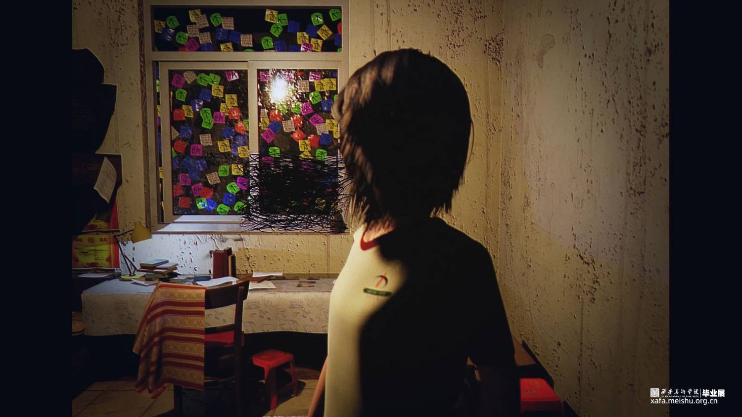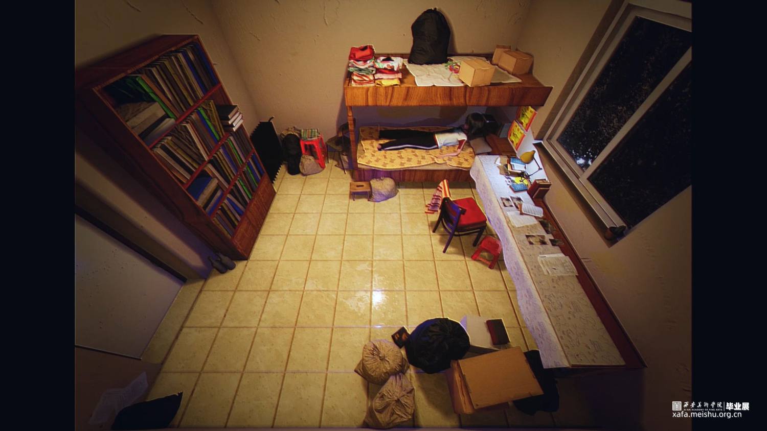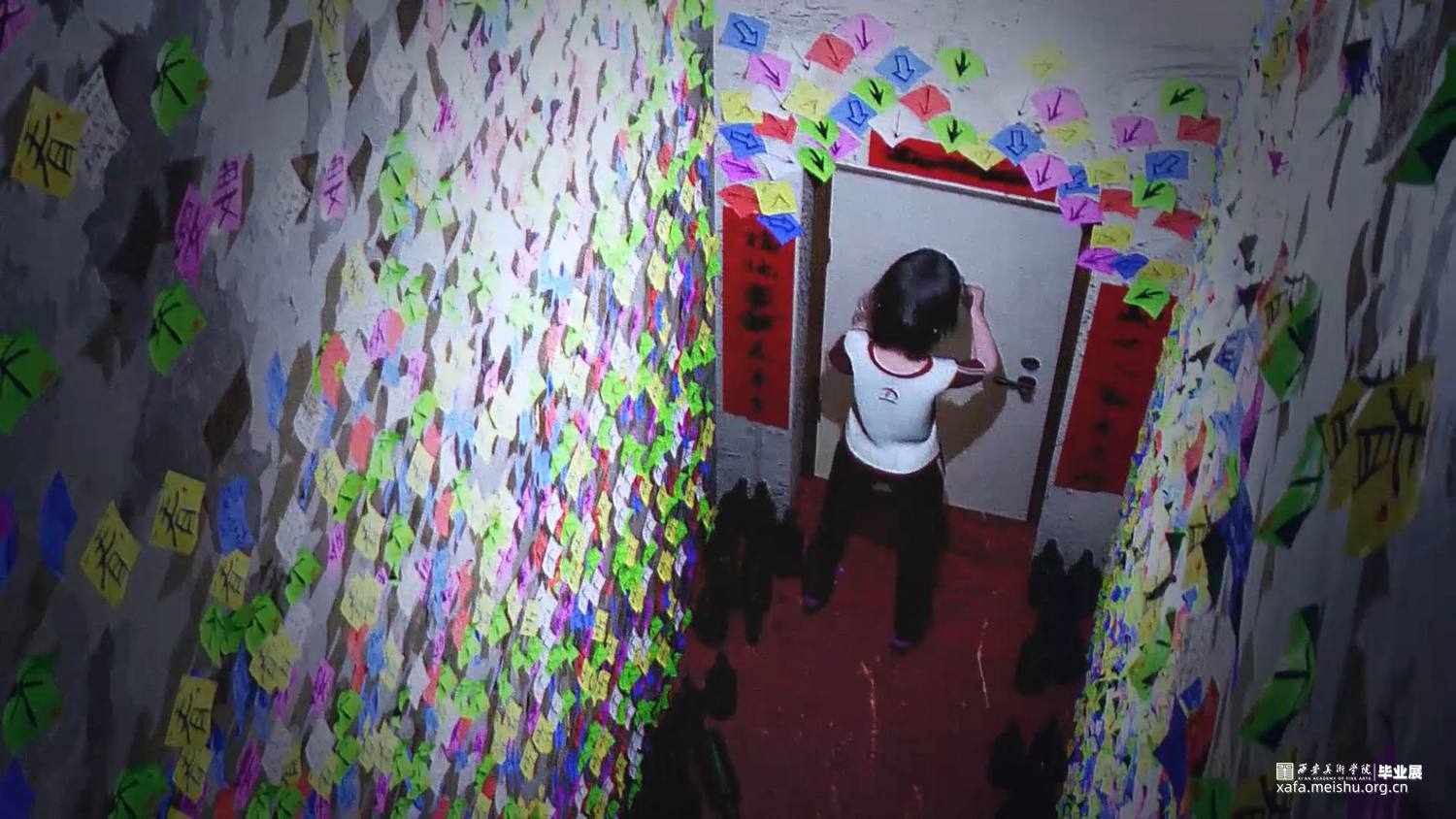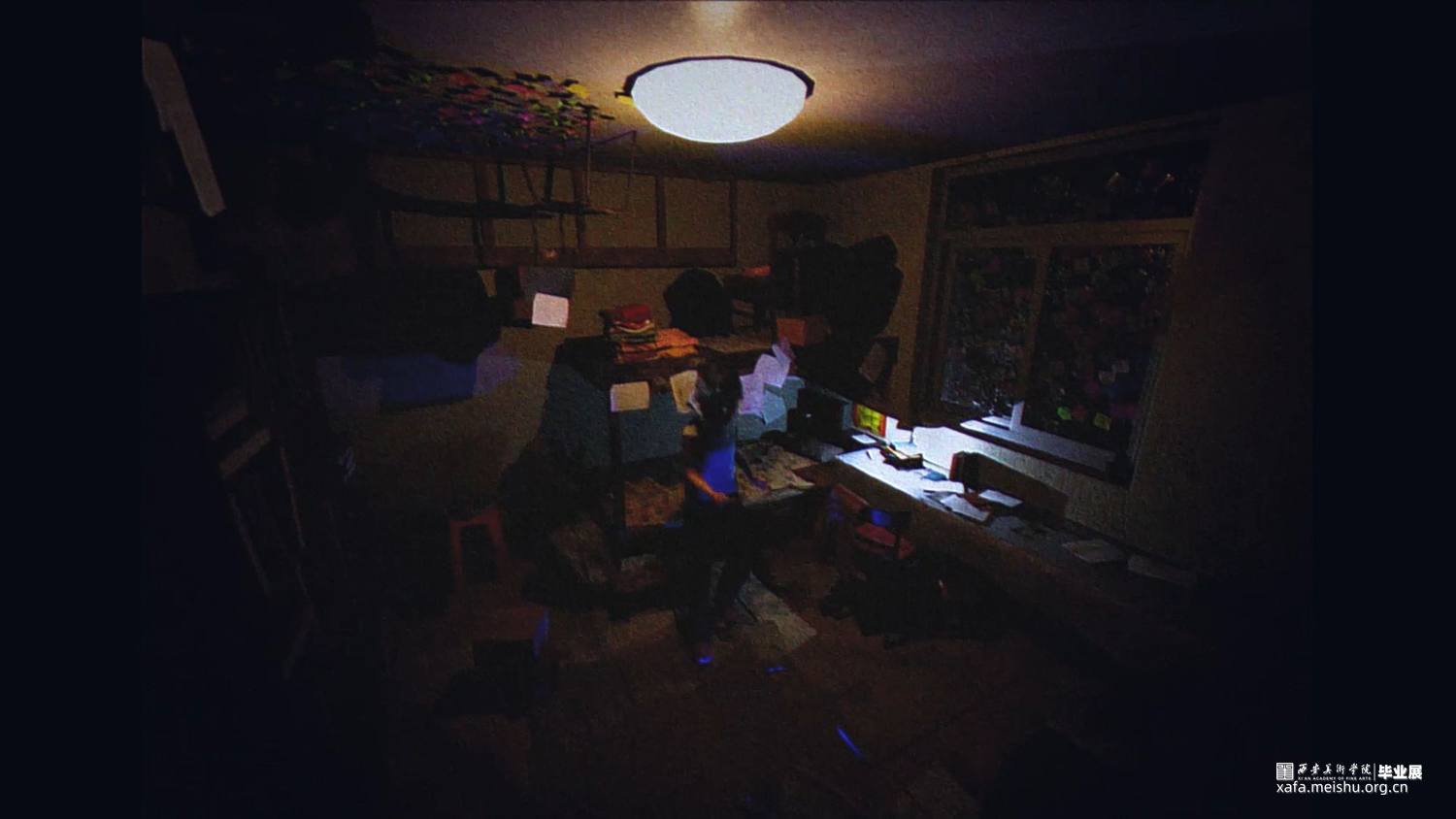 作品方案:该作品的空间映照的是人,空间的布置逻辑按照人物当时的情绪及感受进行呈现,其主题是围绕个人的“侵入性思维”来展开的。 影像中空间视觉的呈现效果虽然不符合现实生活的居住场所,停留在“我们自己、他人、人与人之间的联系和我们与空间的相互影响”这样一瞬间的想象中,这种现象可以用“侵入性思维”来解释。