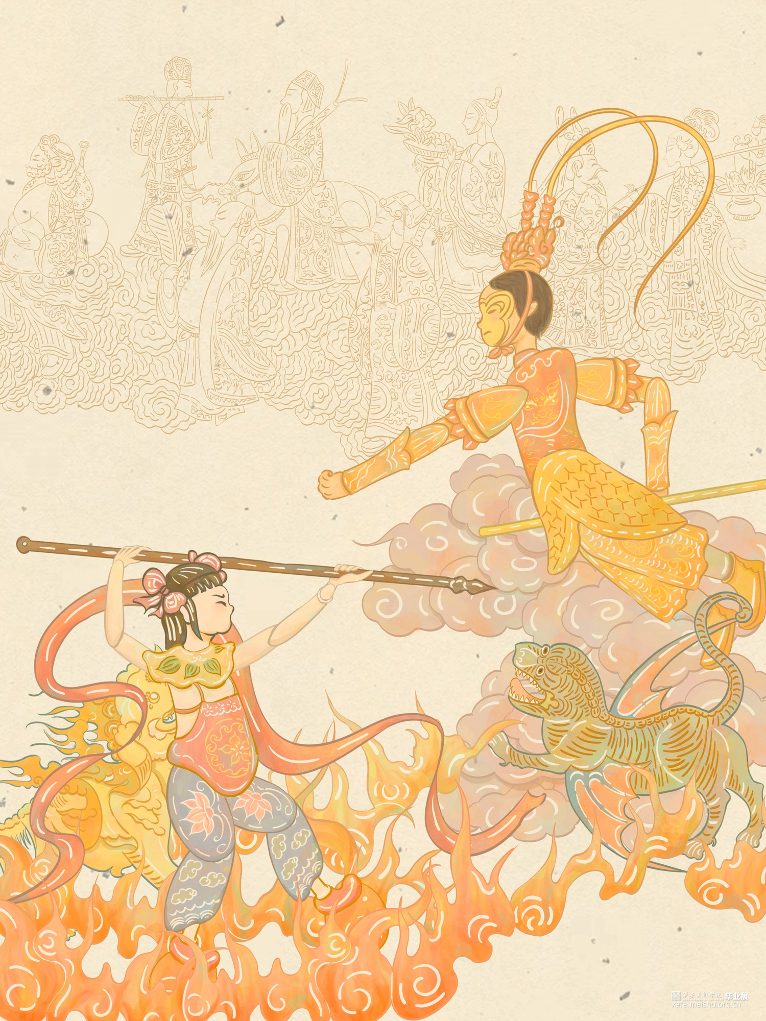作品的内容主要从舞龙舞狮、西安古乐、秦腔的《火焰驹》、《白蛇传》、《铡美案》、《拾黄金》等剧目、皮影的《西游记》、《哪吒》、《八仙过海》等剧目,结合中国传统纹样进行创作。作品主要运用了场景转折特效、粒子特效、3d运镜以及基本的动态效果。