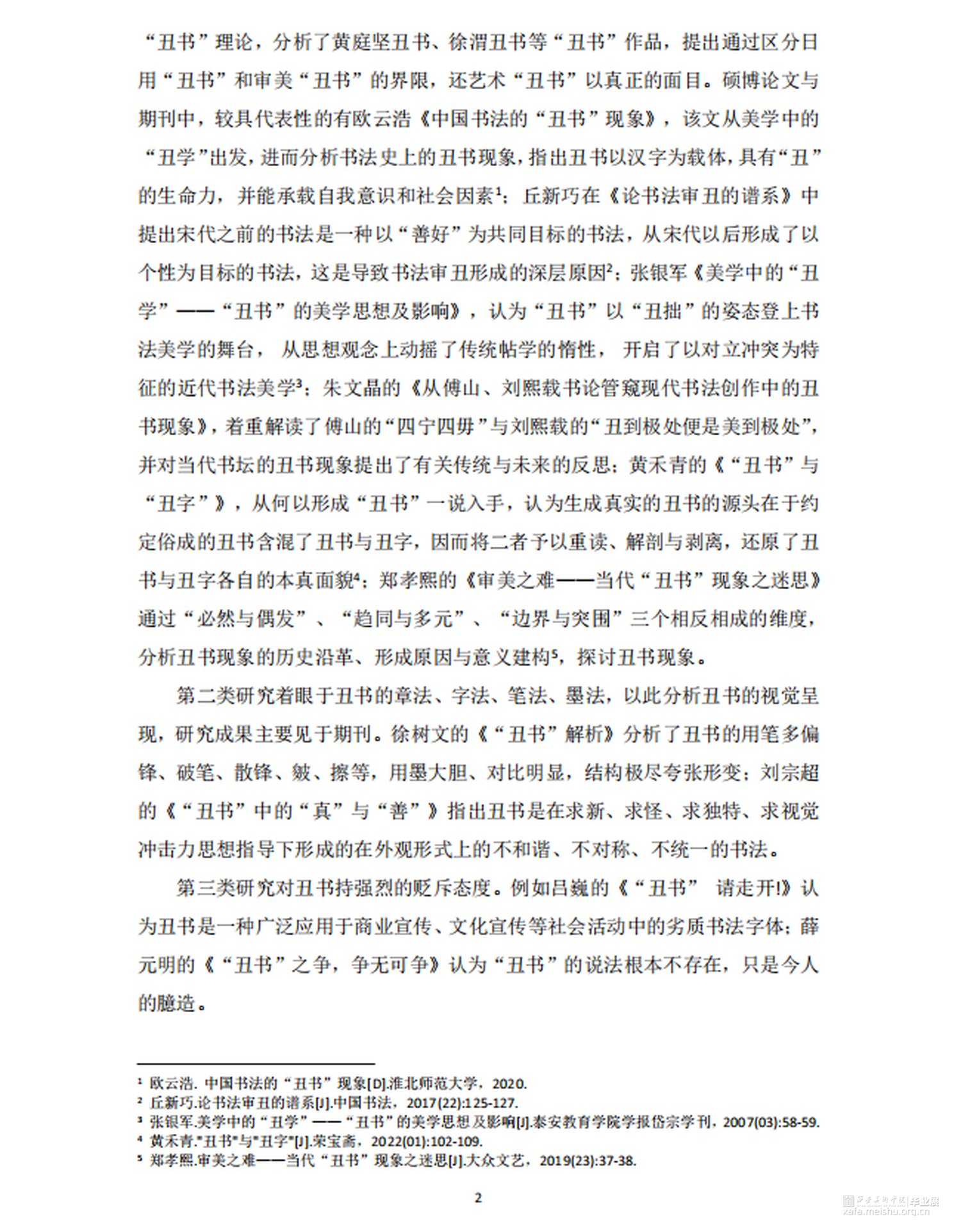 本文第一章从美学及艺术概念论起,预设丑书的概念为某一时期与