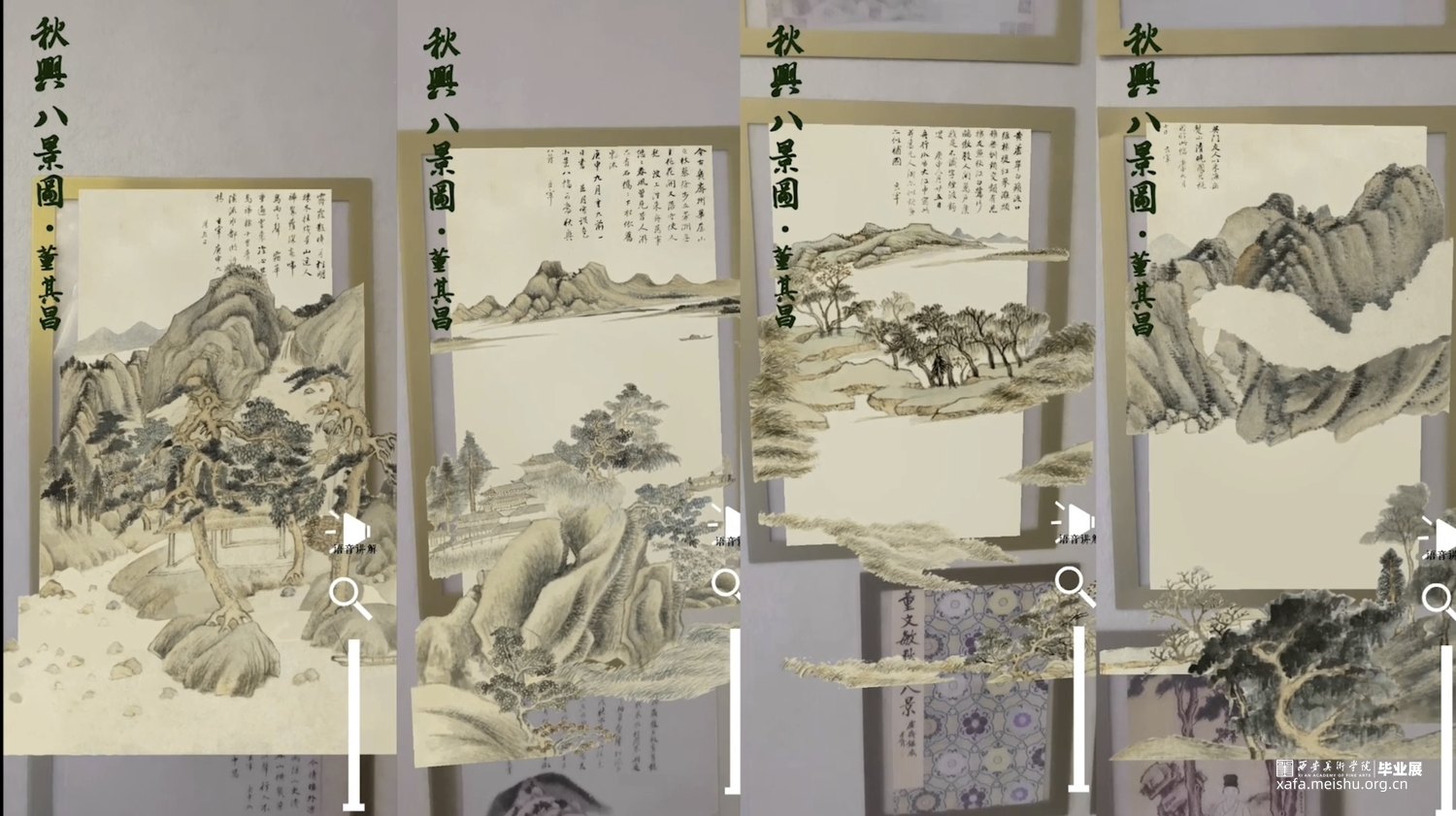 这款app是基于《秋兴八景图》动态古画的进一步开发,ar技术的运用大大提升了用户在古画浏览时的乐趣与互动感,更能让人身临其境,实现古画走进去的体验,随着移动设备的普及,这款app也能实现随时随地的使用,让古画浏览不受时间空间限制