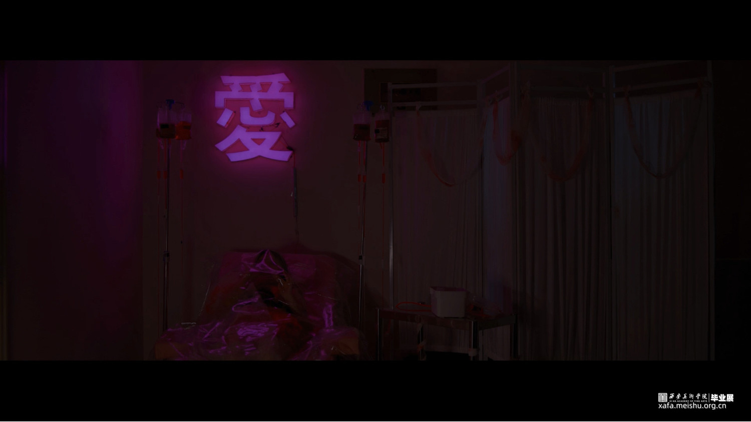 在2021年我经历了⼀段⾮常难忘的⼼理状态,我陷入一种自我厌恶、自我怀疑,像隔着⼀层透明的软塑料触摸世界。我时常会感到暴躁、焦虑,但平静下来我也会有阴郁、孤独的感受。我内心里的两种情绪她们反复碰撞,由药物和酒精的影响构成了许多个虚幻的梦境,最终梦中她们拥抱了彼此,我也拥抱接纳了我自己。在尝试了各种表现方法之后,我最终选择用影像的方式寻找和表达出我那时的内心世界。