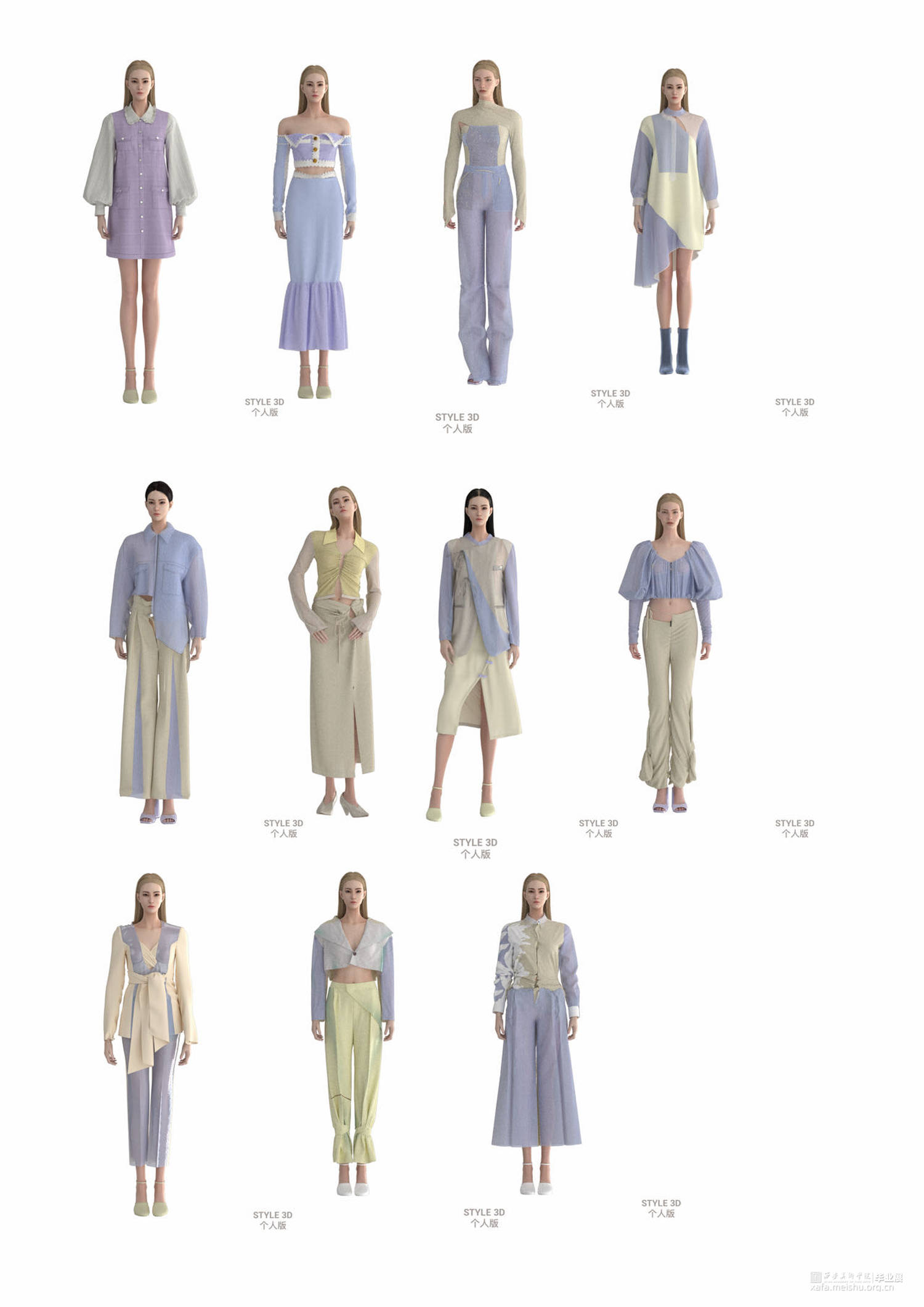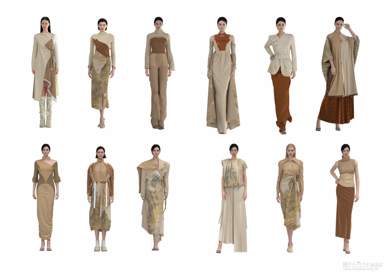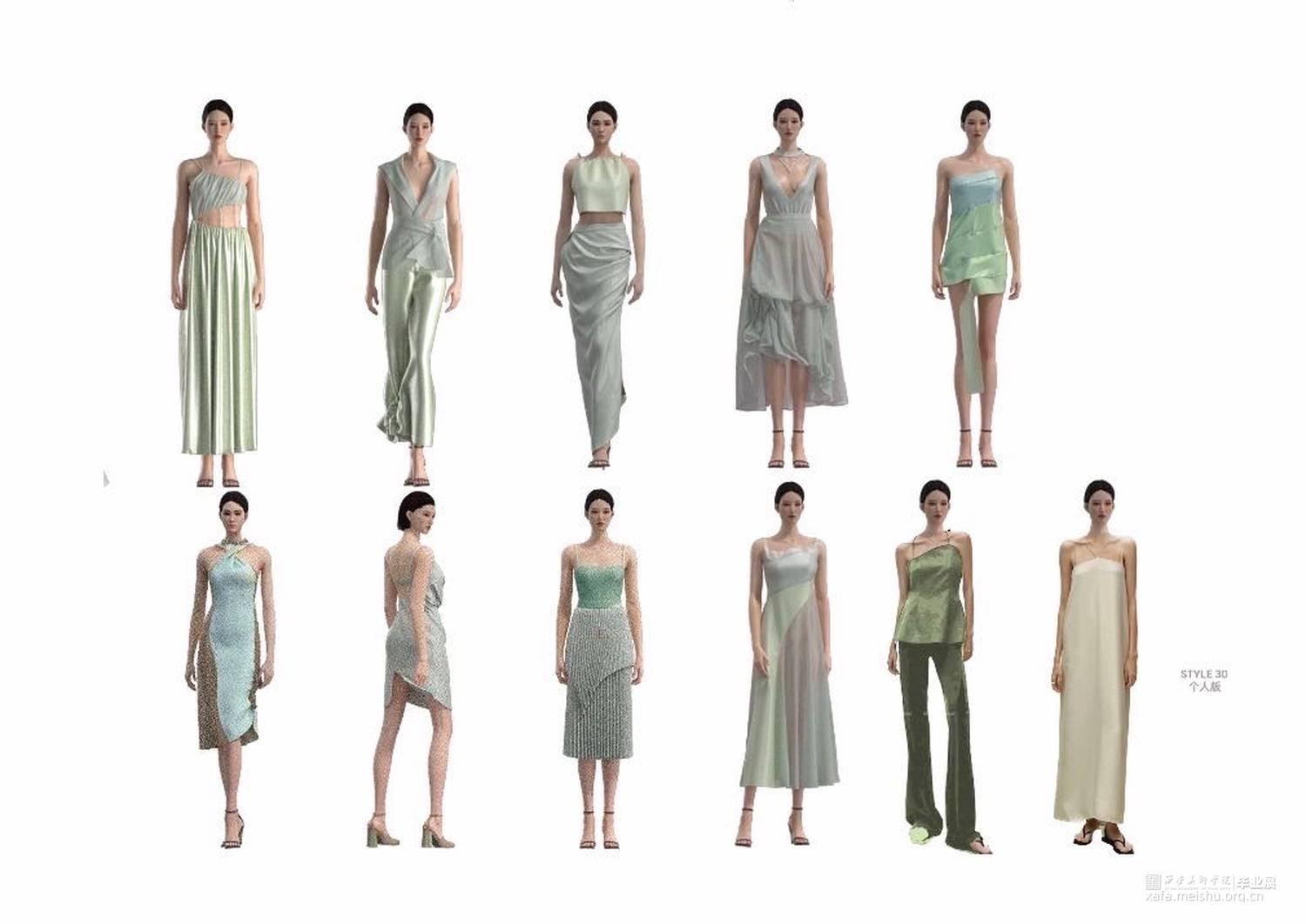 本作品采用3D建模渲染,虚拟拍摄,虚拟模特vr等技术。虚拟时装秀的主题是“自然之境”,探讨极简风格时装与自然的关系,并以虚拟时装秀的形式进行表达,使用大量的极限元素,如极简的线条,光滑的面料,柔软的织带,轻盈的薄纱,虚拟现实相结合,为观众带来一种简单又不失美感的艺术视觉体验。