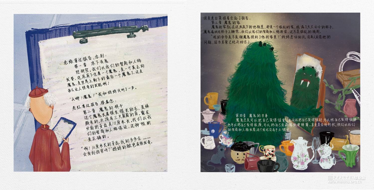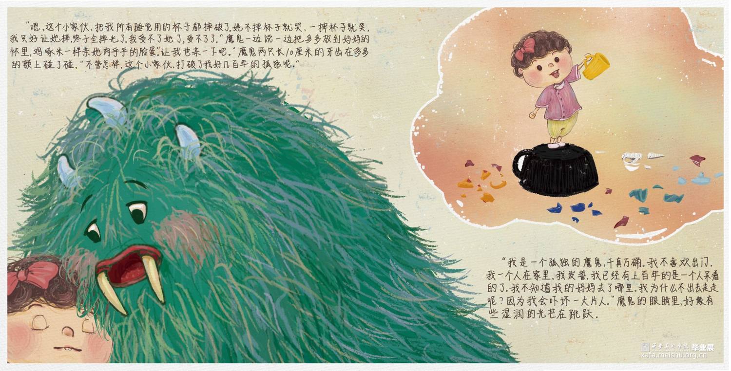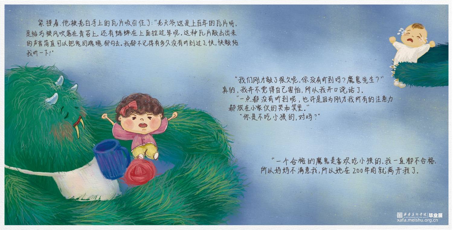 《最后一个魔鬼在雕花木床下》中的那个藏在雕花木床下的鬼,在捉鬼人的口中,似乎凶残可怕无比,喜欢吃孩子,尤其是刚满两岁的孩子。但其实,他是一个孤独而善良的鬼,他思念着自己的妈妈,他之所以在床底下独自一待上百年,不是因为他不爱热闹,而是因为他知道,他出去会吓坏一大片人。