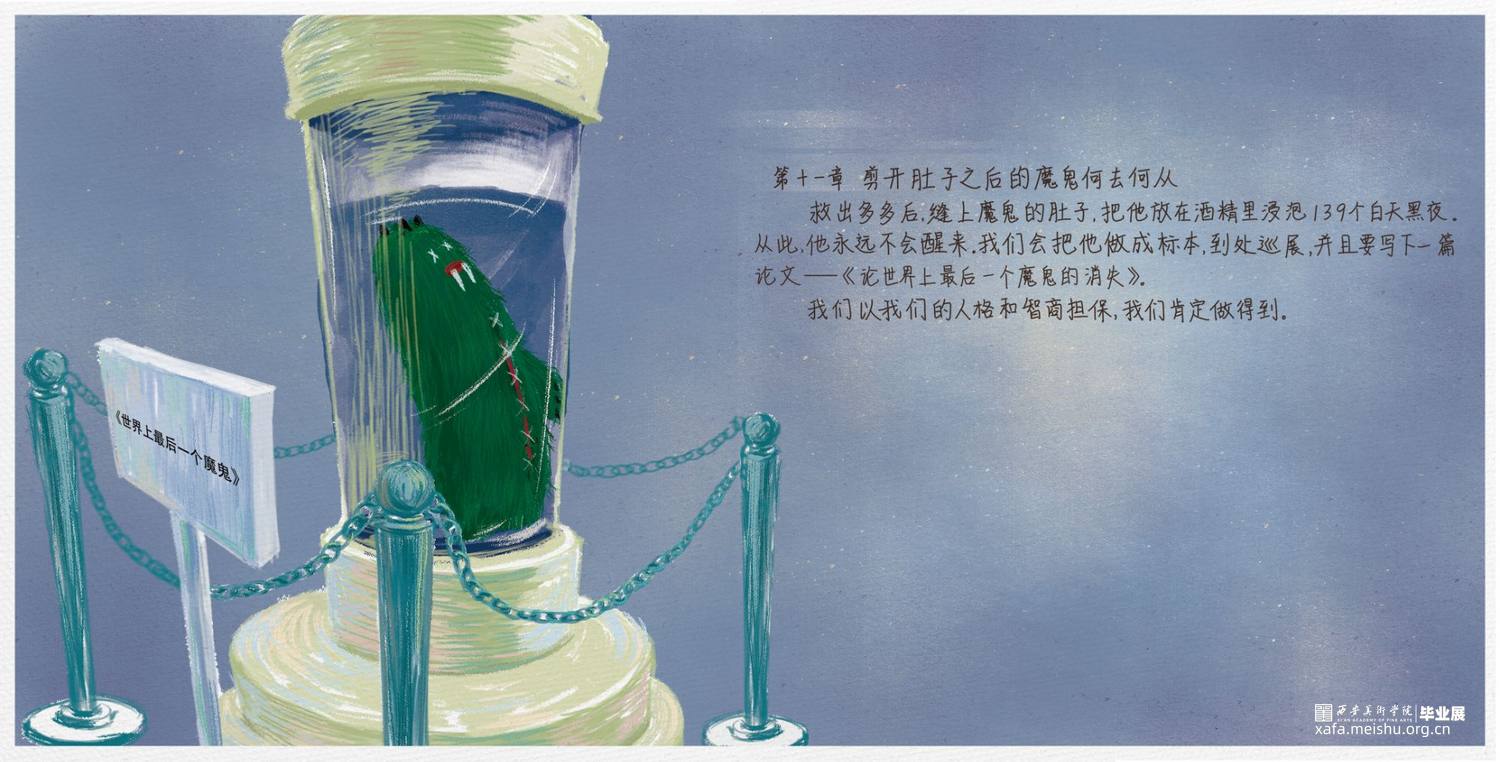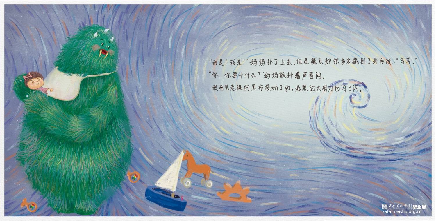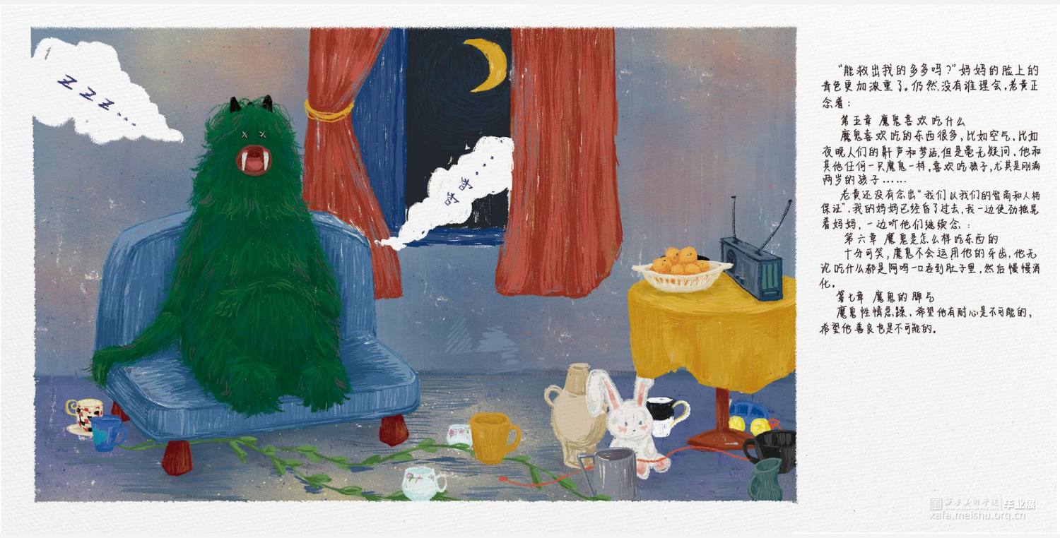 《最后一个魔鬼在雕花木床下》中的那个藏在雕花木床下的鬼,在捉鬼人的口中,似乎凶残可怕无比,喜欢吃孩子,尤其是刚满两岁的孩子。但其实,他是一个孤独而善良的鬼,他思念着自己的妈妈,他之所以在床底下独自一待上百年,不是因为他不爱热闹,而是因为他知道,他出去会吓坏一大片人。