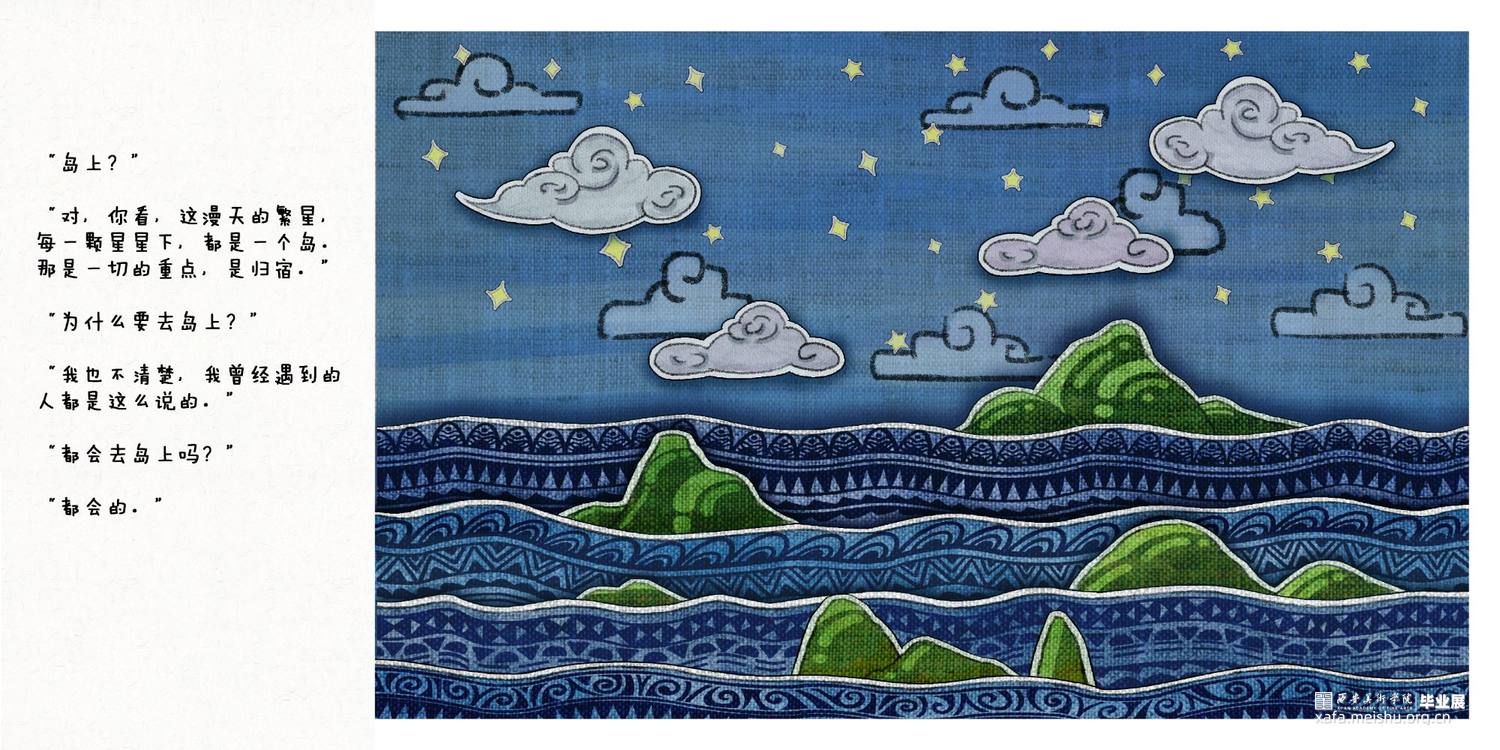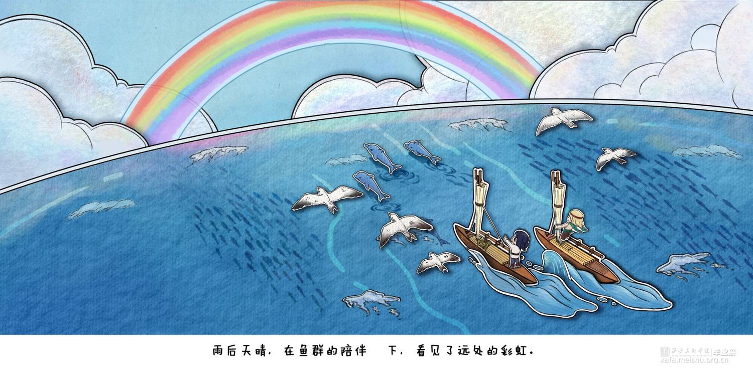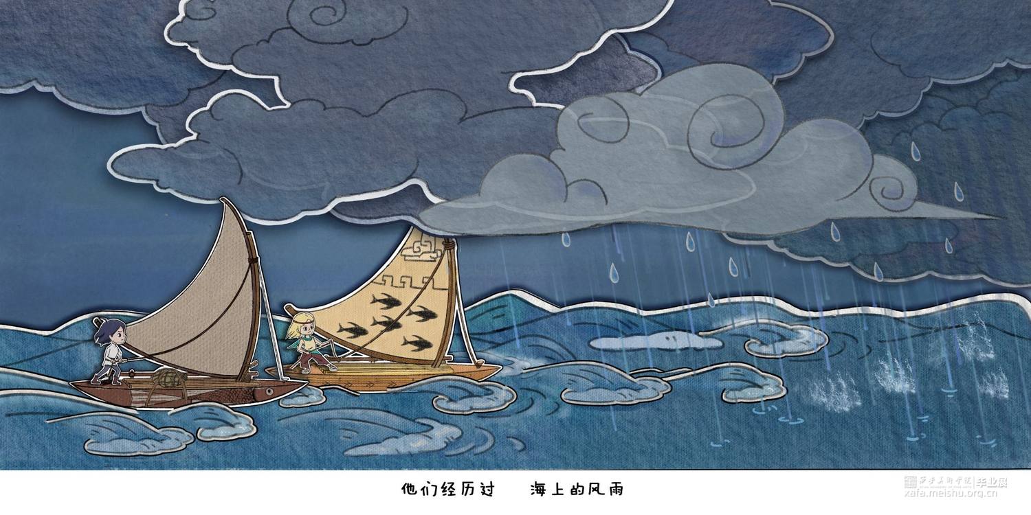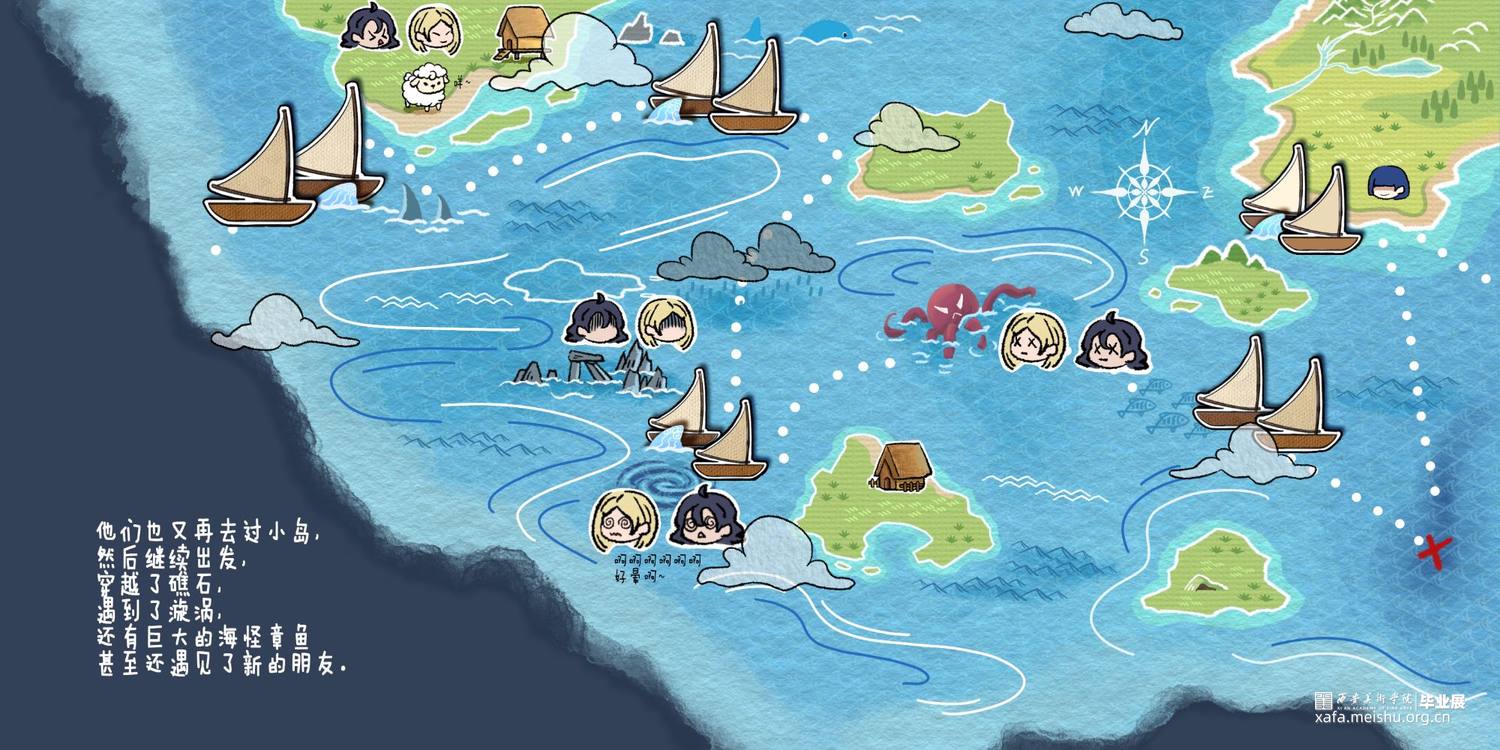 创作这样一个故事其实是源于我的生活,在我的生活中,我是一个比较没有主见的人,除了学美术以外,很多事情是被人推着走的,在故事中,浪象征着身边的长辈,他们对我很好,在我迷茫的时候给我方向,帮助我认识更多的事物。但当我的未来正在迷茫,却又不想马上安定下来时。他们会说教我,指责我,让我感觉身边的环境像海浪一样异常汹涌。