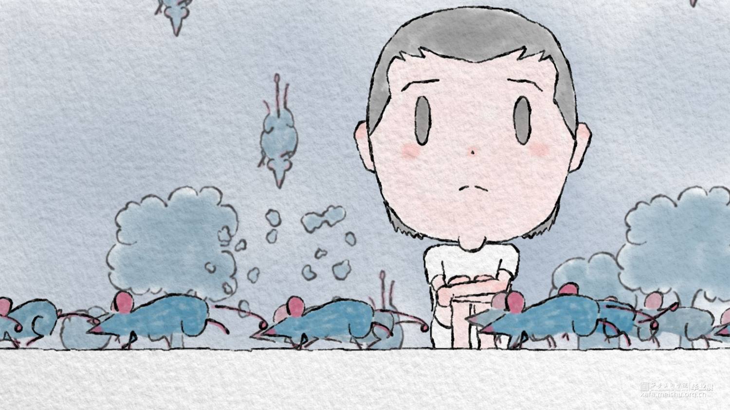 “鼠辈”在这里有两层意思,一是指老鼠,二是指无足轻重的人。这部作品讲的是一个无足轻重的人与老鼠的故事,其实更多的是在说人,那个人可以是你,也可以是我,正如他的英文标题“somebody”——某人。大学四年与人交往的过程中我才真正逐渐深刻地认识到我们每个人都是独立的个体,自己与他人之间本身并没有什么太多的差异。在魔都实习的地方离我住的地方特别远,上下班的地铁一直是人挤人,而同样的两个地点,共享单车总是在需要的时候两两三三,而在不需要的时候堆的满满的,我想到的别人也能想得到,我需要的别人也同样需要,我要做的别人也同样会做,那我所感受到的别人是否也有同样的感受呢?我一个普通大学生,并没有太多的人生经验,以我的经历所做的创作并不足以代表一个时代,但作为时代的一粒沙,我想传达一下沙堆的声音,即便我们在广袤的土地上,看上去那么不起眼。