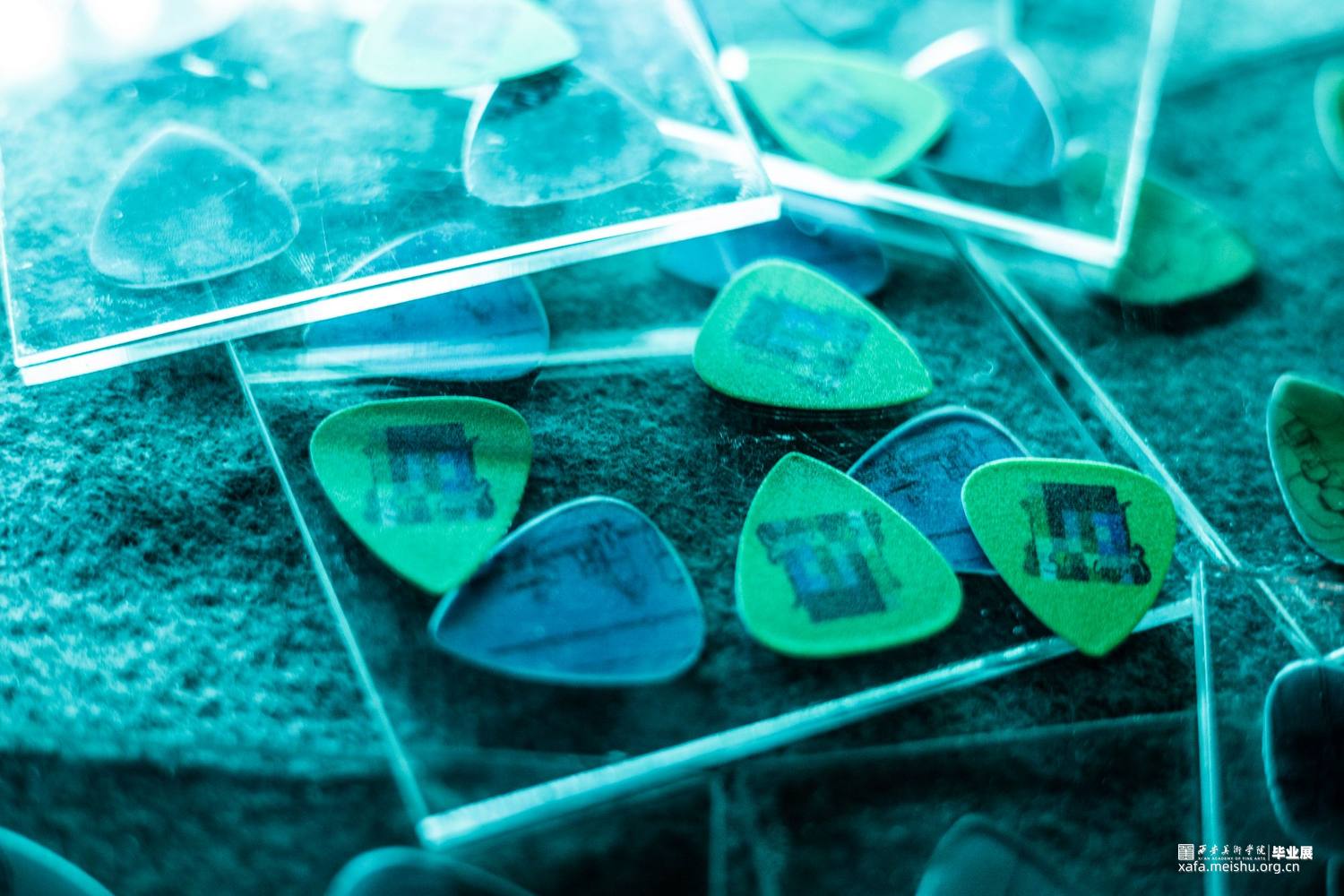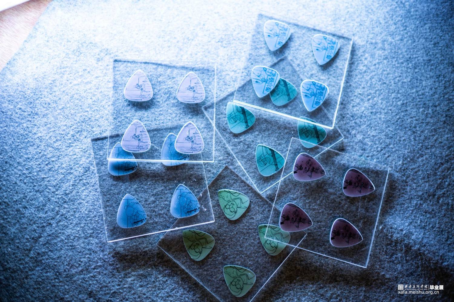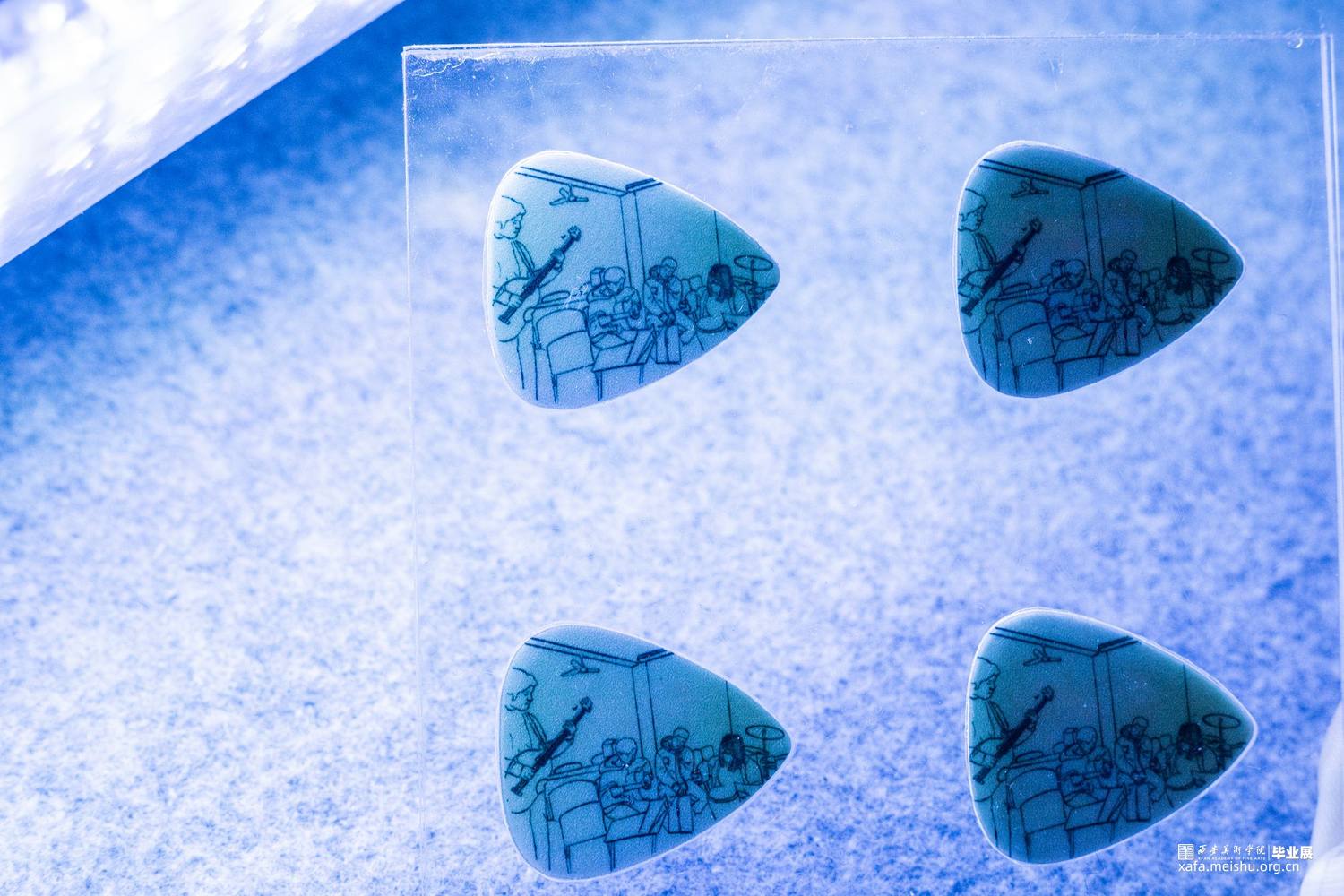 该创作灵感主要源于我的bilibili账号“异数家乐队”中所投稿的部分音乐作品,并参照了唱片专辑封面的表现效果,与吉他手常用的吉他拨片相结合,最终呈现出该系列作品。作品命名以我的乐队名为来源,主要描绘歌曲的第一帧画面,并以ipad新媒体绘画、手工设计产品图案和模具等方式加以呈现。