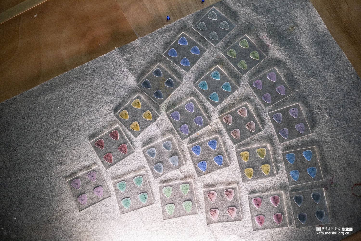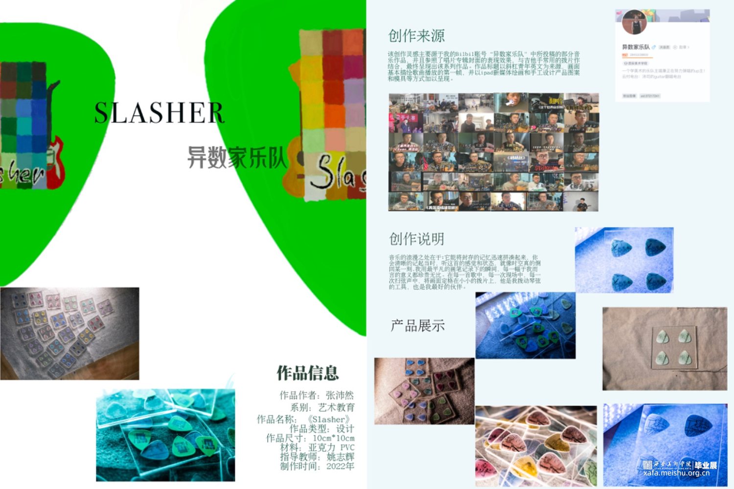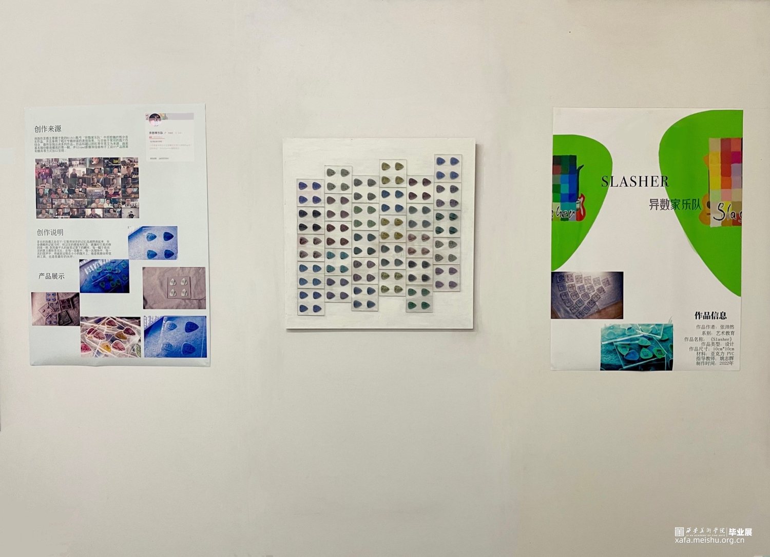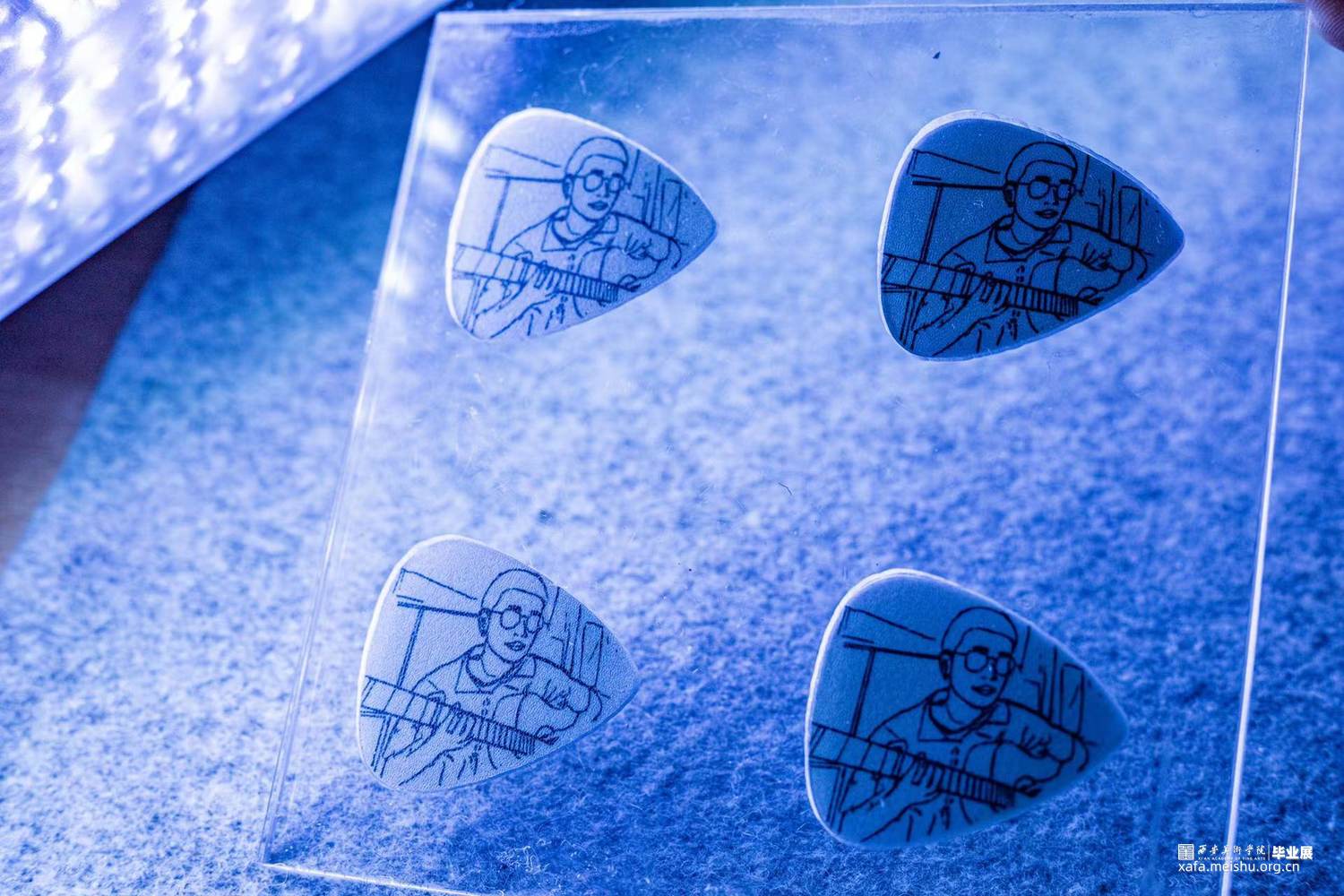 该创作灵感主要源于我的bilibili账号“异数家乐队”中所投稿的部分音乐作品,并参照了唱片专辑封面的表现效果,与吉他手常用的吉他拨片相结合,最终呈现出该系列作品。作品命名以我的乐队名为来源,主要描绘歌曲的第一帧画面,并以ipad新媒体绘画、手工设计产品图案和模具等方式加以呈现。