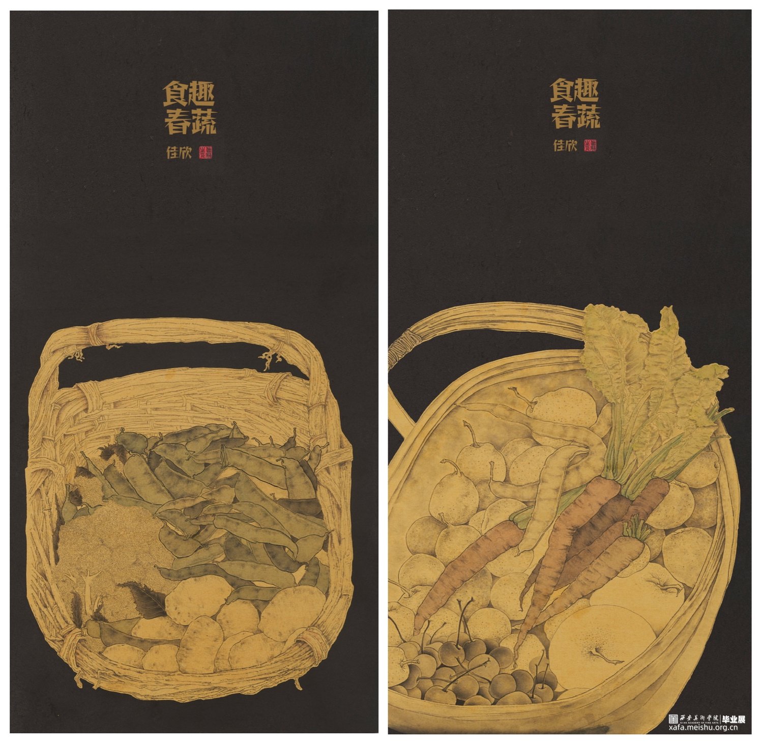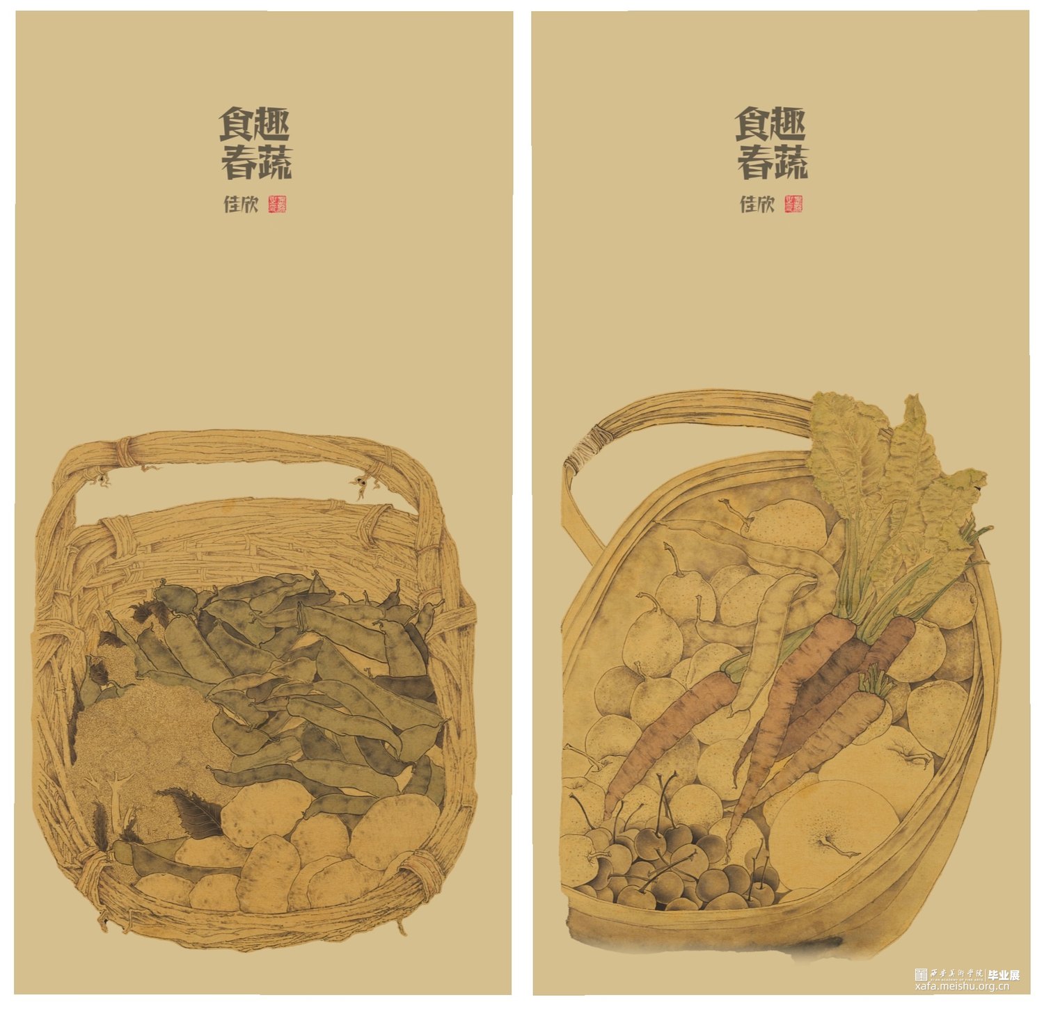 《食趣.春蔬》以生活中常见的果蔬为题材,借鉴当代蔬果工笔画的技法创新与审美意境,将当代语境下蔬果工笔画的理论研究与实际创作相结合,探究客观生活意象所表现出的丰富的精神内涵,表达出蔬果题材绘画贴近生活、朴素自然的艺术风格。