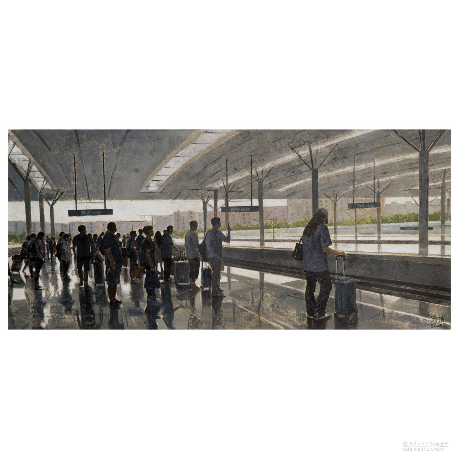 初夏时节,宽敞而繁忙的高铁站里,人们来来往往。月台上,人们静静地等待着即将进站的列车。这幅作品描述的是初夏、暖风,偌大的高铁站和即将踏上旅途的我。我想传递一种充满期待和渴望的情感,想展现旅途的魅力和意义。人们的眼神中闪烁着希望的光芒,他们或许是旅行者,或许是迎接亲友,都怀揣着对未来的憧憬和对新奇事物的渴望。希望观者可以沉浸于这个独特的高铁站场景中,感受到旅行带来的喜悦和无限可能。我希望或许会引发观者对旅行和未知世界的一点点思考。希望呈现了初夏旅途的美妙氛围,以及人们在这个特殊时刻所拥有的情感和期待。