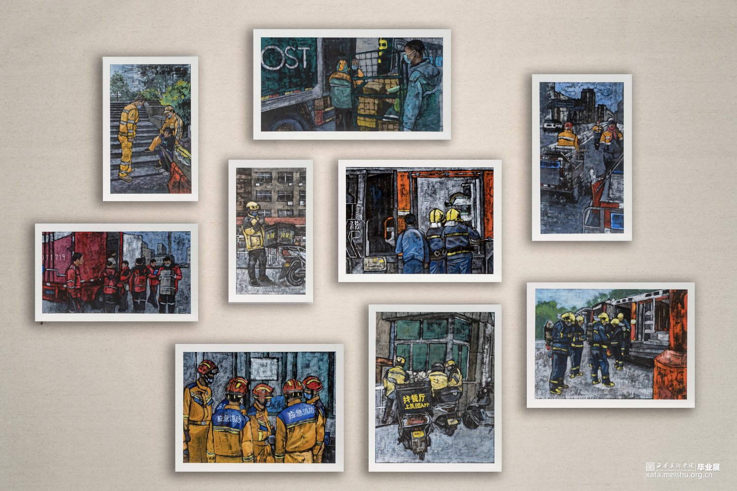 宗卓悦《平凡者札记》系列作品于2022年11-12月选题完成,2023年1-2月搜集素材,3月进行构图素描稿色稿绘制,4月中旬正式开始正稿绘制,5月中旬绘制完毕并进行作品装裱。
