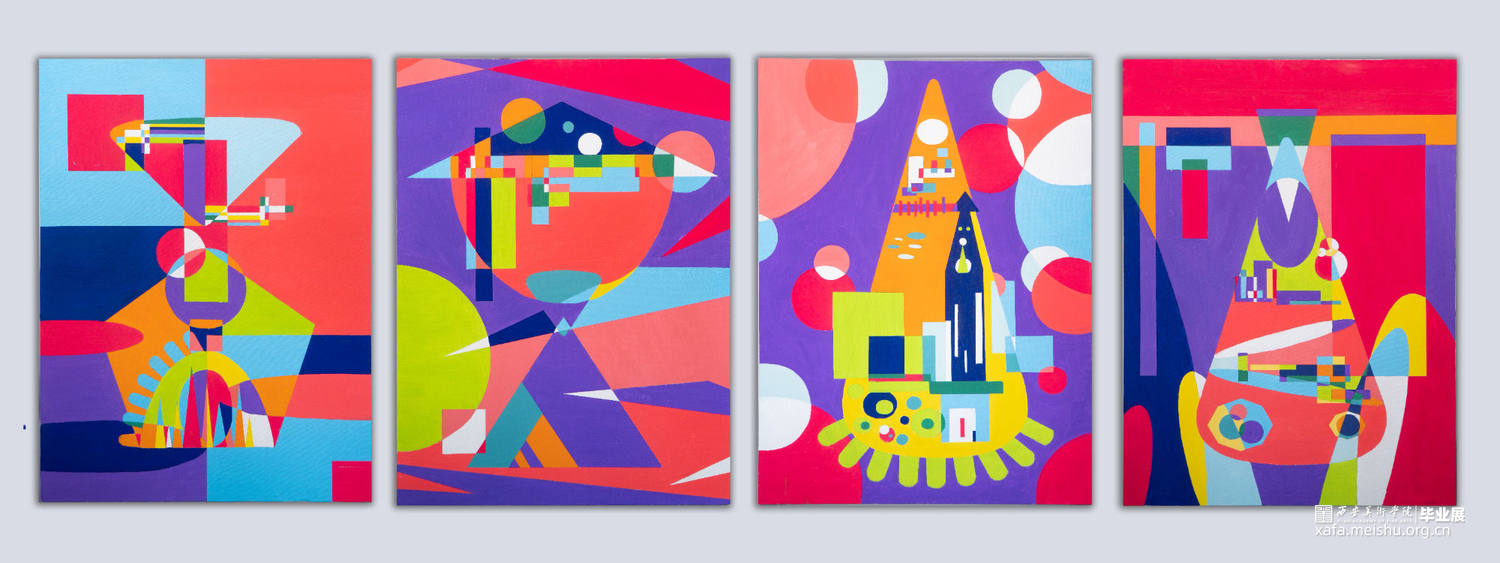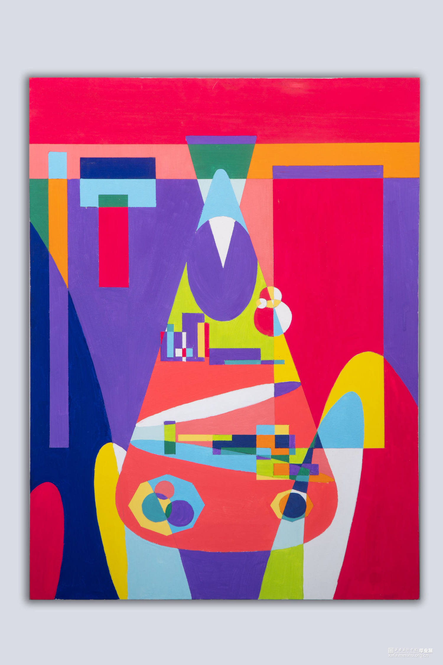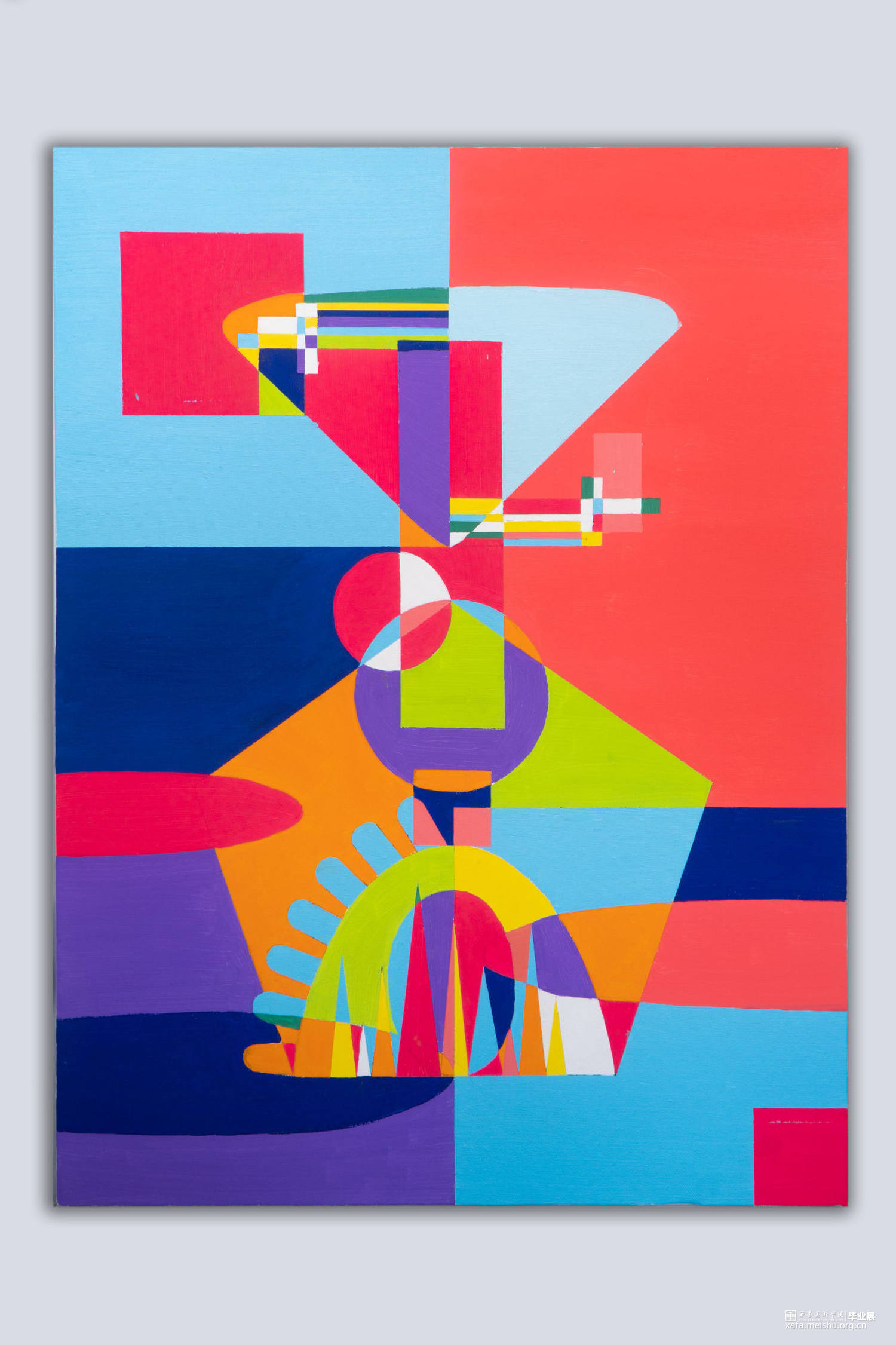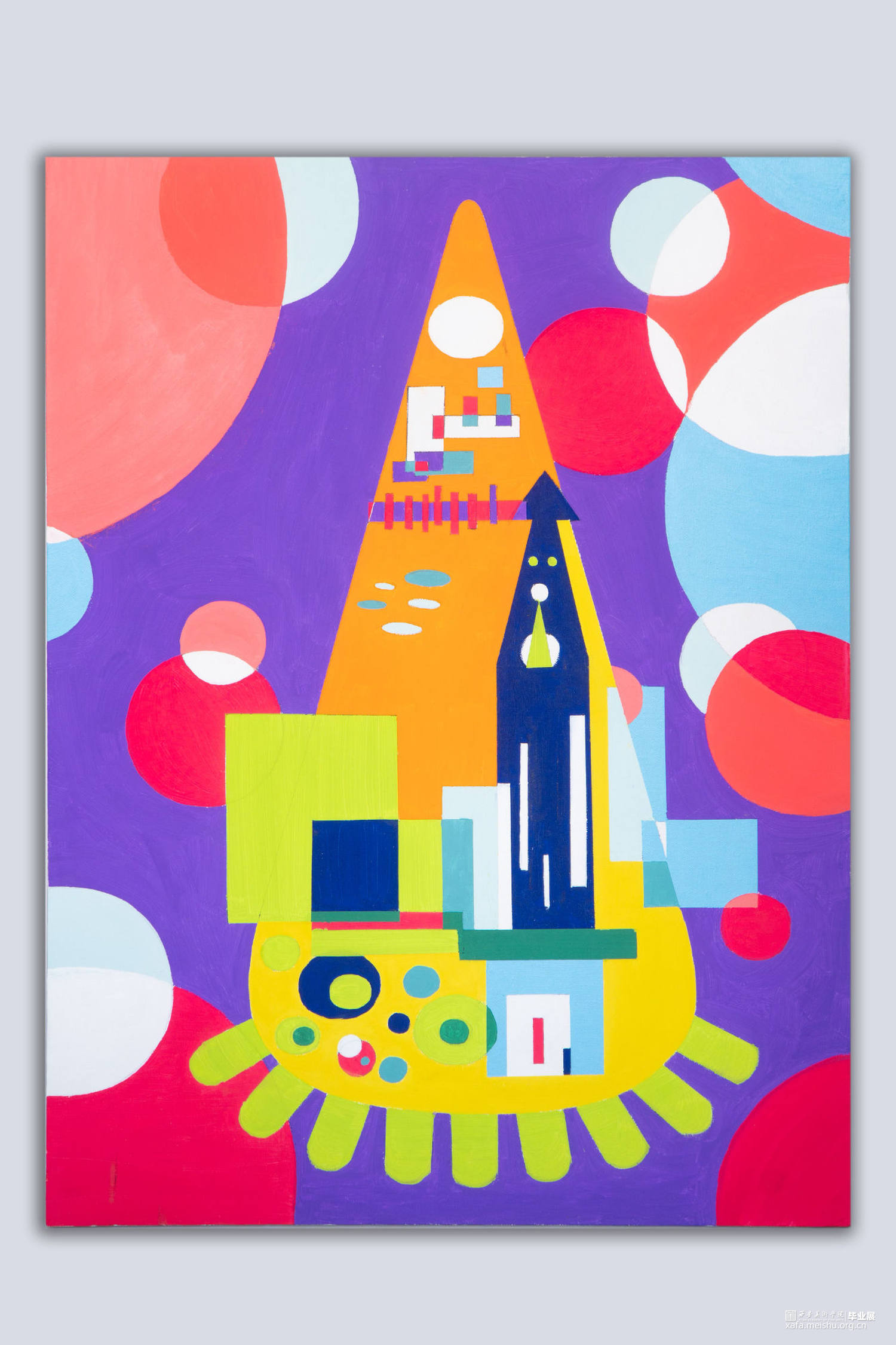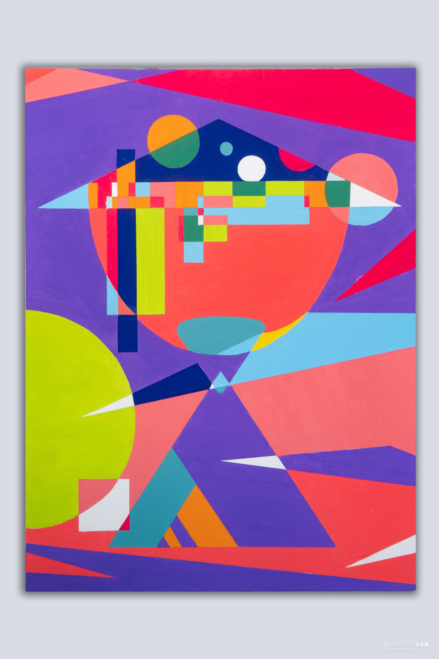 常住地靠近海边,所以一直都想创作有关海洋的系列作品。创作初衷是想把熟悉的海洋生物装进形状各异的瓶子里,前期画了对应的偏具象一点黑白稿,而后在其基础上对画出来的形象进行几何化处理,用电脑多次试验,定下了终稿。