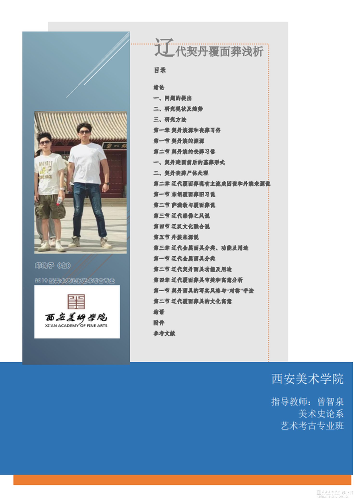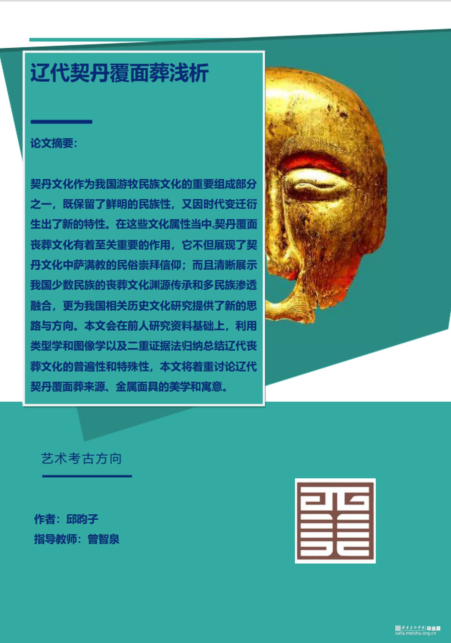 契丹文化作为我国游牧民族文化的重要组成部分之一,既保留了鲜明的民族性,又因时代变迁衍生出了新的特性。但对此方向研究成果不多且大多时间久远,研究空间依然很大。本人对内蒙古多数博物馆进行过参观和调研并对其中出展率较高的辽代契丹覆面葬面具有很大兴趣。基于文物证据较多且真实性较强使得本人认为此研究价值达到可行水平。