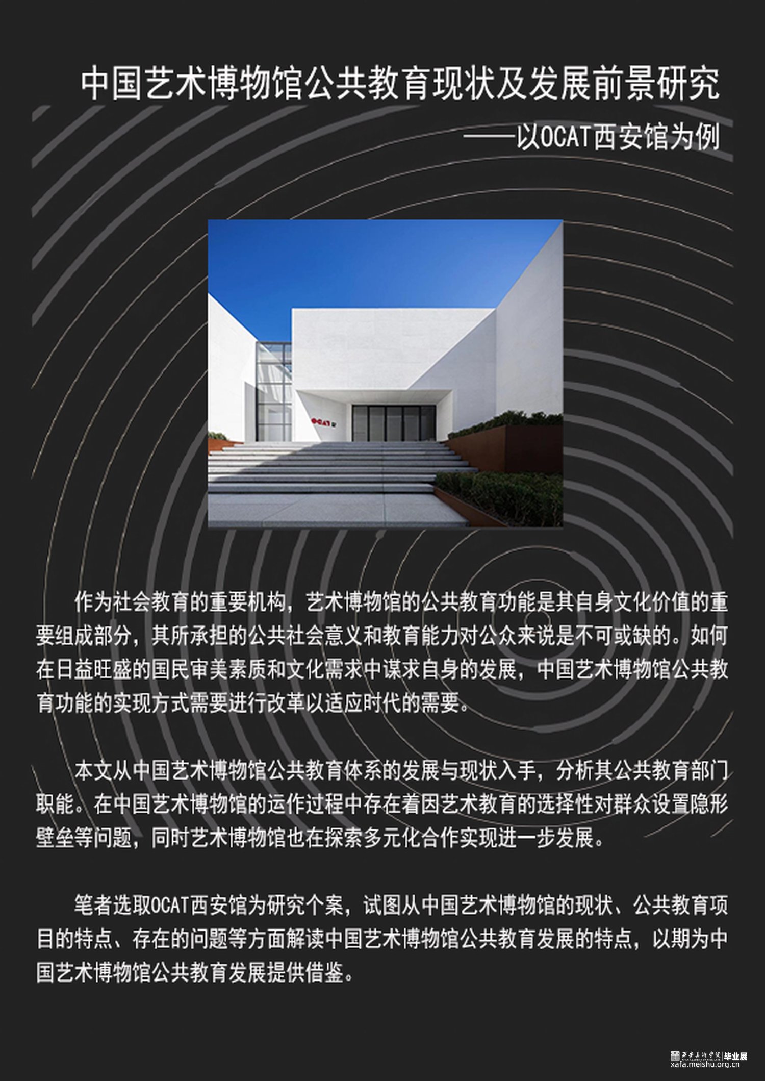 作为社会教育的重要机构,艺术博物馆的公共教育功能是其自身文化价值的重要组成部分,其所承担的公共社会意义和教育能力对公众来说是不可或缺的。如何在日益旺盛的国民审美素质和文化需求中谋求自身的发展,中国艺术博物馆公共教育功能的实现方式需要进行改革以适应时代的需要。