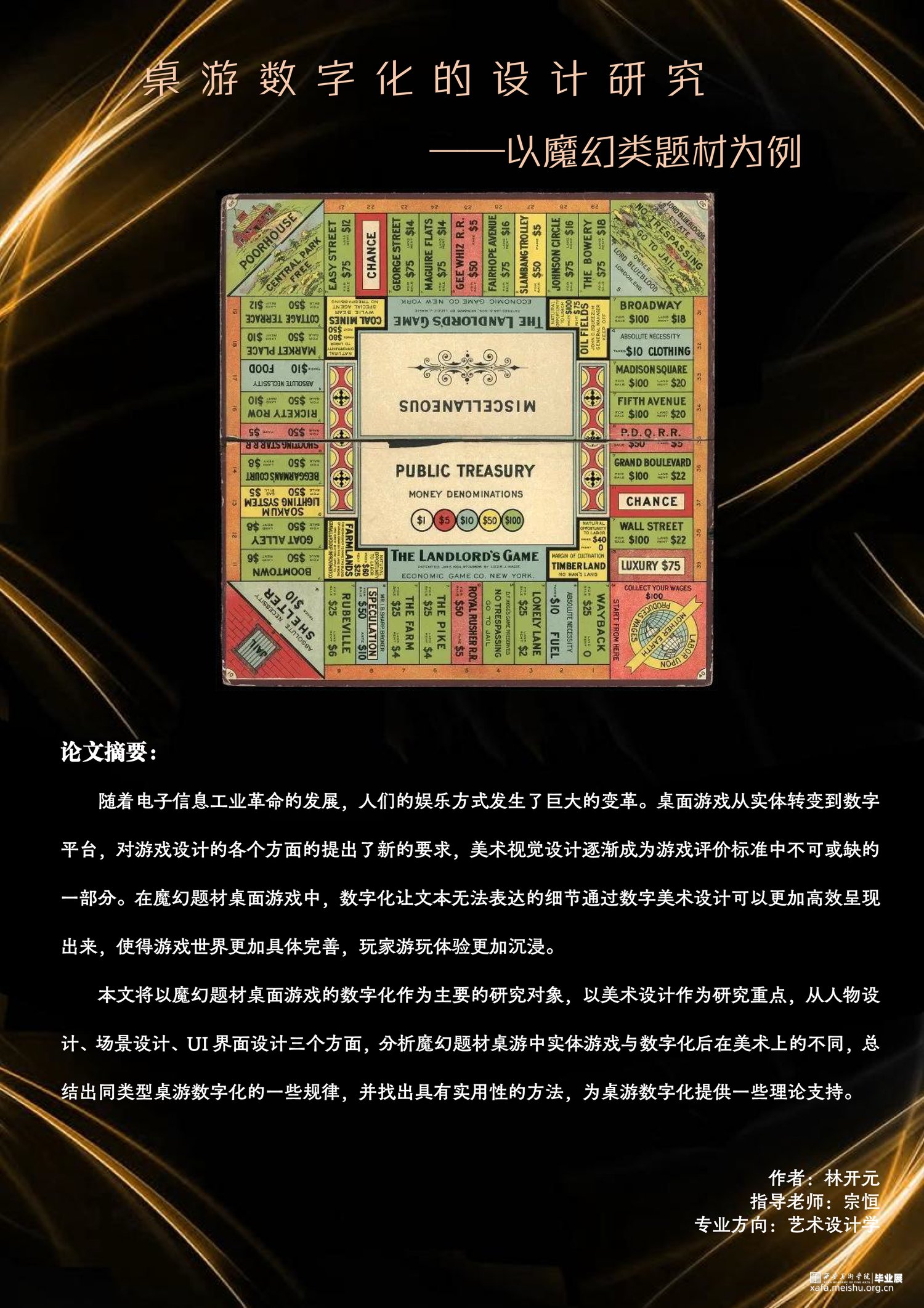 本文将以魔幻题材桌面游戏的数字化作为主要的研究对象,以美术设计作为研究重点,从人物设计、场景设计、UI界面设计三个方面,分析魔幻题材桌游中实体游戏与数字化后在美术上的不同,总结出同类型桌游数字化的一些规律,并找出具有实用性的方法,为桌游数字化提供一些理论支持。