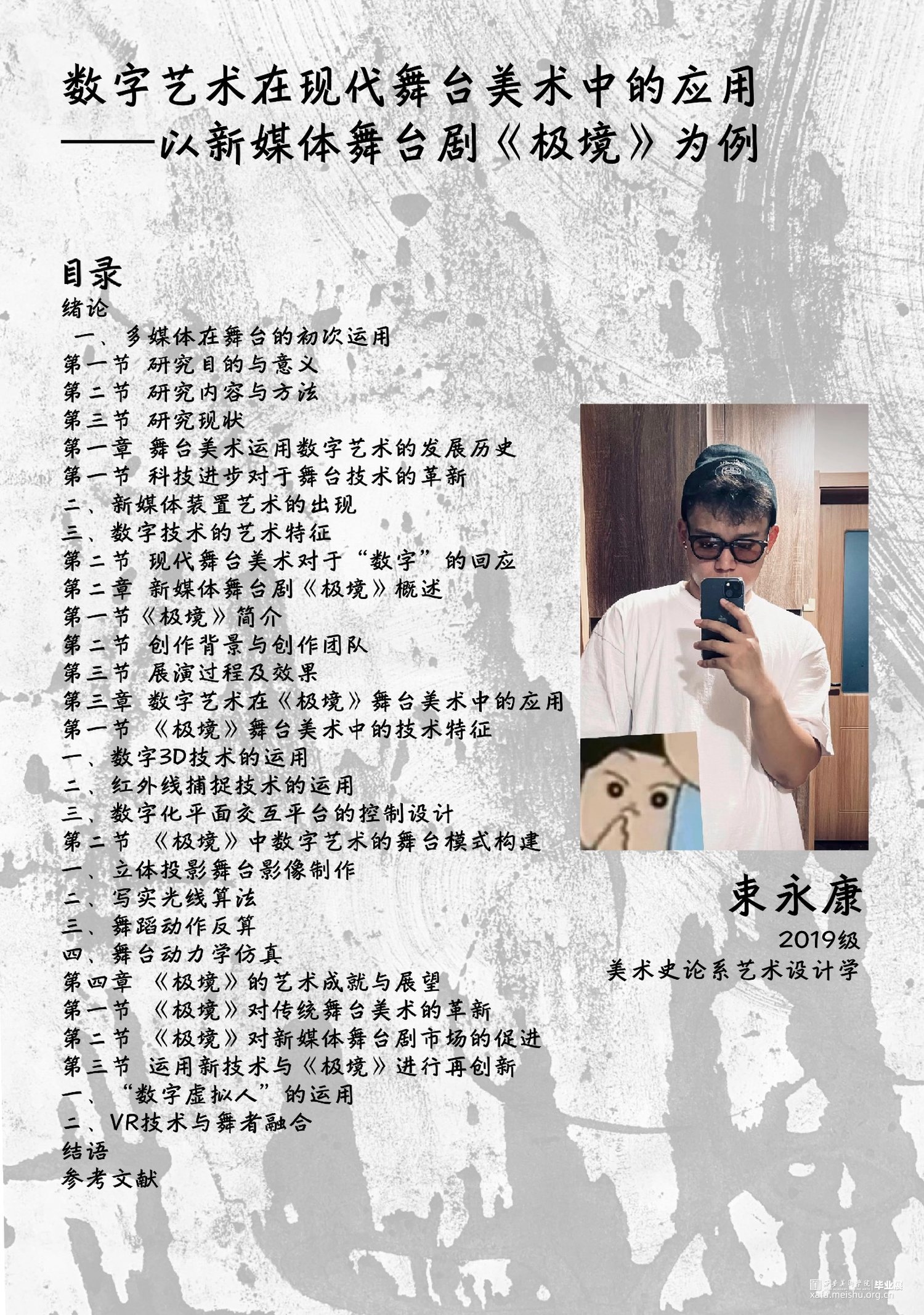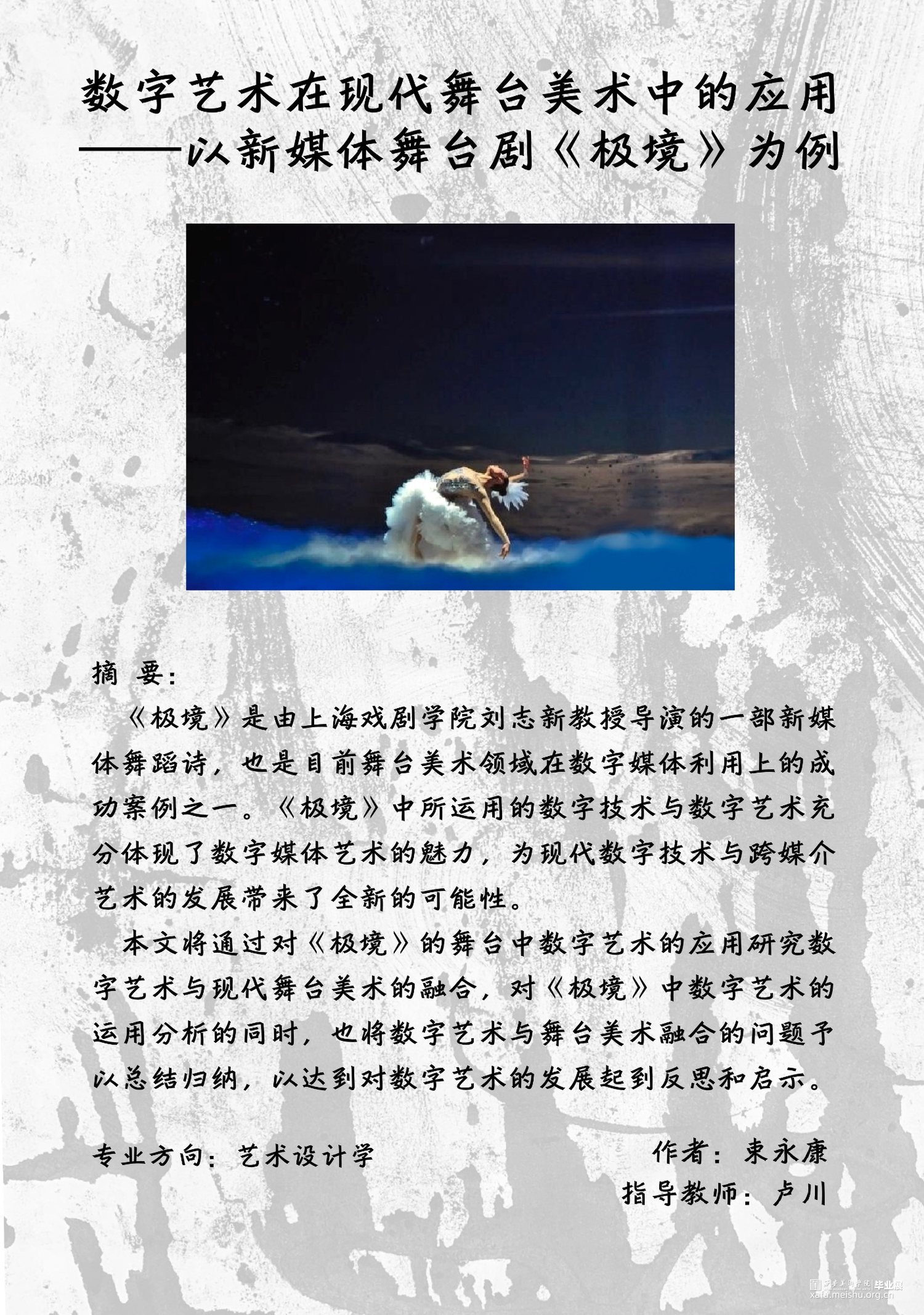 本文将通过对《极境》的舞台中数字艺术的应用研究数字艺术与现代舞台美术的融合,对《极境》中数字艺术的运用分析的同时,也将数字艺术与舞台美术融合的问题予以总结归纳,以达到对数字艺术的发展起到反思和启示。
