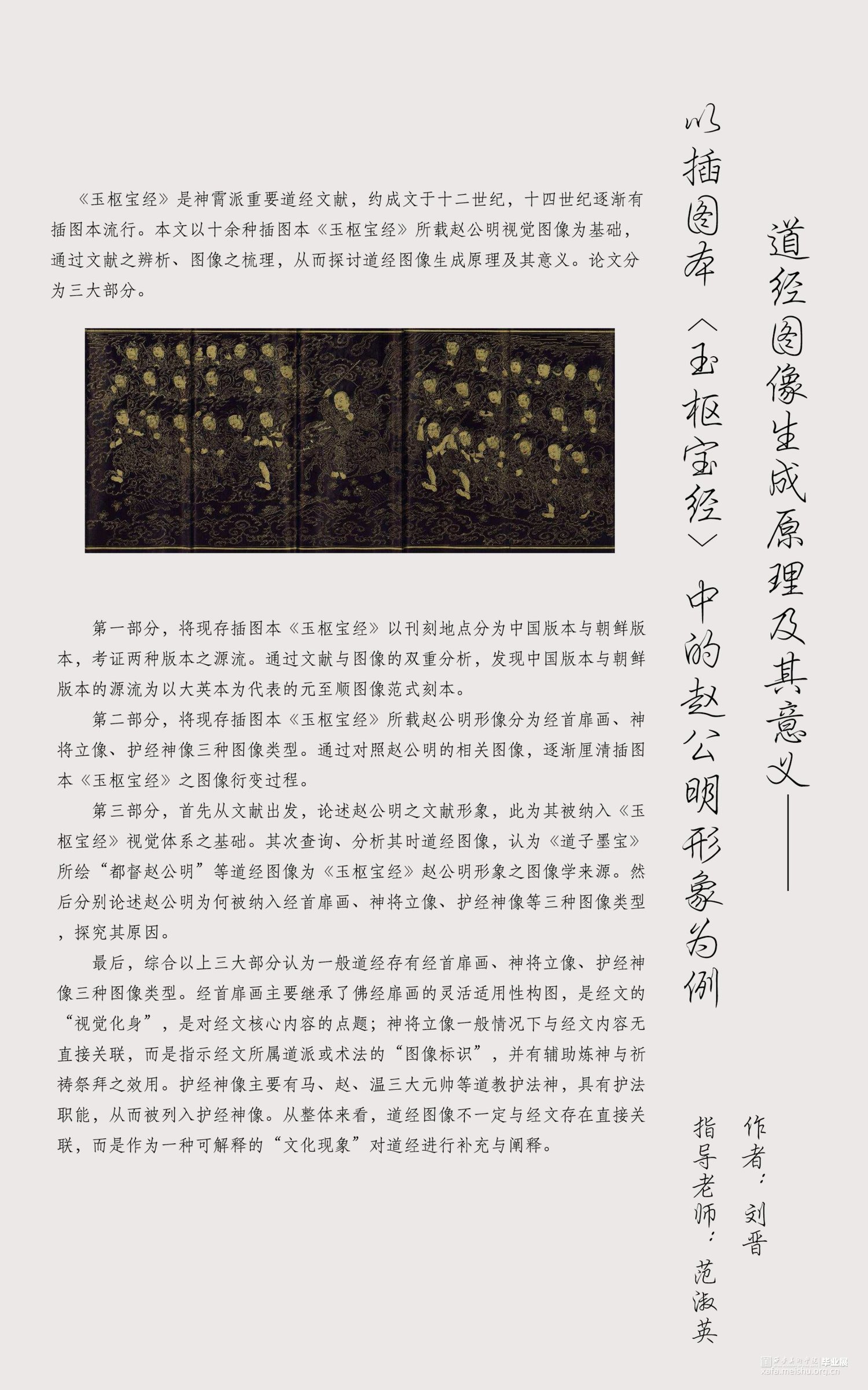 第一部分,将现存插图本《玉枢宝经》以刊刻地点分为中国版本与朝鲜版本,考证两种版本之源流。通过文献与图像的双重分析,发现中国版本与朝鲜版本的源流为以大英本为代表的元至顺图像范式刻本。