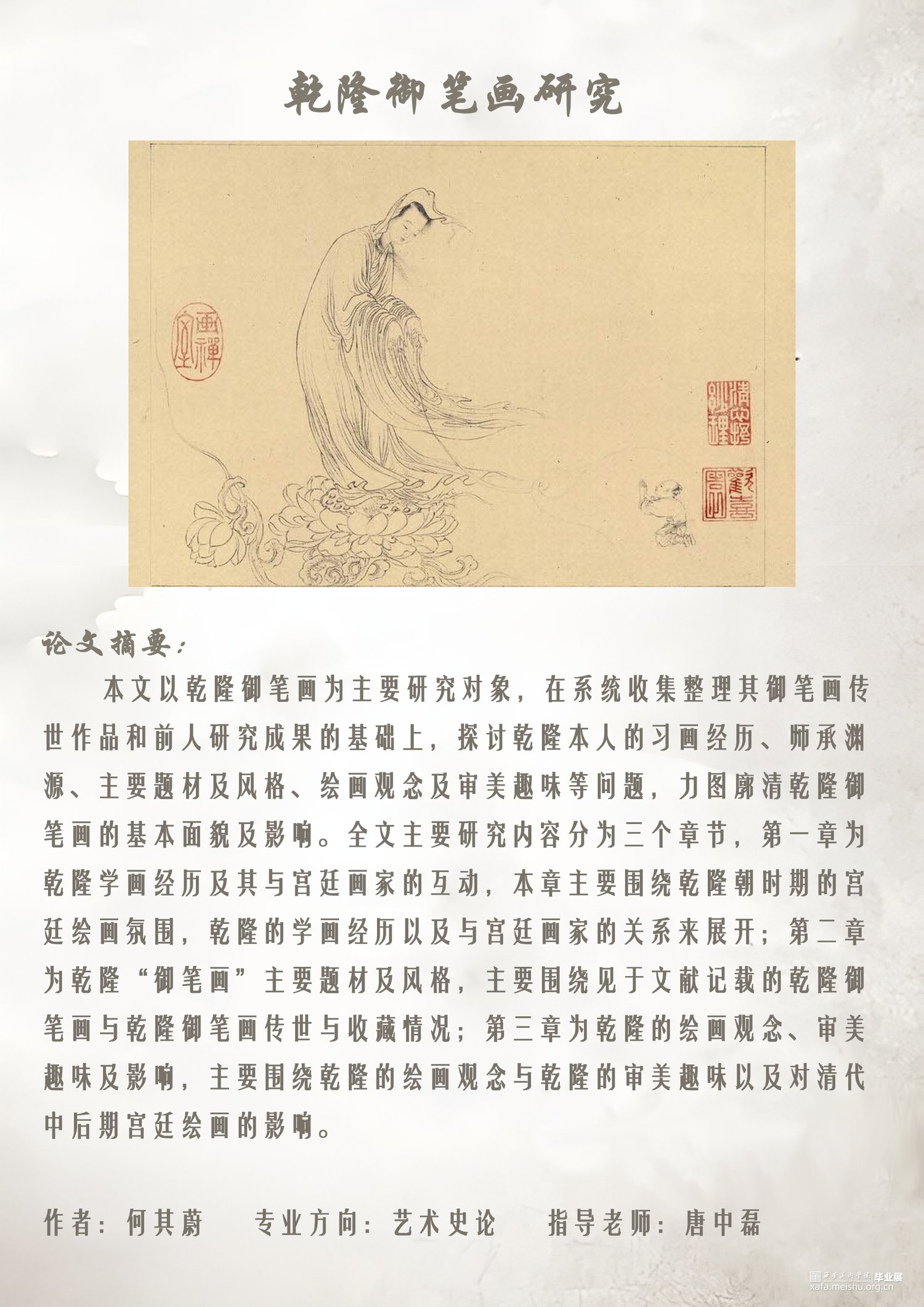 乾隆皇帝一生致力于艺术收藏与鉴赏,其收藏、鉴赏活动以及其个人审美趣味对清代中后期的绘画尤其是宫廷绘画的走向产生了重大影响。但值得注意的是他在推动清宫收藏与鉴赏活动的同时,也直接从事绘画创作,并留下了为数不少的“御笔画”。本文以乾隆御笔画为主要研究对象,在系统收集整理其御笔画传世作品和前人研究成果的基础上,探讨乾隆本人的习画经历、师承渊源、主要题材及风格、绘画观念及审美趣味等问题,力图廓清乾隆御笔画的基本面貌及影响。全文主要研究内容分为三个章节,第一章为乾隆学画经历及其与宫廷画家的互动,本章主要围绕乾隆朝时