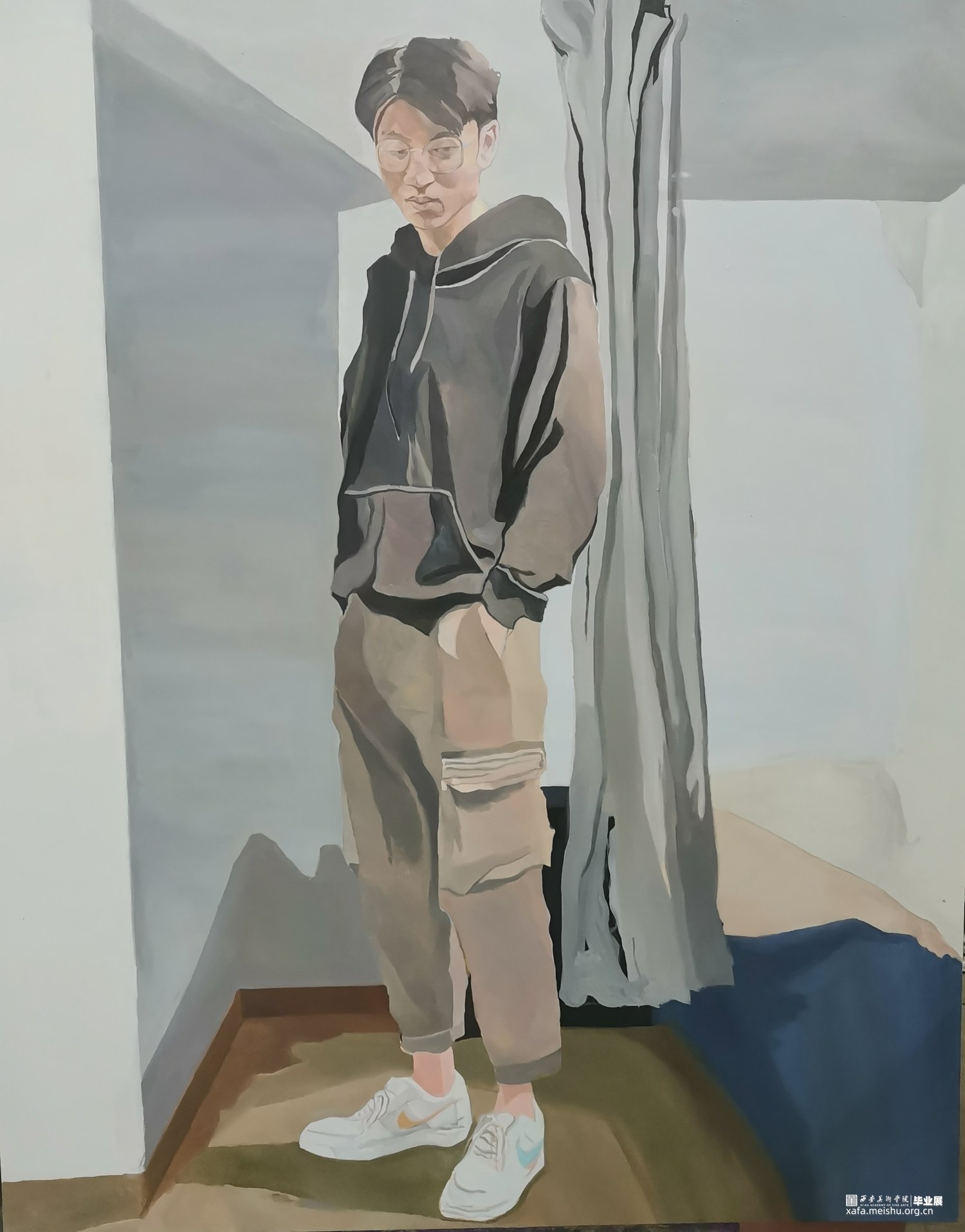 作品《忧郁的边缘带》主要是以我自己表达我同学他自己的内在感受。当时由于快毕业了他的