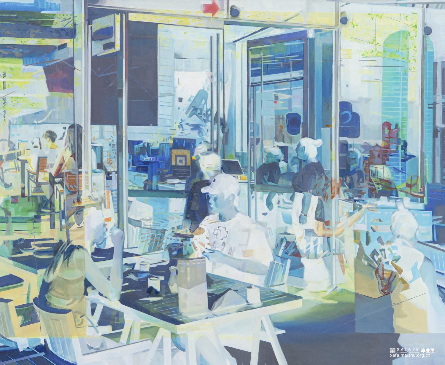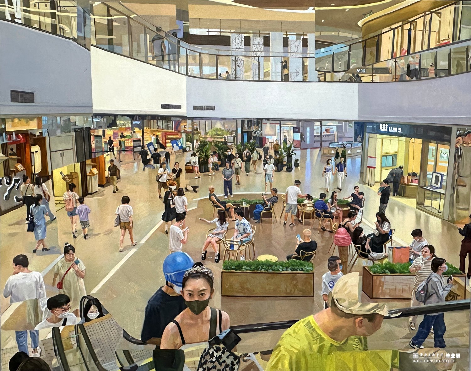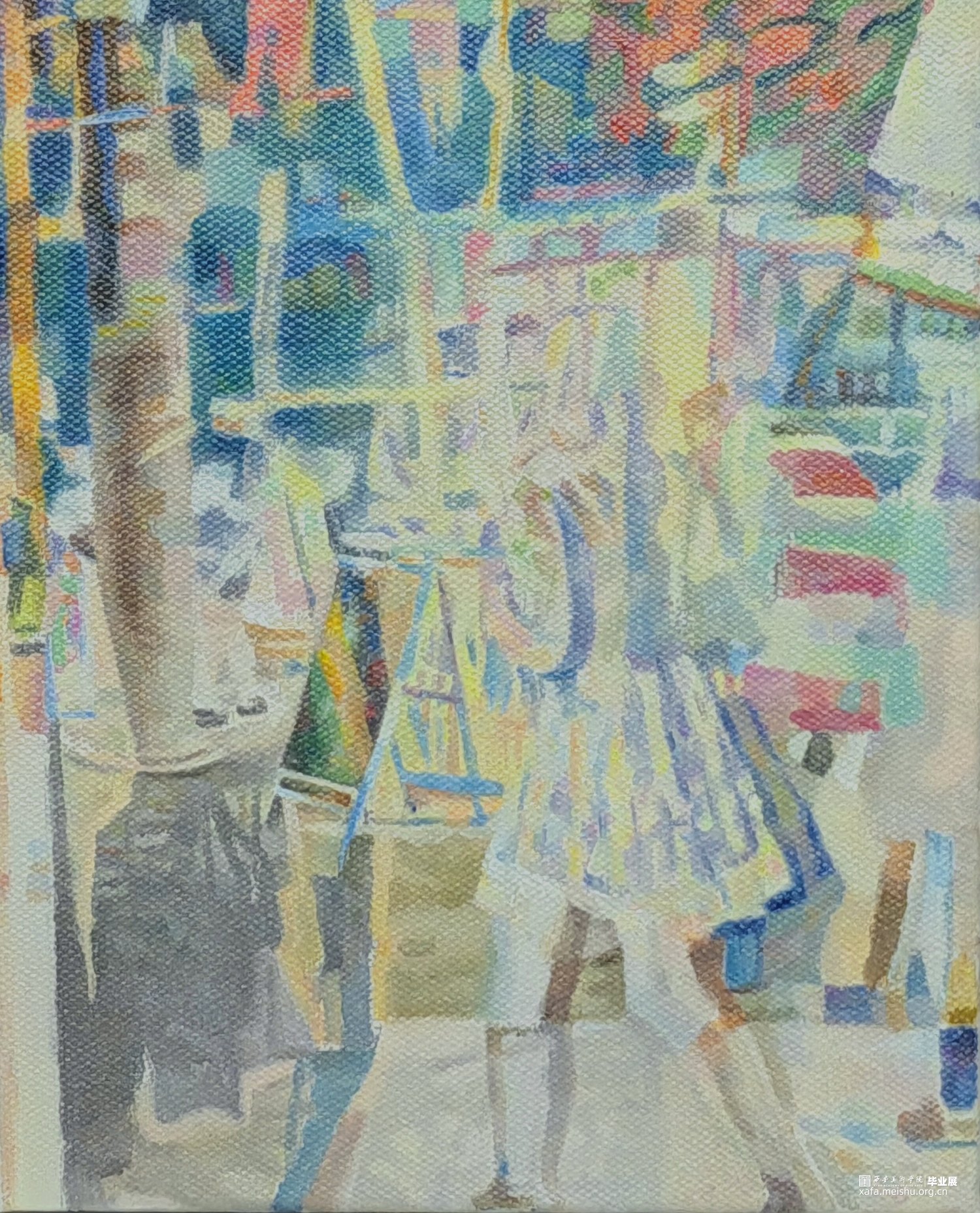我将鲍德里亚《消费社会》中的超级杂货店的“帕尔利二号”的概念引入到了个人的绘画中,对未来超级商场的模型进行了畅想,在构想帕尔利二号中意象的同时,思考由如今景观社会不断发展而成的未来社会下人与人的相处模式,以及人作为个体与物品的关系。画面的最终效果是不经预设的,以个体身处消费社会的感受为第一出发点,不拘泥相同的表现手法,重视人类作为群体感受的表达。