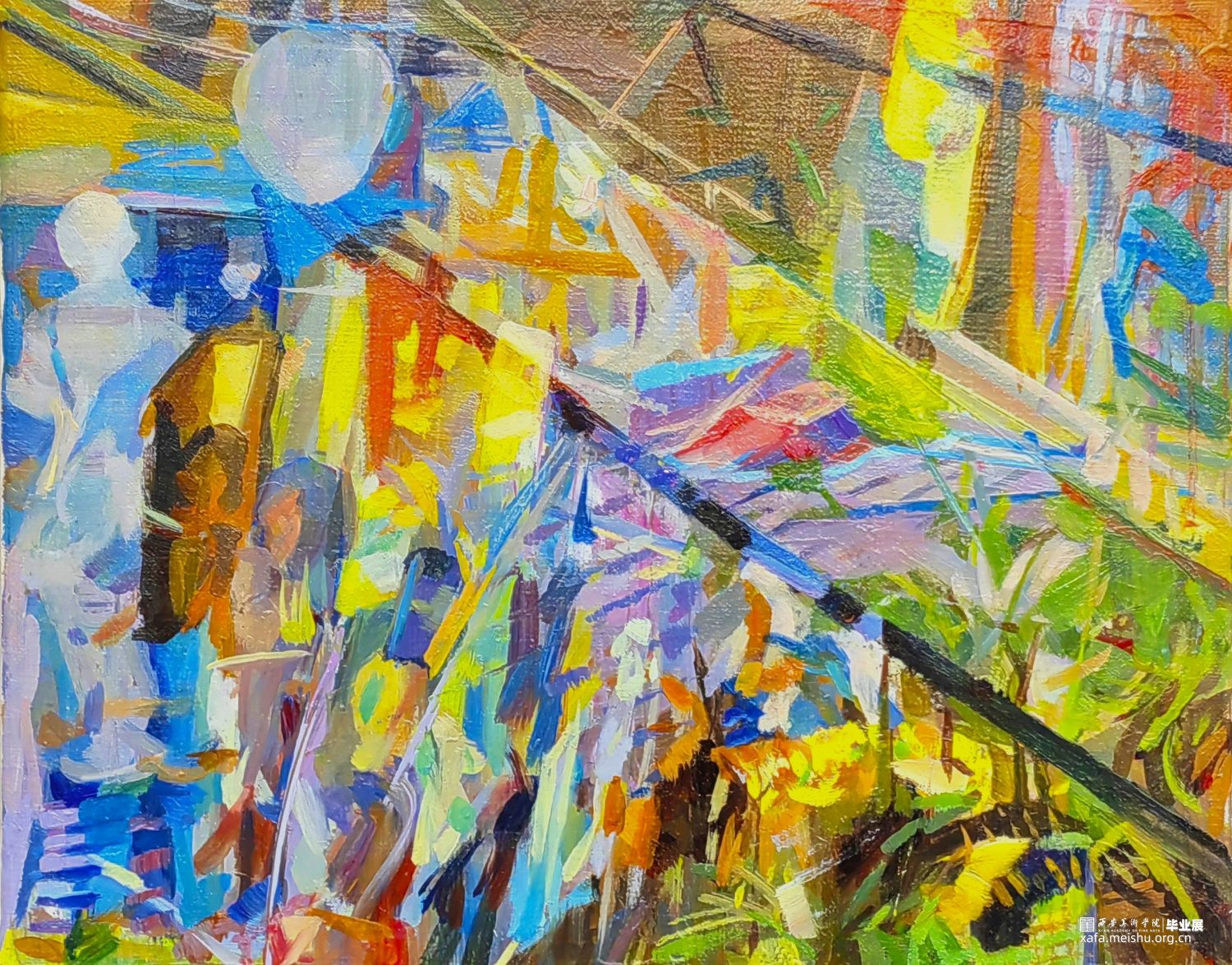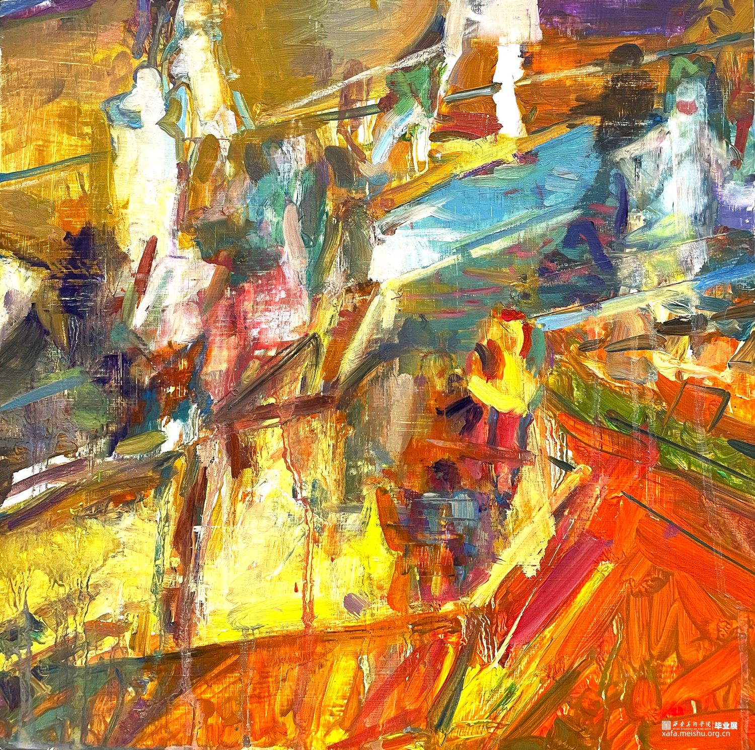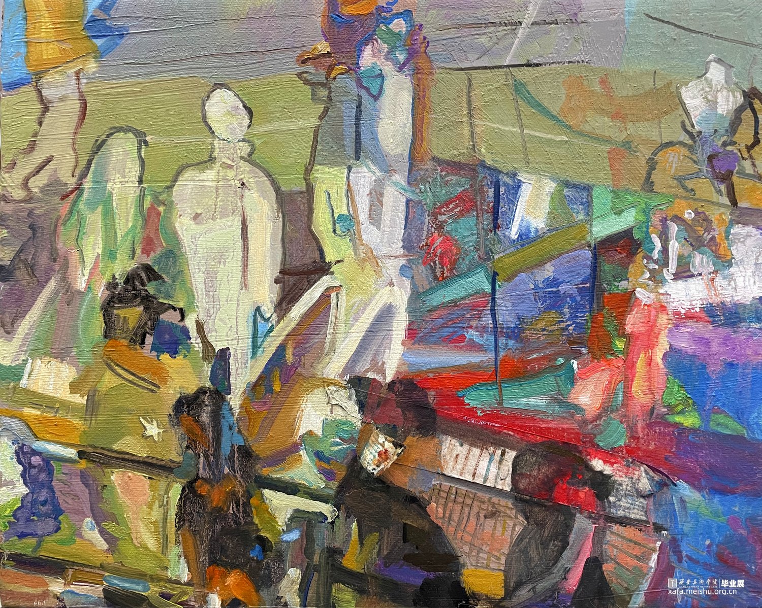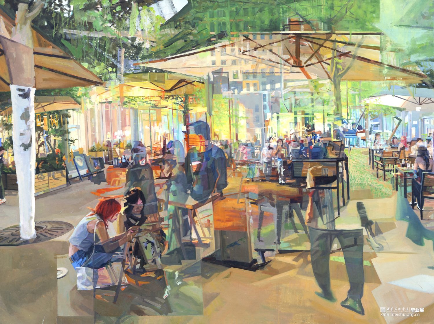 我将鲍德里亚《消费社会》中的超级杂货店的“帕尔利二号”的概念引入到了个人的绘画中,对未来超级商场的模型进行了畅想,在构想帕尔利二号中意象的同时,思考由如今景观社会不断发展而成的未来社会下人与人的相处模式,以及人作为个体与物品的关系。画面的最终效果是不经预设的,以个体身处消费社会的感受为第一出发点,不拘泥相同的表现手法,重视人类作为群体感受的表达。