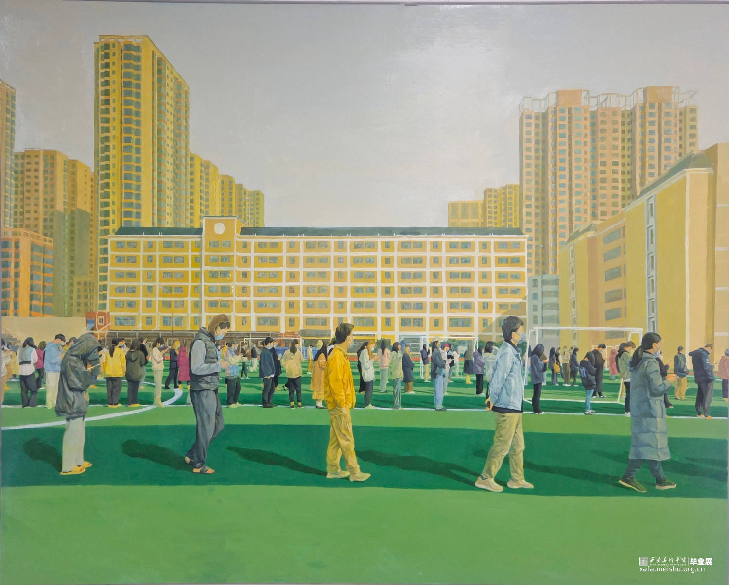 冬天阳光下排着队的人群,一边玩手机一边缓缓向前走。