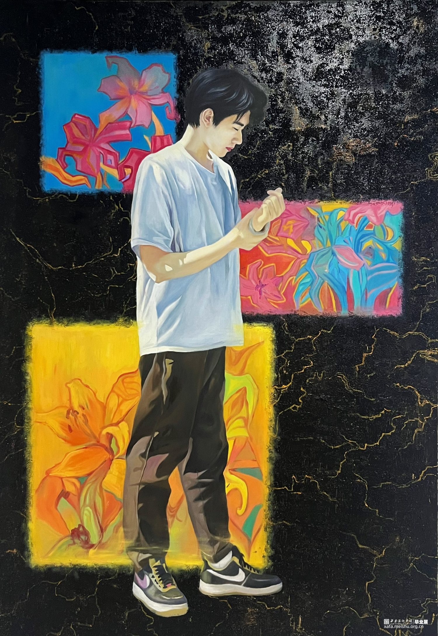 当代很多艺术家作品大部分都是女性或者男性去描绘男性 而我想通过这幅画去表达 用黑色的背景可以明显去凸显人物特征与光影 也同时表达了 我们女性画家也是可以更多的接触去描绘自己的爱人 这就是女艺术家笔下的男性