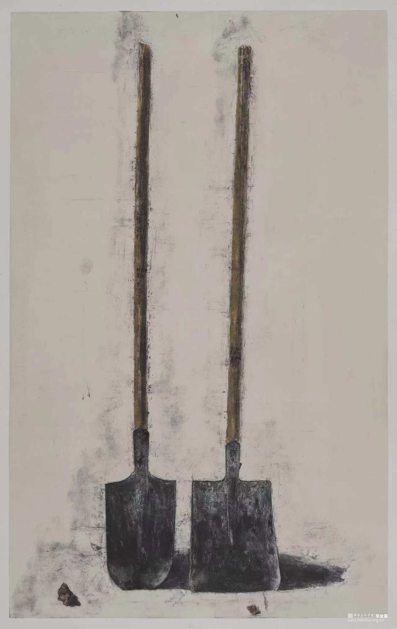军,靠自己的双手与工具来为建造小康社会贡献自己的一份力量,滤砂网和铁锹是人们最常用且极为車要的工具,,建造人民群众心中的美好家园,这两个看似平平的陈日的工具,实则表达出最有温度的人民。秤在我看来是世问衡量标准的标准,是不可轻视的。镰刀、一把小小的镰刀为人民解决了温饱的问题,一把一把的麦子从它刀口下送上餐桌,让我不得不想起袁隆平院士的梦想,能在禾下乘凉,所以说他们都是伟大的,都是筑城者,在我的作品里,让工具以实物较为标本化,以工具来歌领建筑者及为创造小康社会的工人、致敬筑城者。