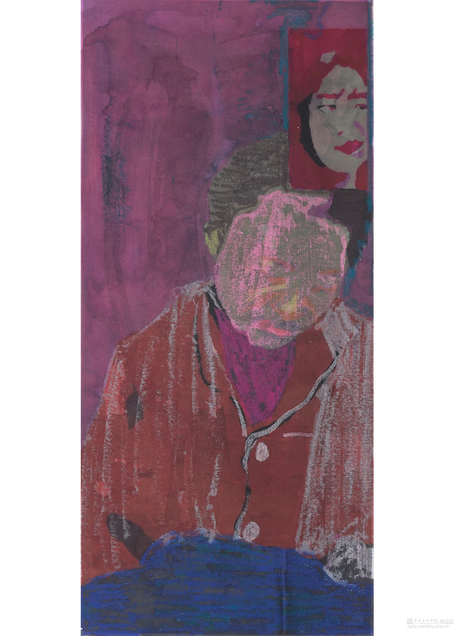 《对象》系列由11幅作品组成,每一幅作品都是不同的故事,不仅仅是简单的画面呈现,更多的是想要表达在事情发生时我的感受。我意图通过色彩、笔触、痕迹的不同表达我的不同情感,与生活中一样,我和对象都有可能置于画面视觉重心。至于在画面中,我将这种随意性体现在了颜色的选择,笔触的挥洒等。画面上我对于彼时情感的体现首先在于选择了大面积的暖色,勾勒人物的轮廓时选择了仔细描绘区别于别幅的大刀阔斧。