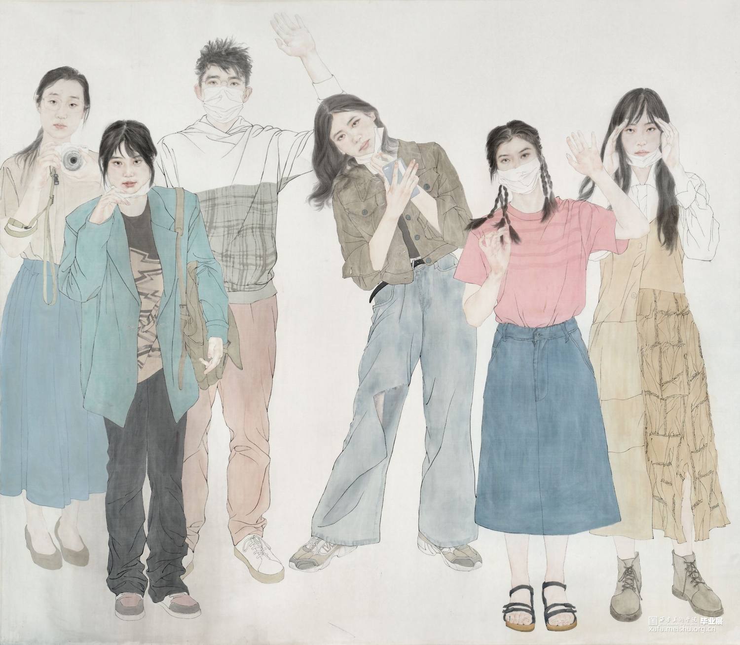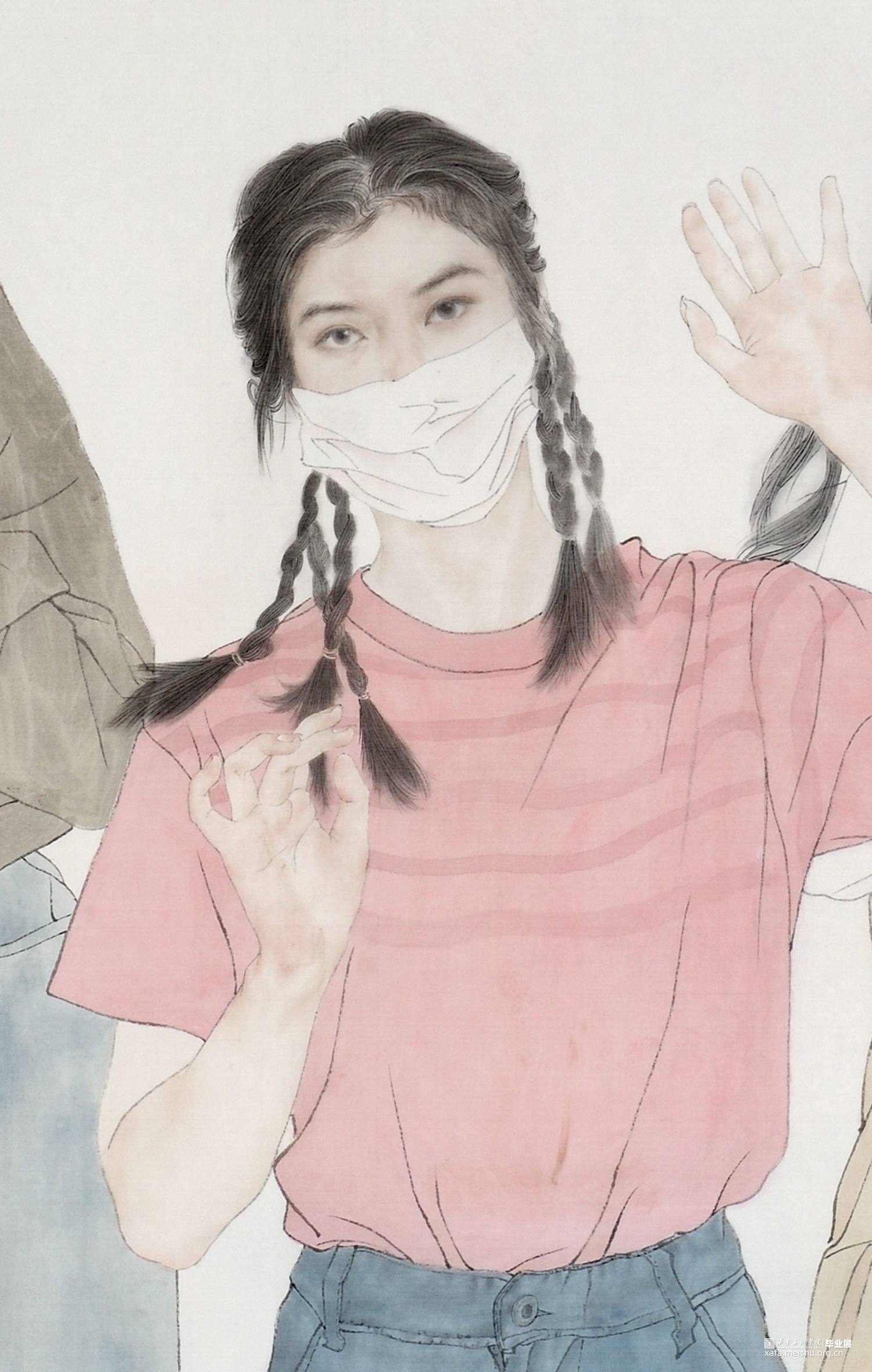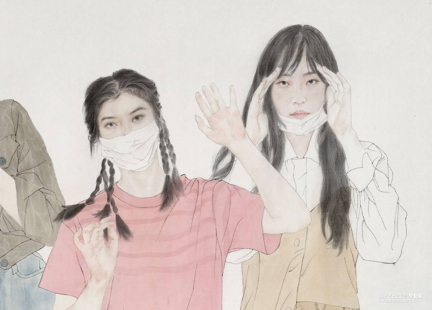 作品题目为《静悄悄的开》,表现的是在疫情当下,我们虽与世界无法清晰亲密地接触,但依旧有细腻的情愫在人与人之间流通,心灵间的沟通并不为时空所局限。