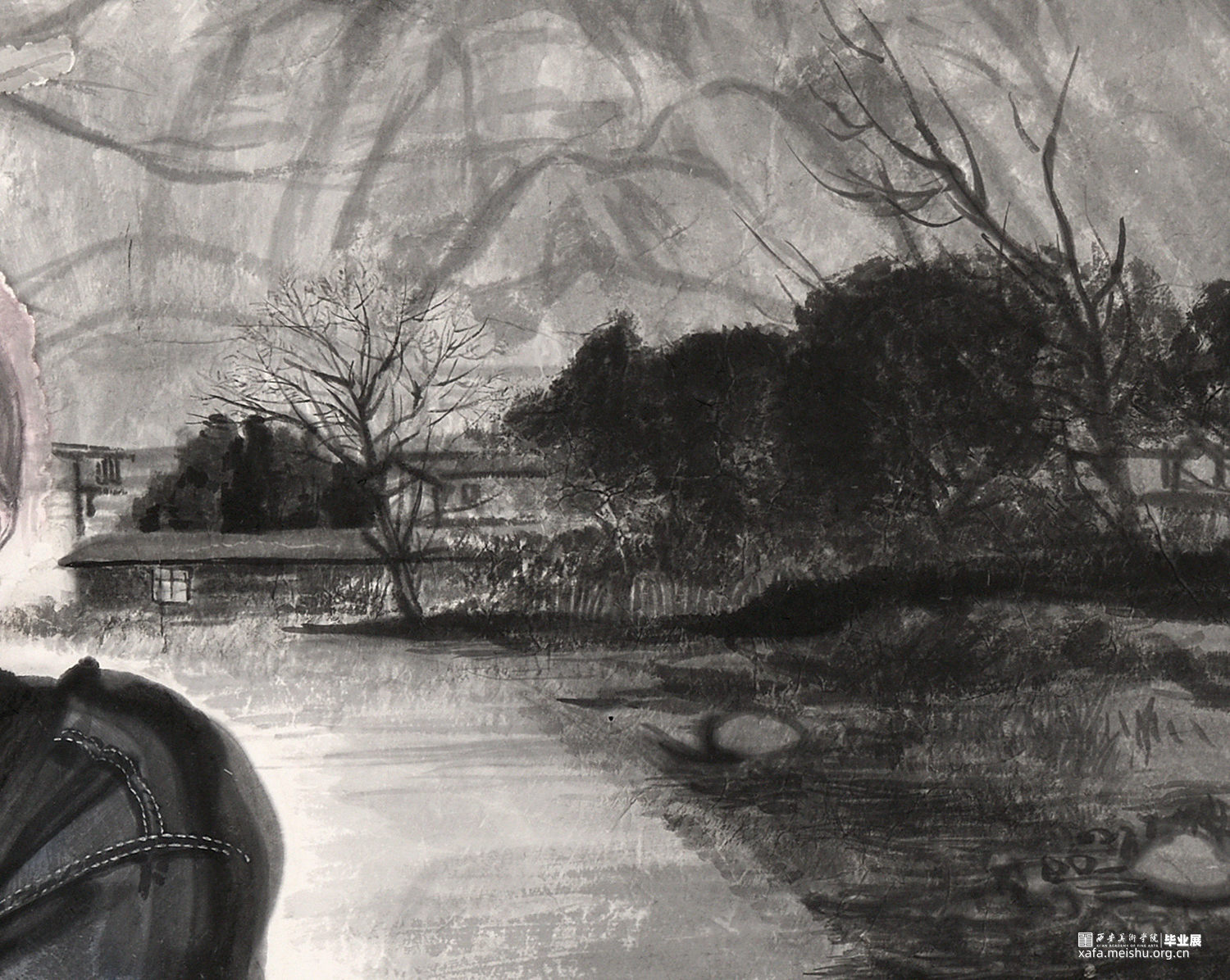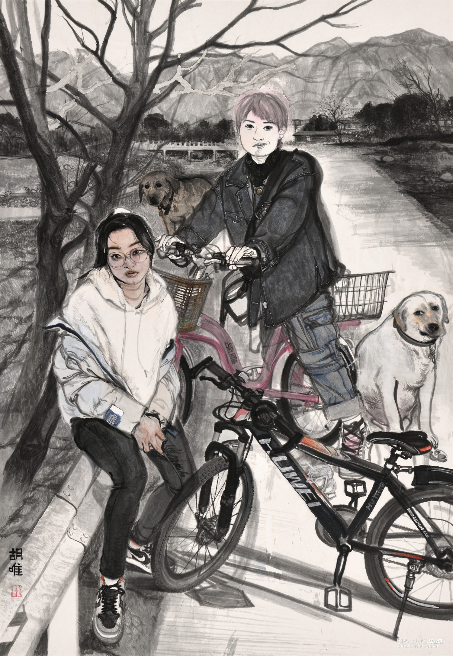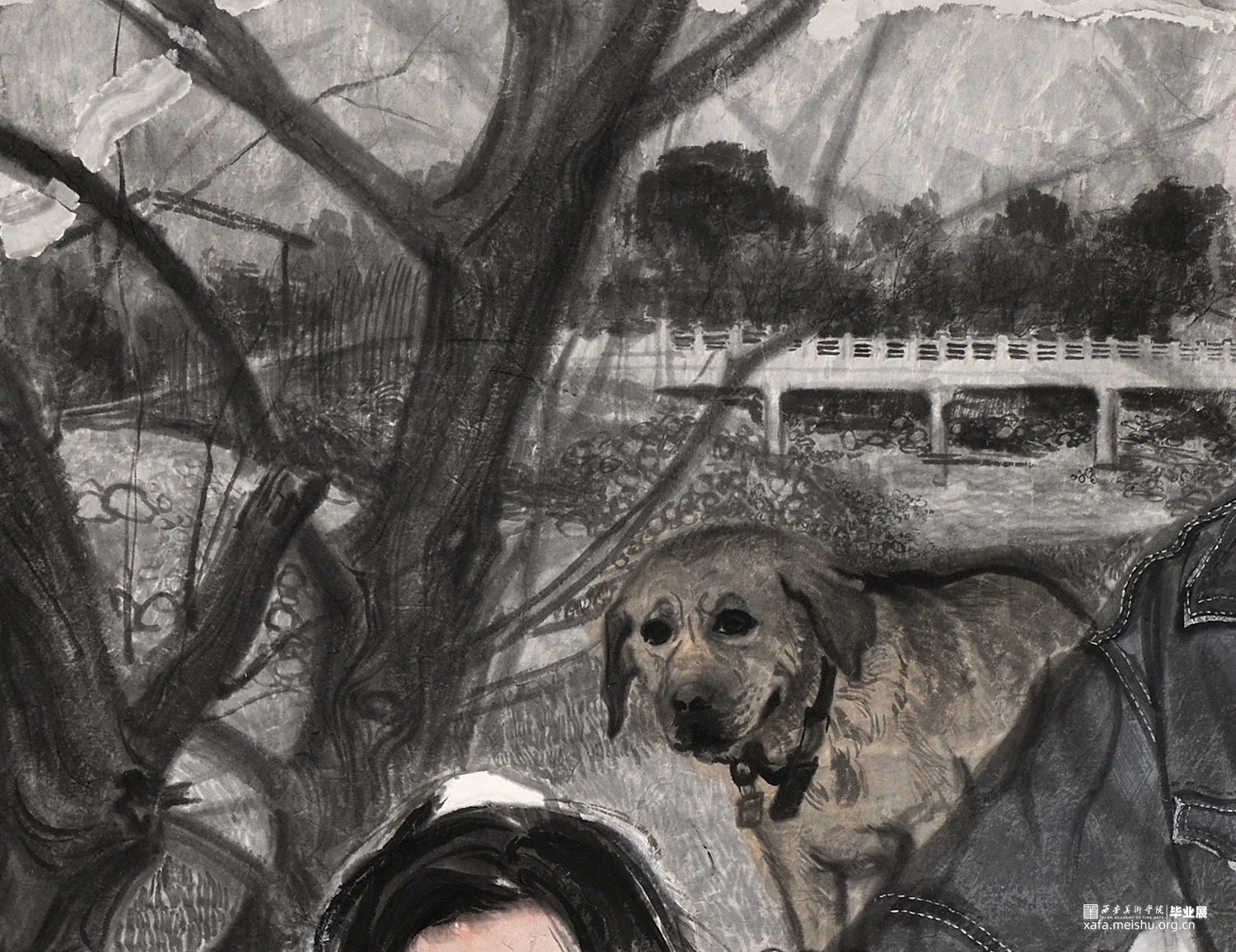 画面描述的是我和妹妹一起想沿着河流往上,去找它的尽头。一起度过美好时光而让我时常想念的家乡山水、妹妹、和两只狗狗,承载于一次外出游玩、拼凑在一起。零碎摆拍的照片合并,缺点是略显僵硬,加上不断地修改与挖补让画面显得粗糙。但优点是给了我过程中不断探索的成长。感谢老师给予的帮助与引导!谢谢学长赠与的篆刻作品!画画过程十分辛苦,但看到成果都是值得的.