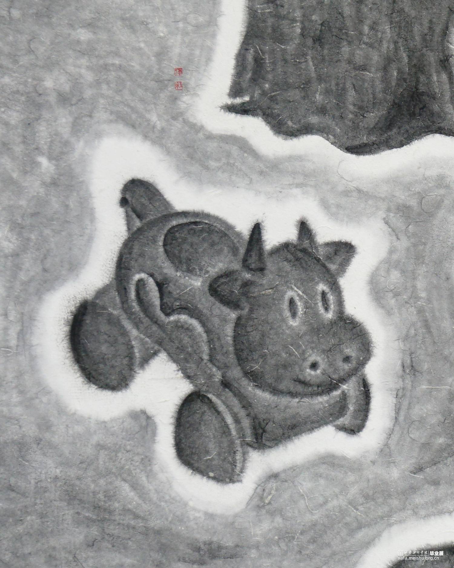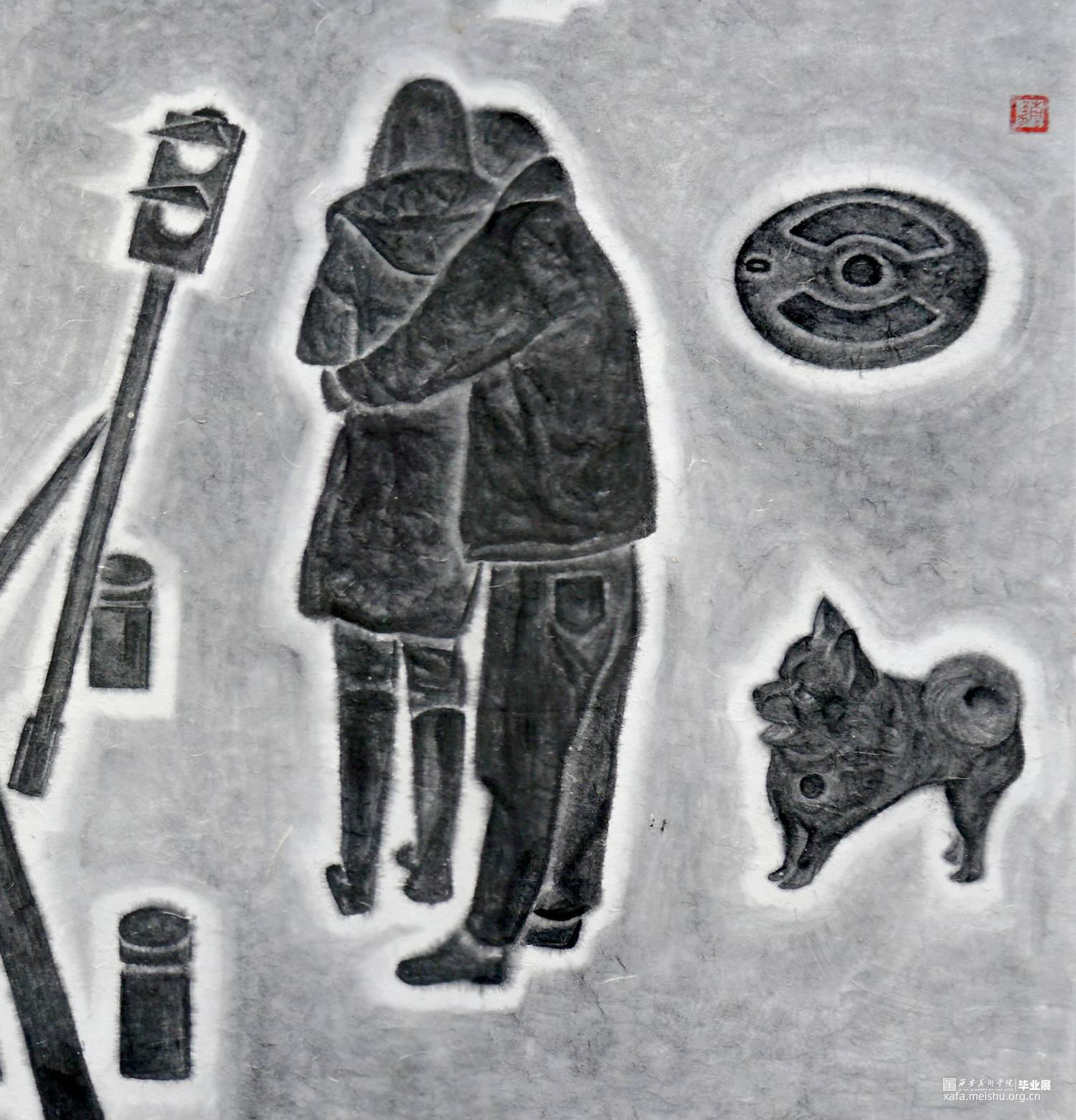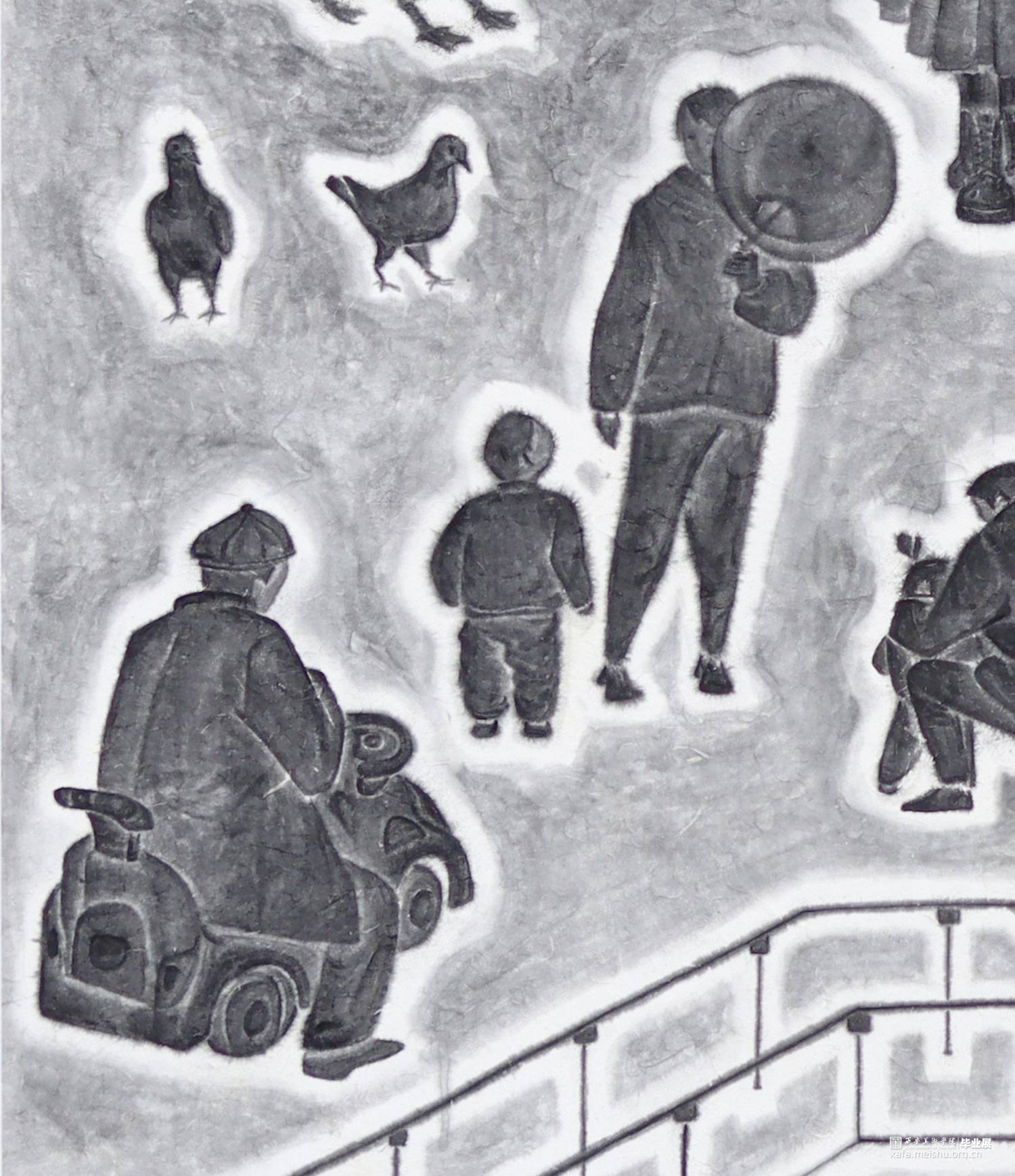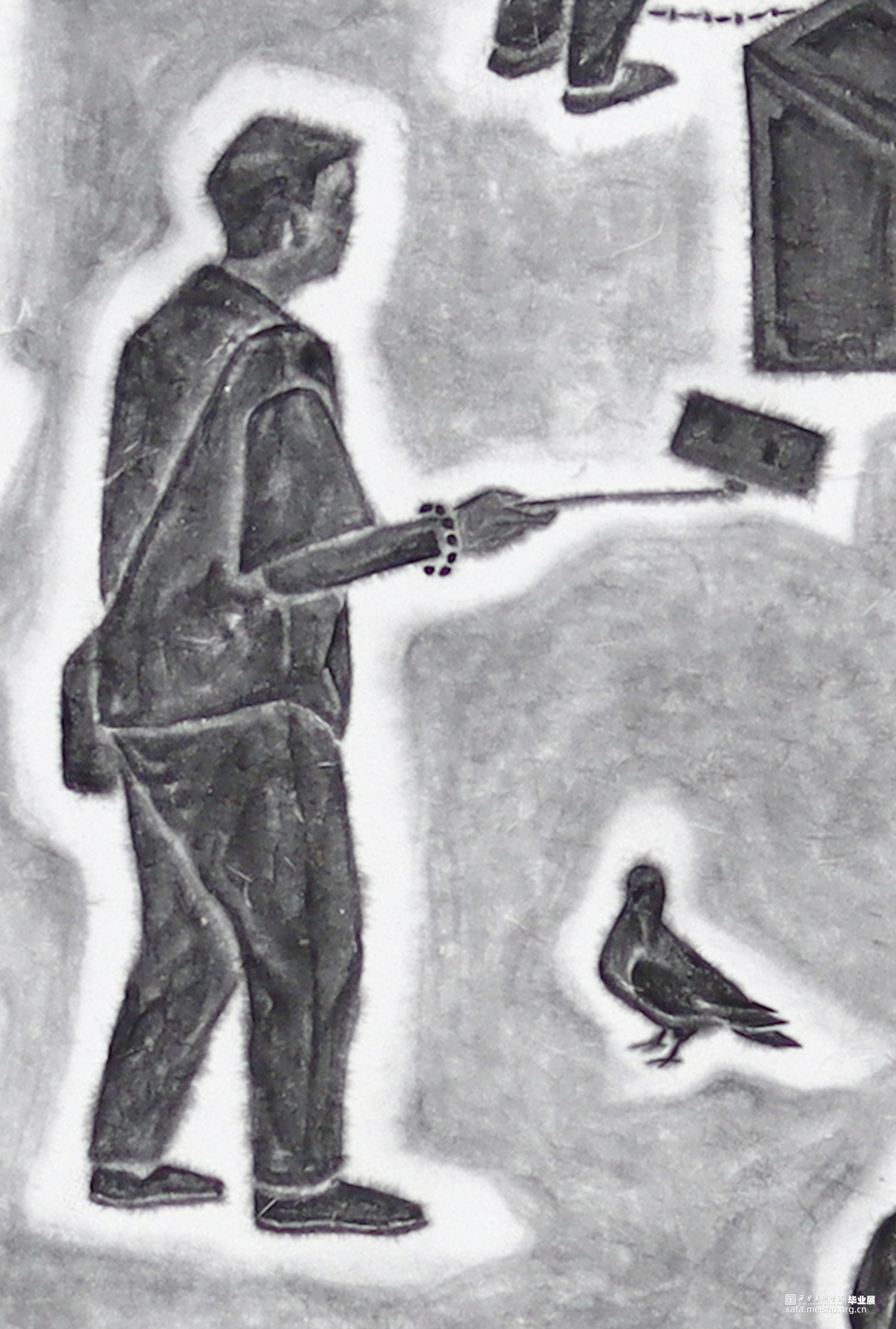 作品参照汉画像砖的布局,表现所见所闻所想的现实生活,将多个场景自由的安排在同一画面,突破传统焦点透视的局限,扩展图像的叙事性。