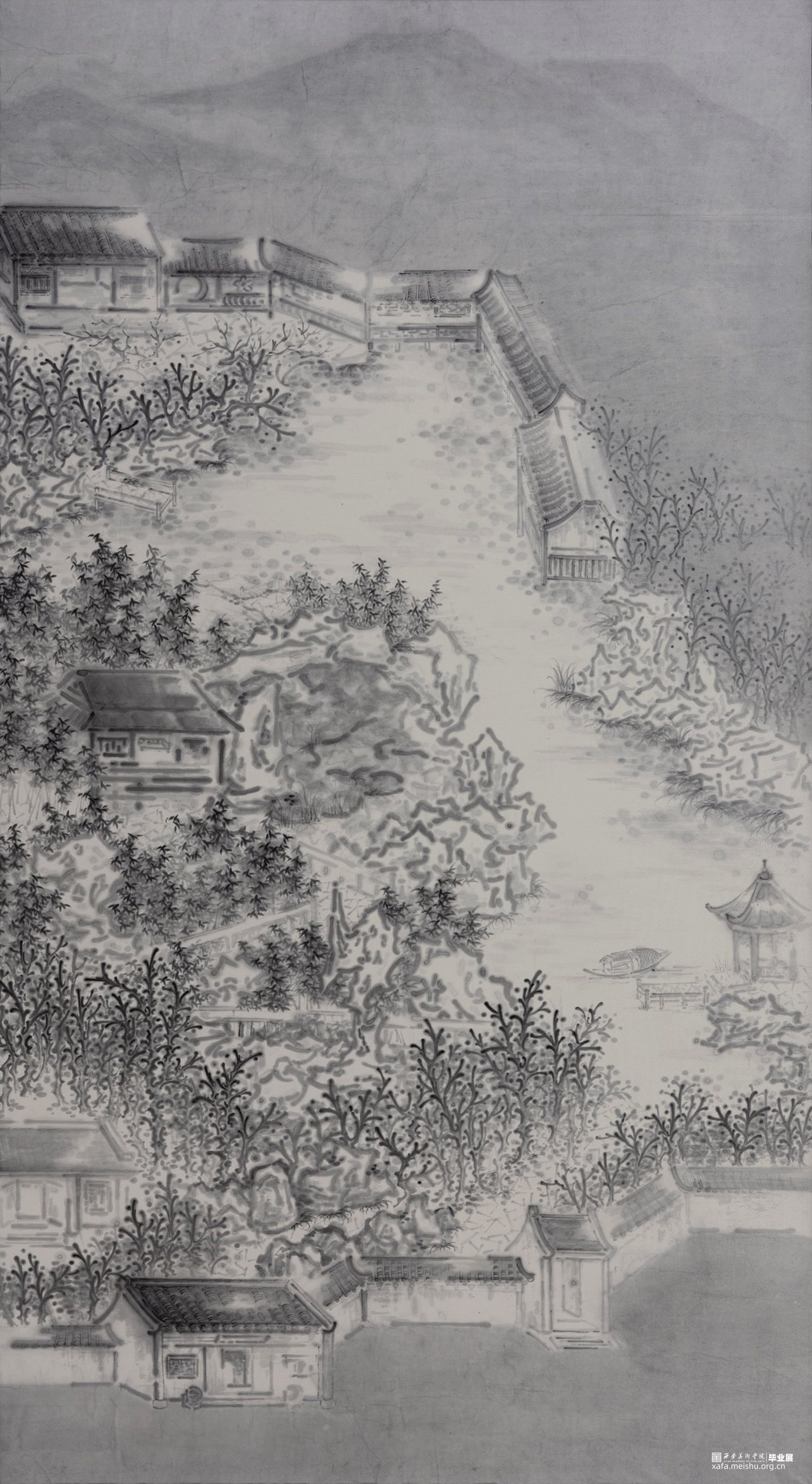 苏轼在月夜邀友人共游,见屋前空地似积水空明,树影摇曳如藻荇交横,发出“何夜无月,何处无竹柏,但少闲人如吾两人者尔”的感叹,这幅作品尝试用墨膏的独特韵味营造月下庭院的幽静氛围,邀请大家月夜同游,深入树影竹间,寻求内心深处的平静。